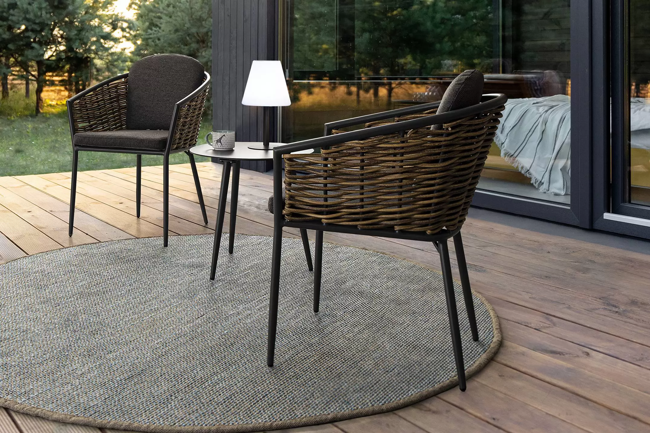 Boki z wplatanym technorattanem o przekroju okrągłym śr. 9 mm.