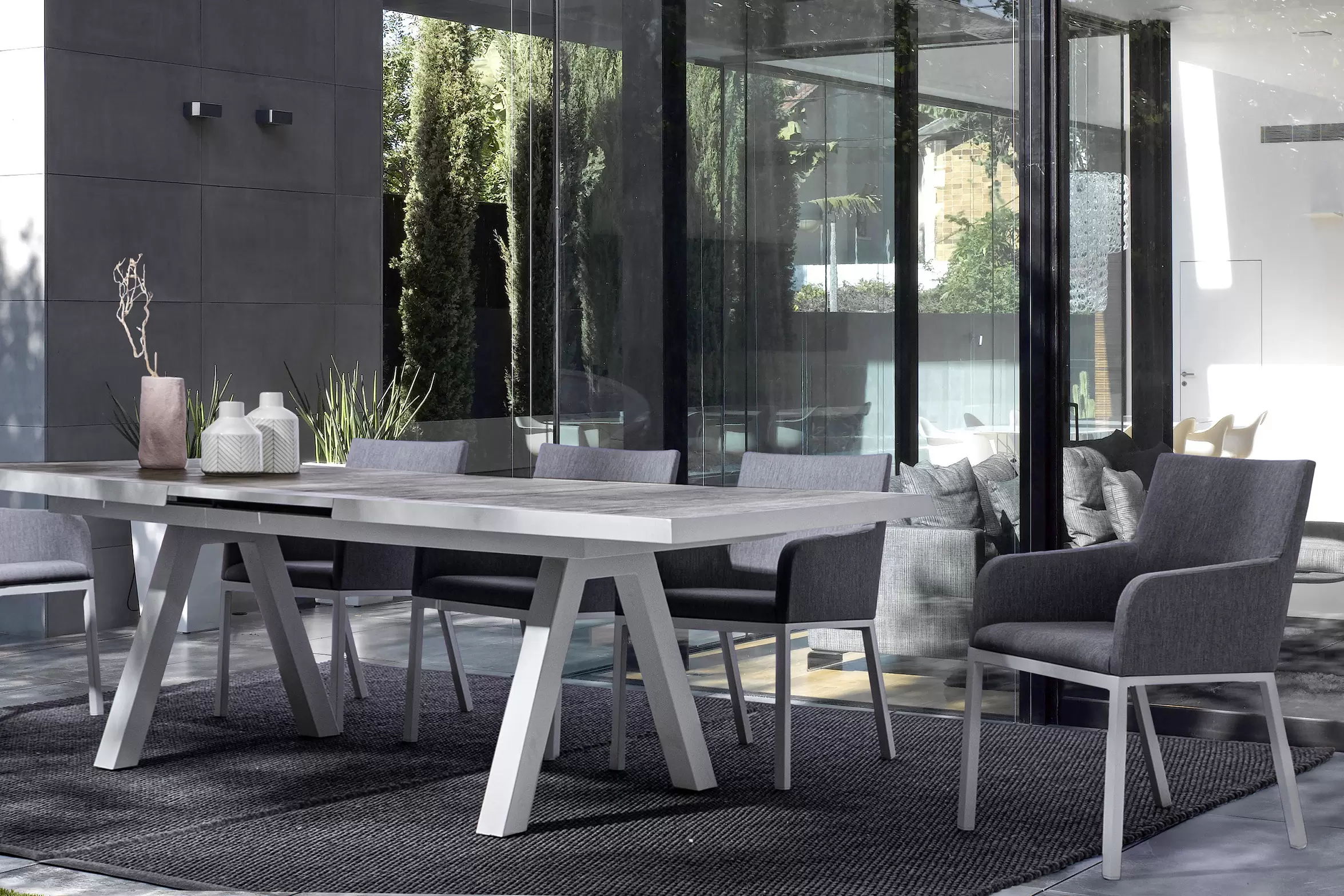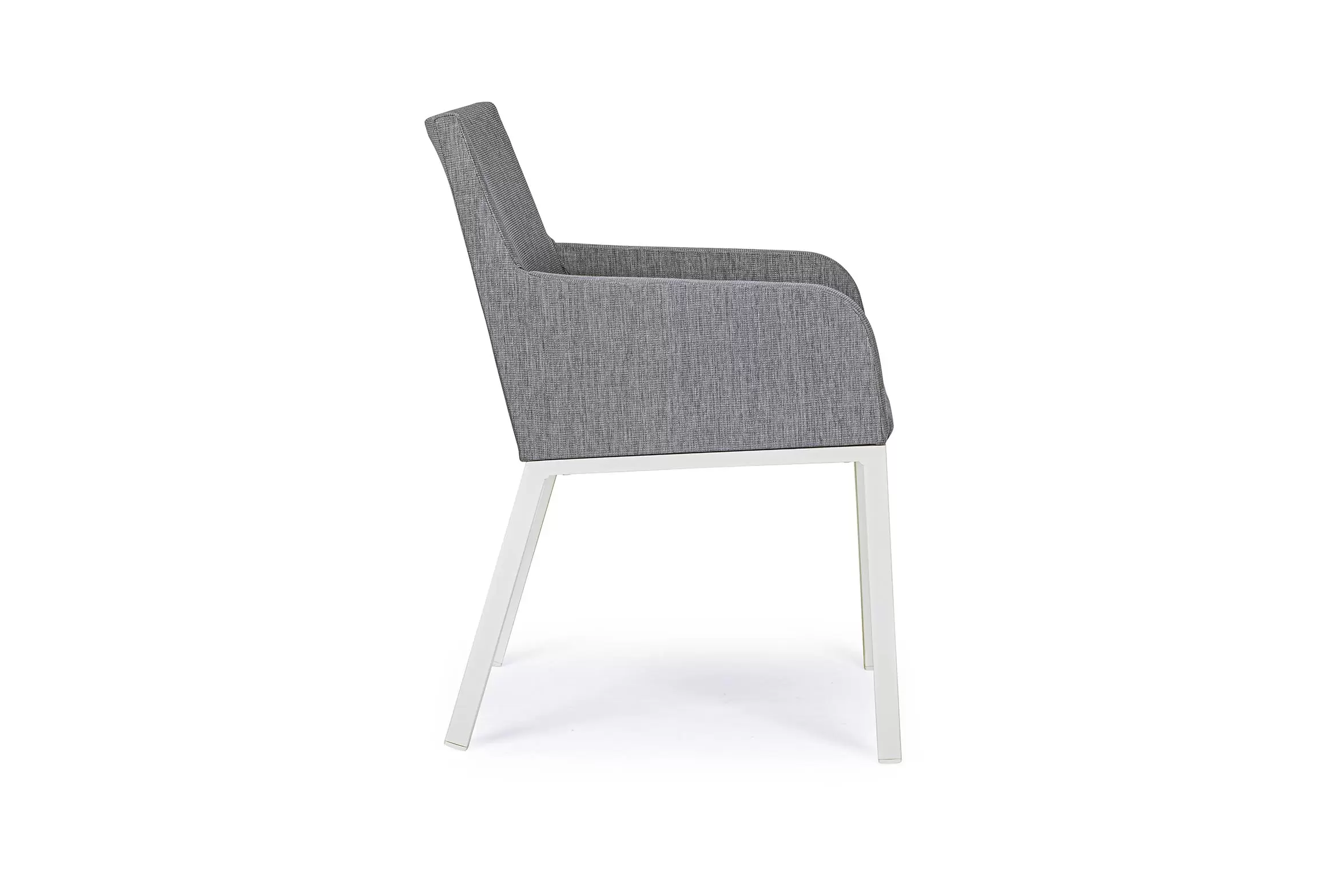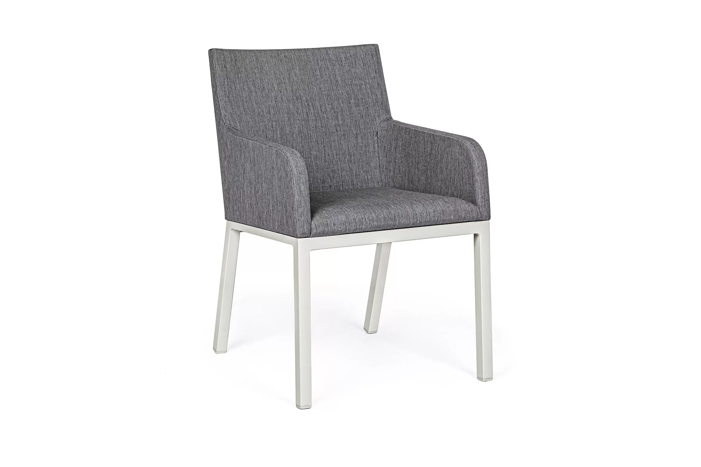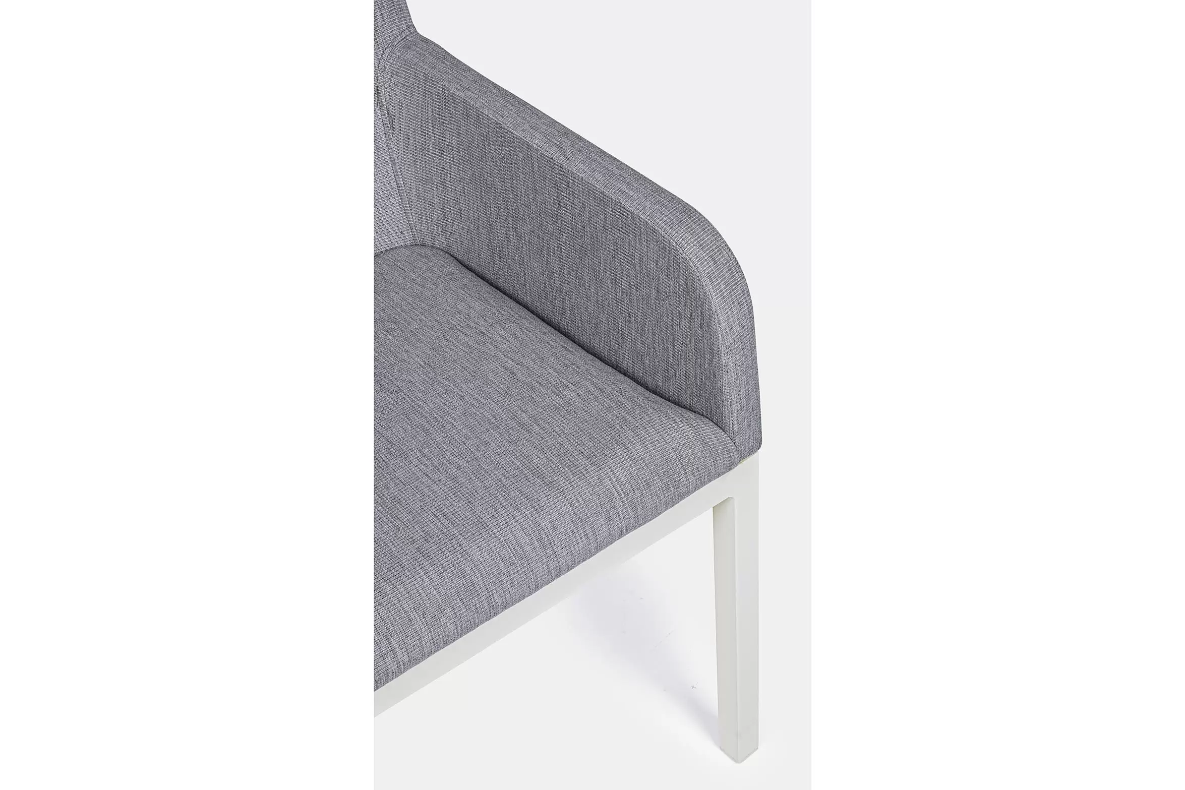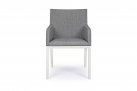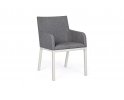 Nowoczesne krzesło ogrodowe o aluminiowej konstrukcji z siedziskiem tapicerowanym z szybkoschnącą gąbką na siedzisku i obiciem z materiału tekstylinowego z włóknami Olefin nadającymi przyjemne wrażenie w dotyku.