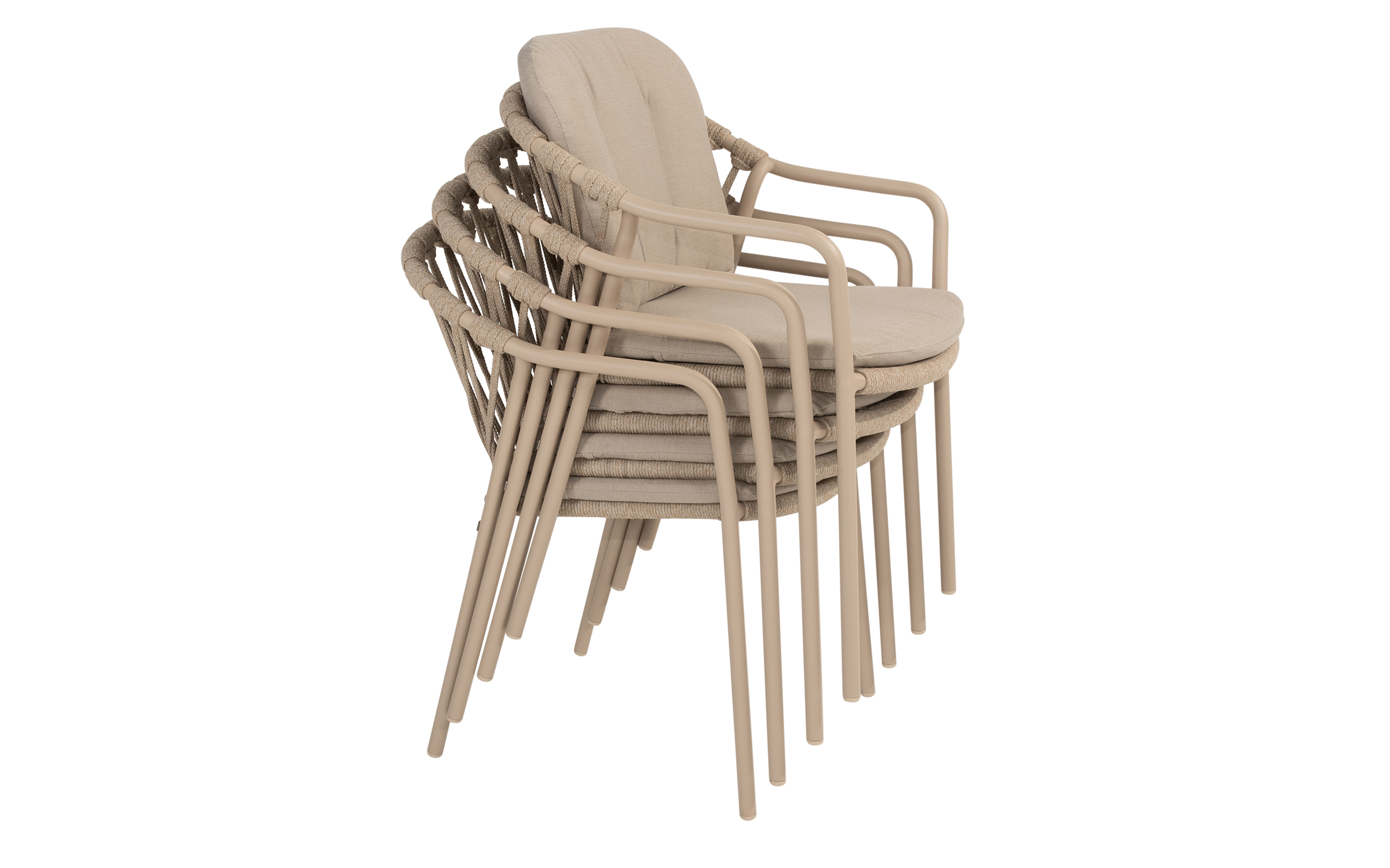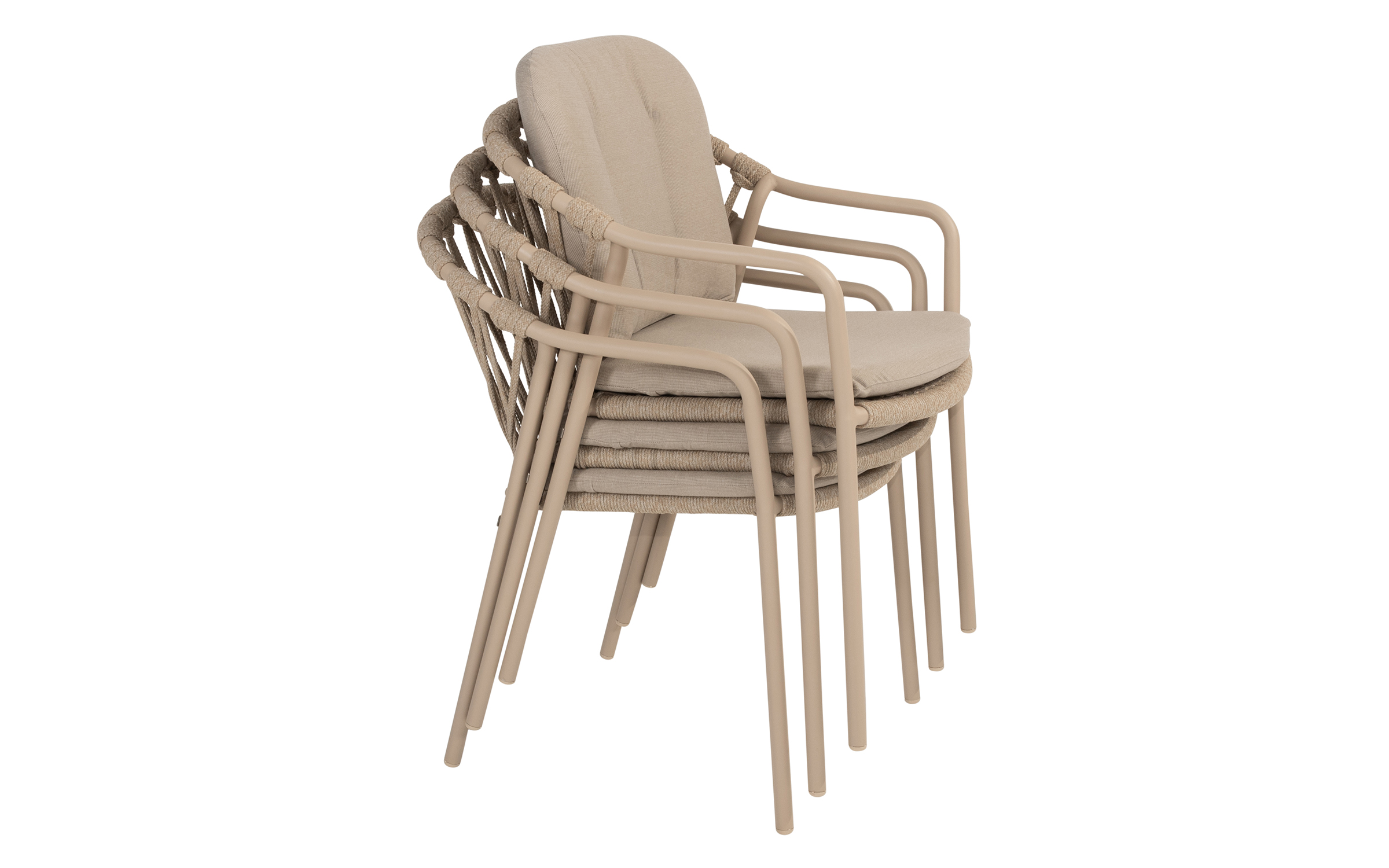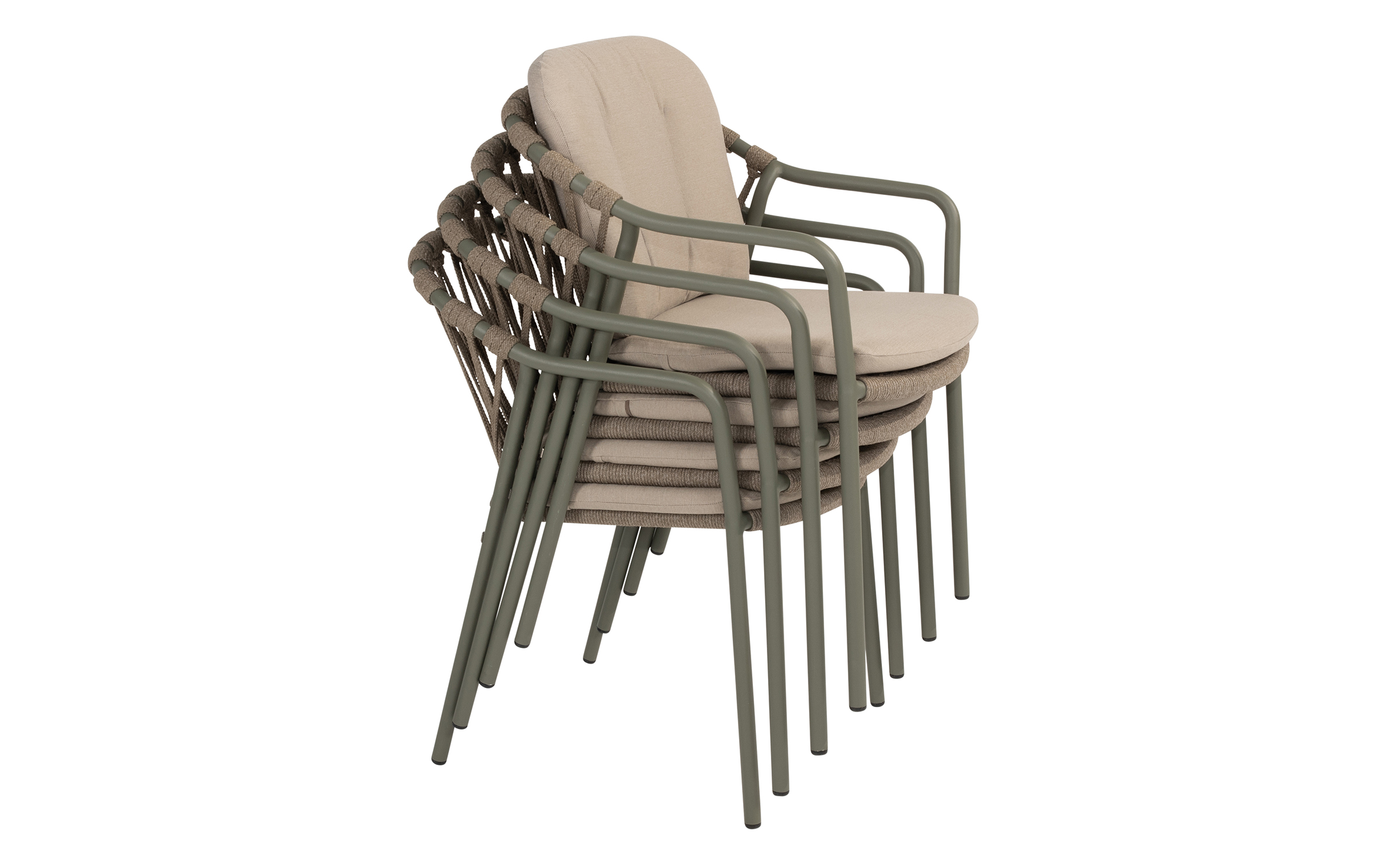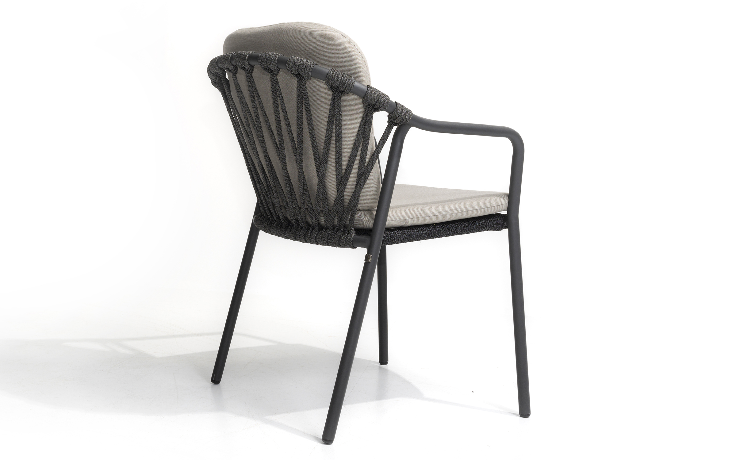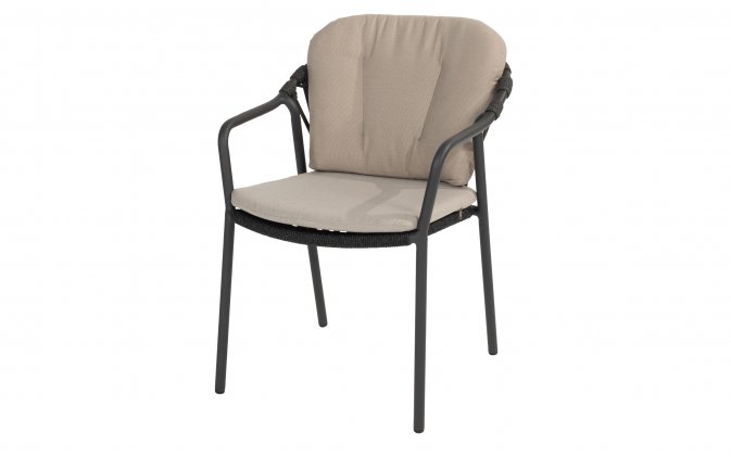 Krzesło ogrodowe sztaplowane Manitoba od Taste by 4 Seasons wykonane jest z wysokiej jakości materiałów i jest dostępne w odcieniach antracytu i szarości. Wyposażone jest w grubo tapicerowaną poduszkę siedziska i oparcia z poszewkami Olefin, która jest nie tylko miękka w dotyku, ale także trwała i odporna na warunki atmosferyczne.