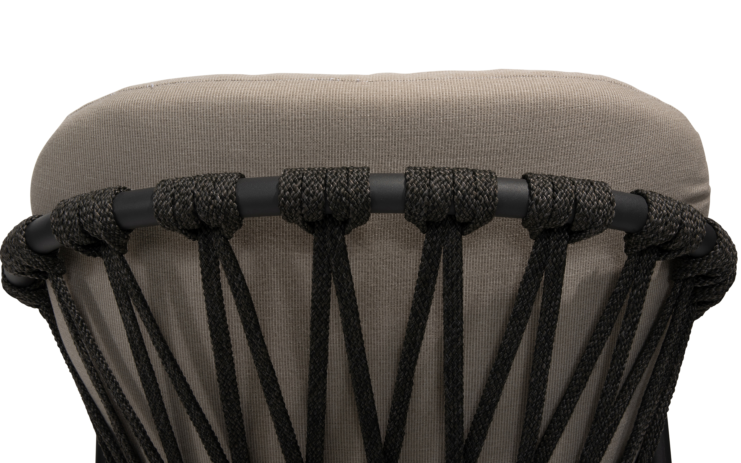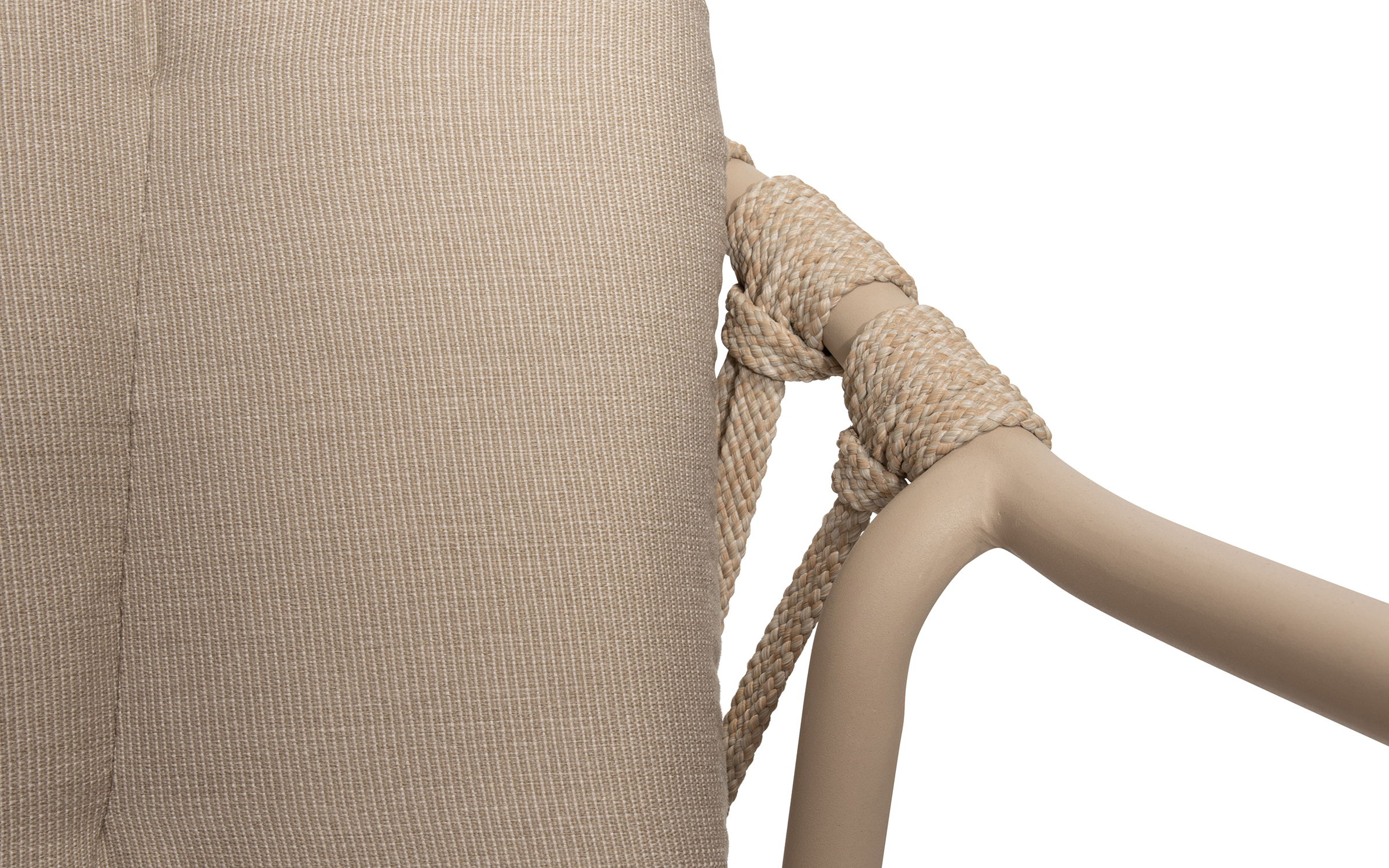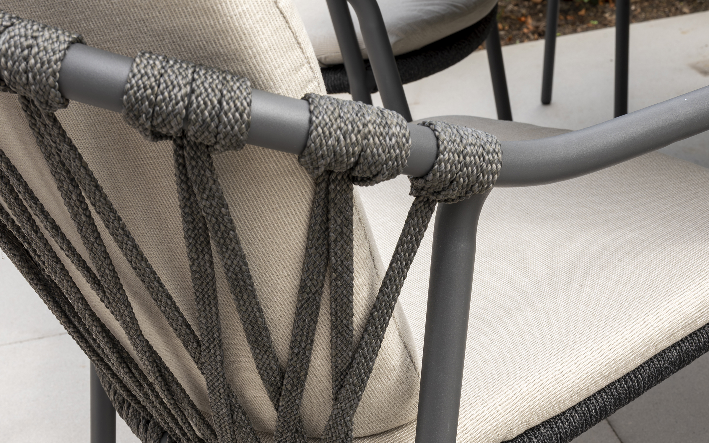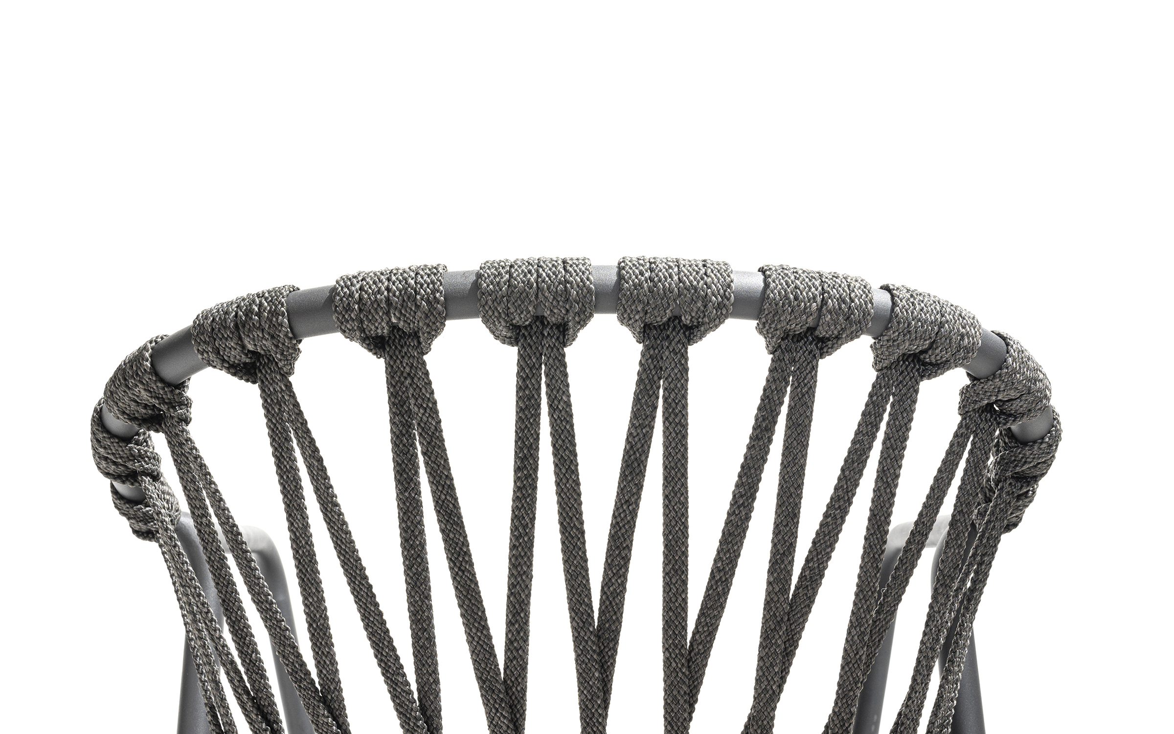 Boki i oparcie oplecione liną polipropylenową, wodoodporne i odporne na uv.