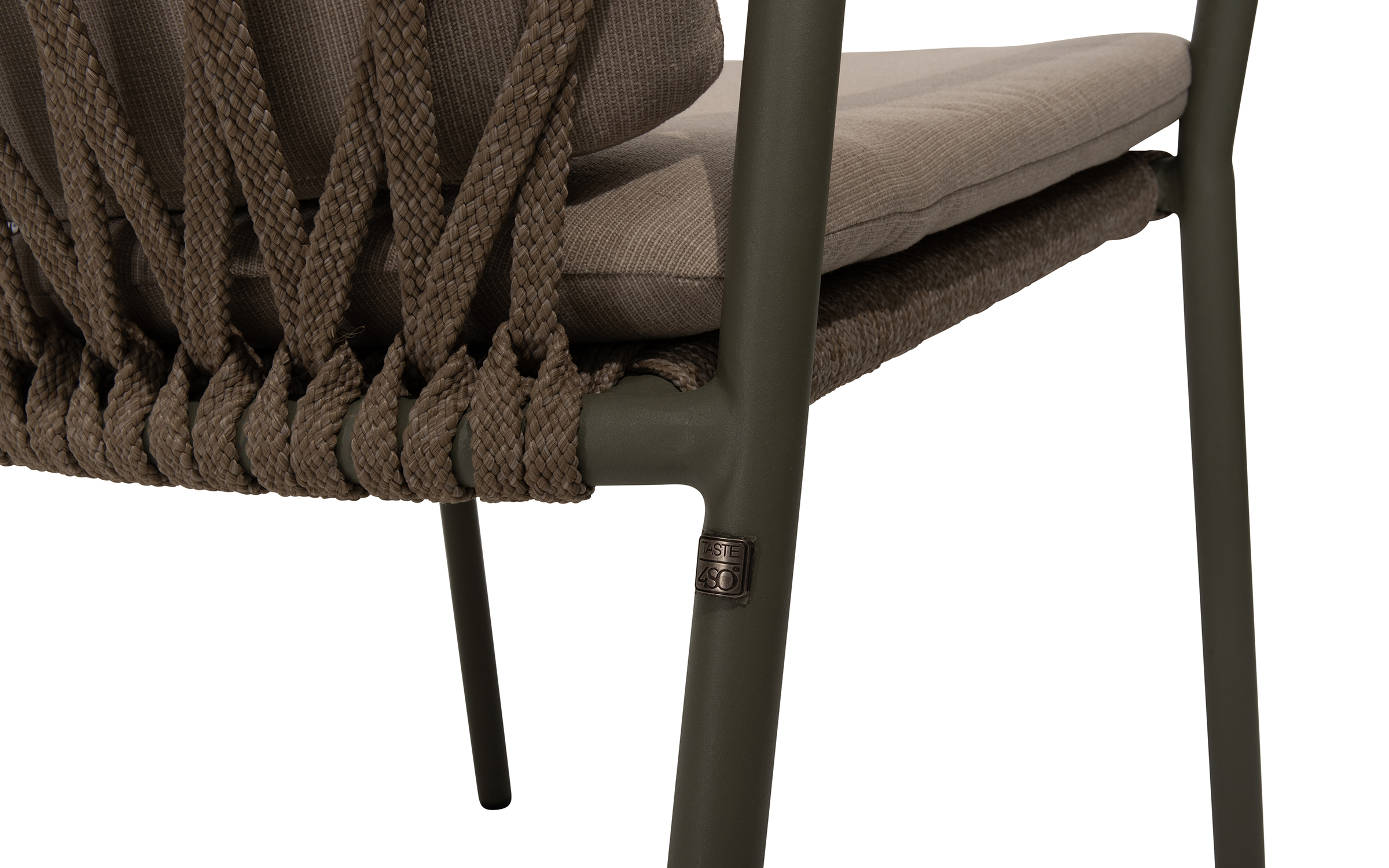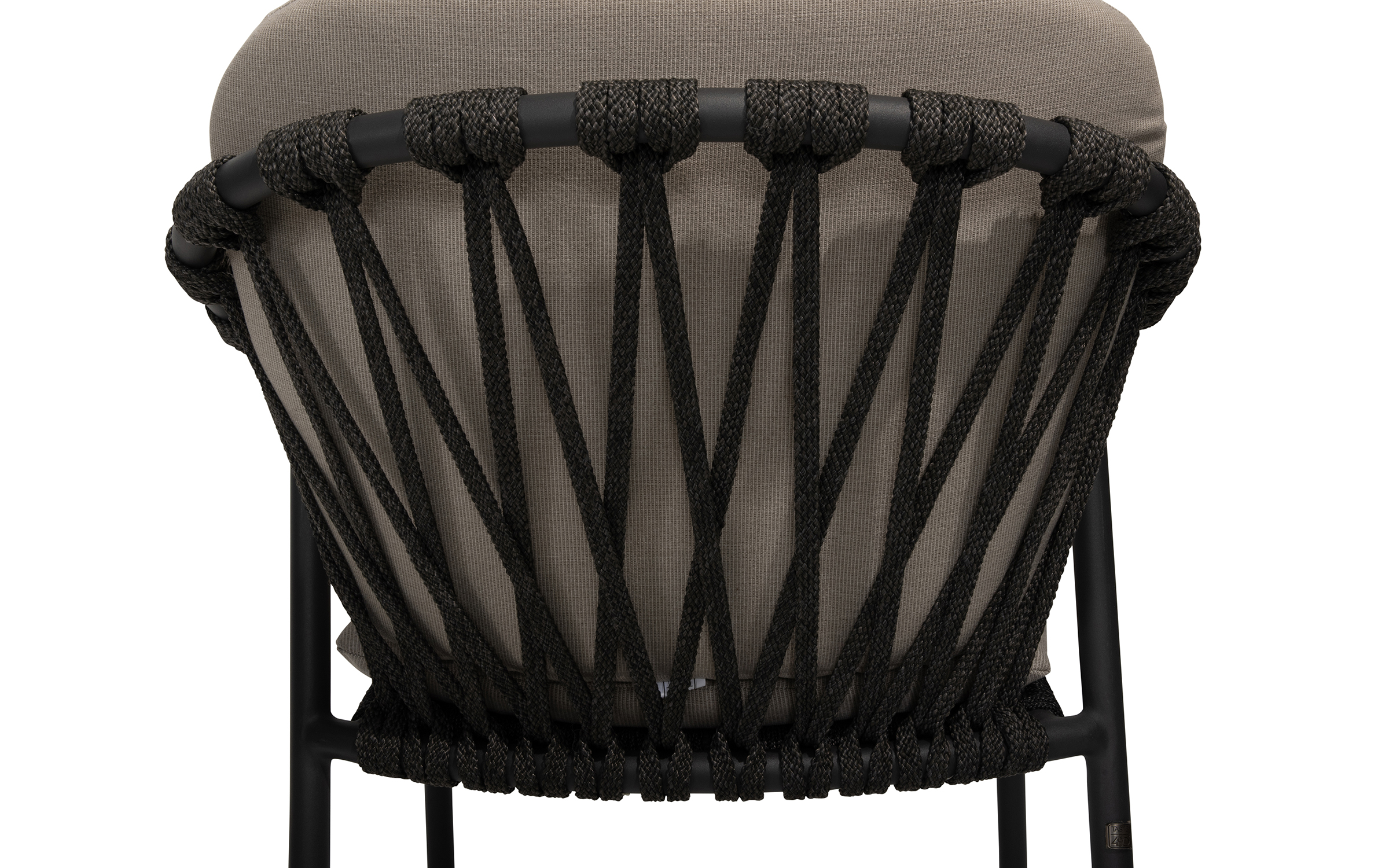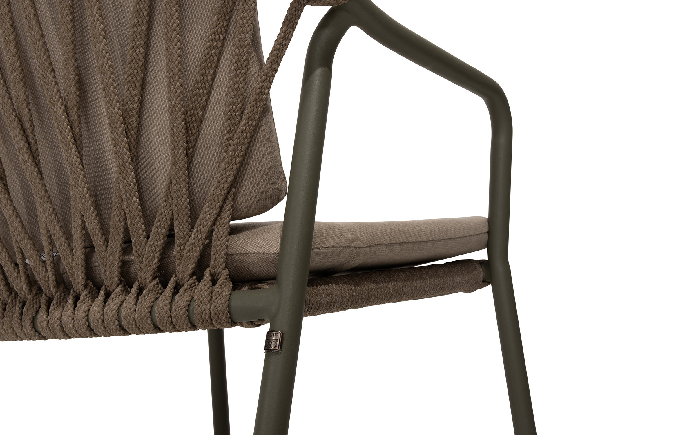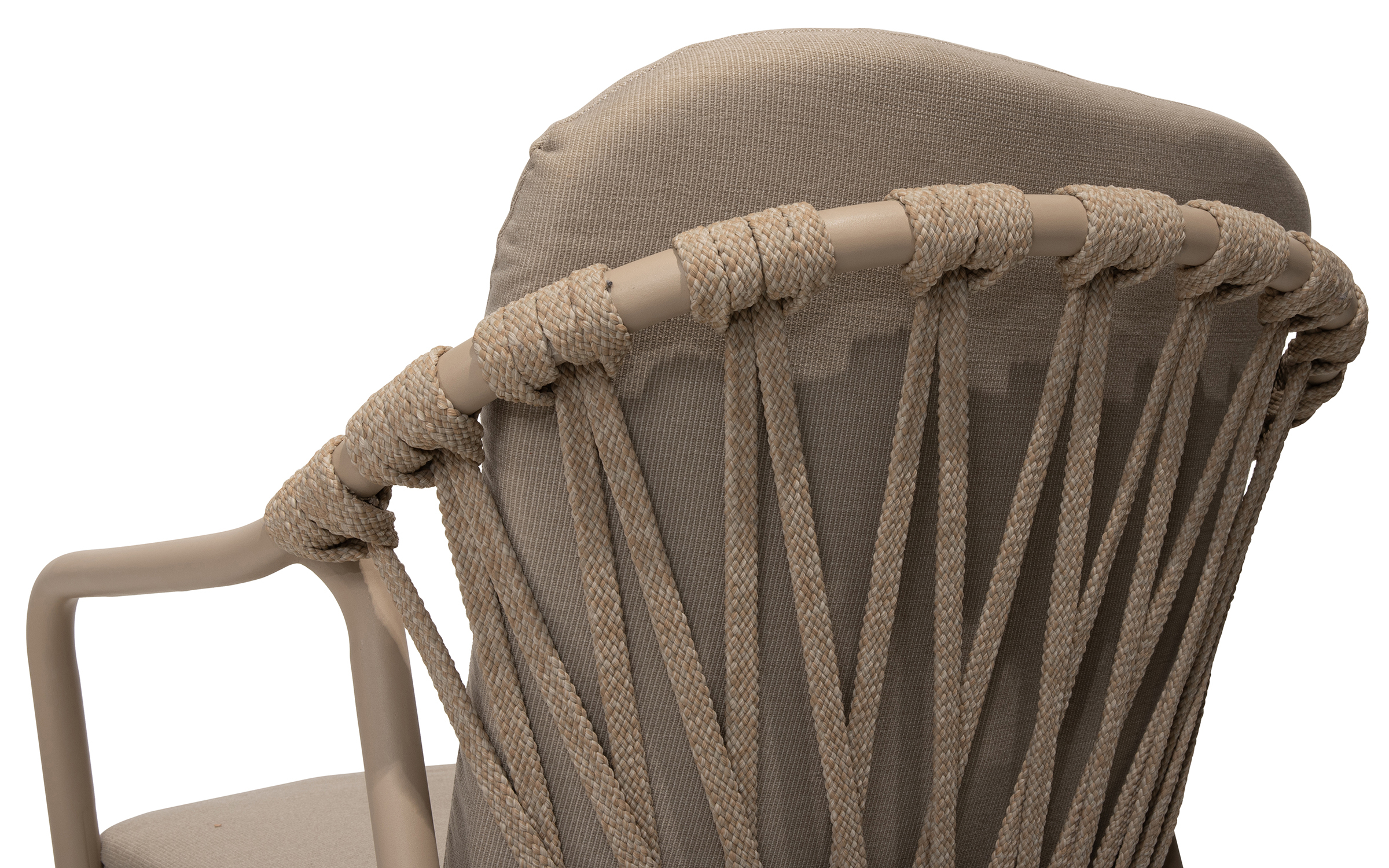 Boki i oparcie oplecione liną polipropylenową, wodoodporne i odporne na uv.