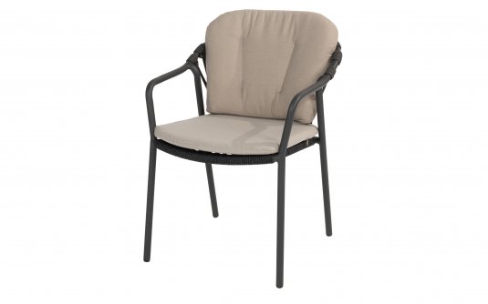 Krzesło stołowe sztaplowane do ogrodu / konstr. stal nierdzewna / podłokietniki alu / siedzisko i oparcie z miękkiej tekstyliny / Krzesło : 56s | 64g | 85w