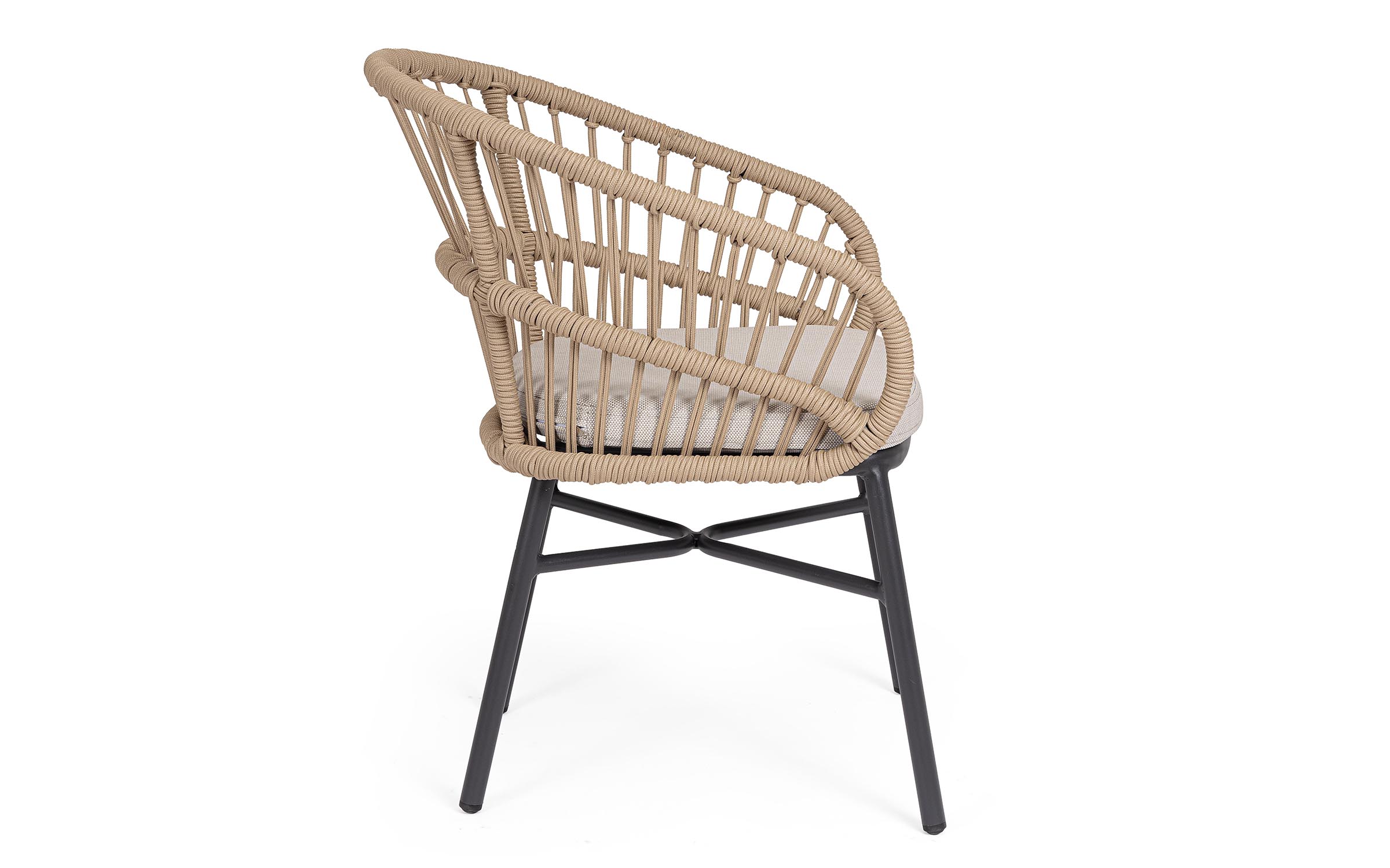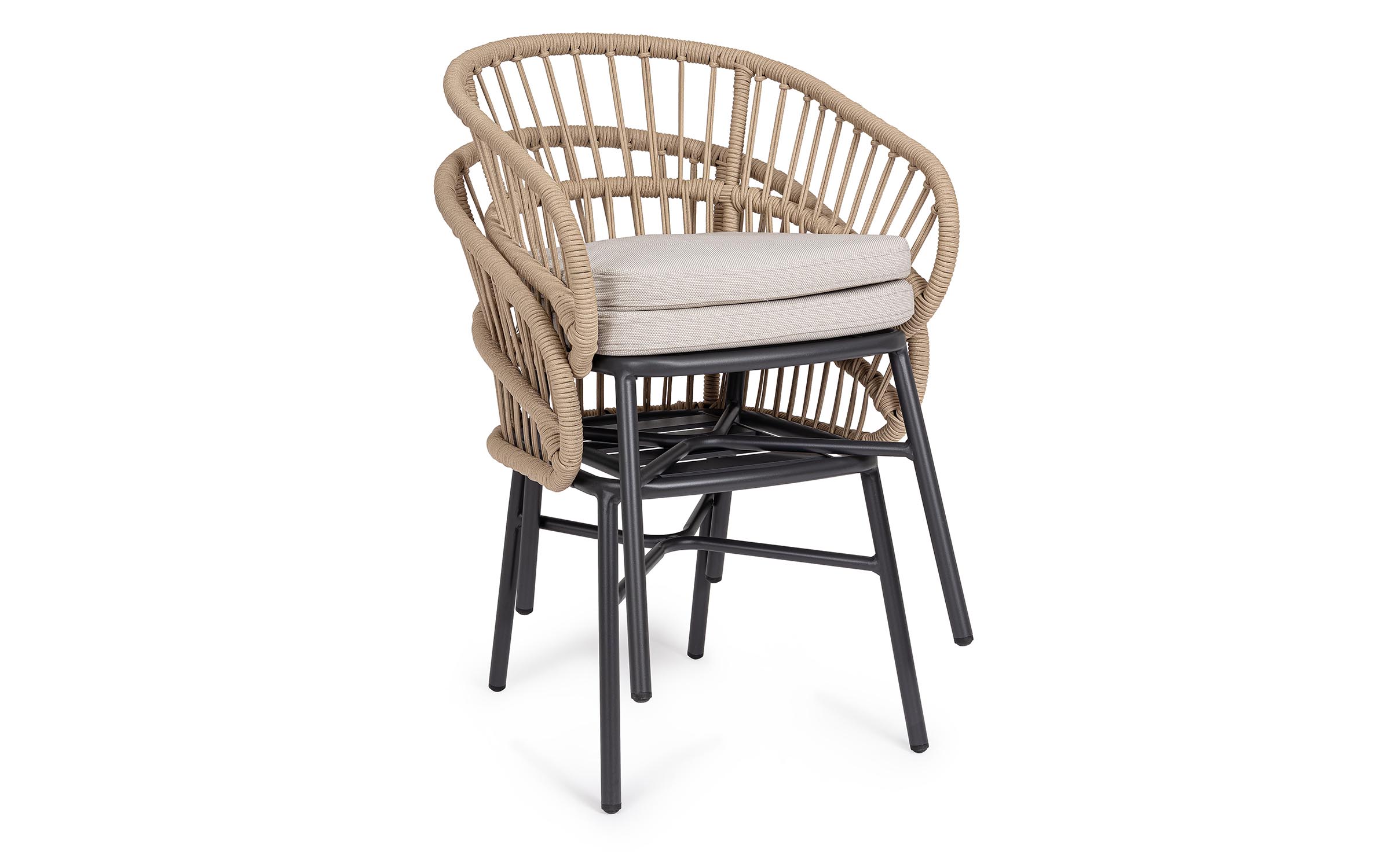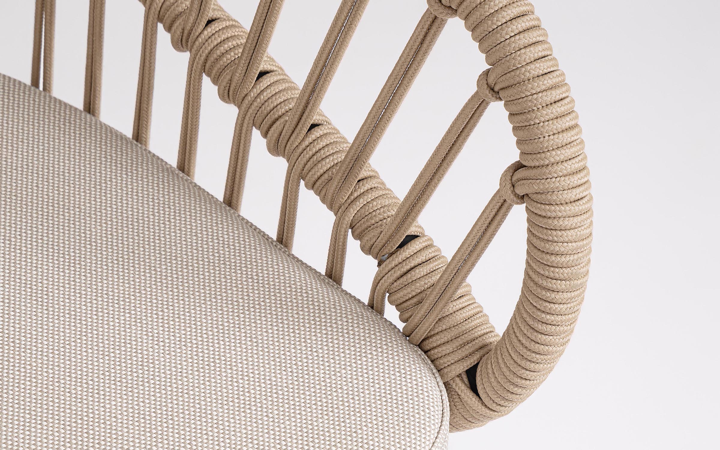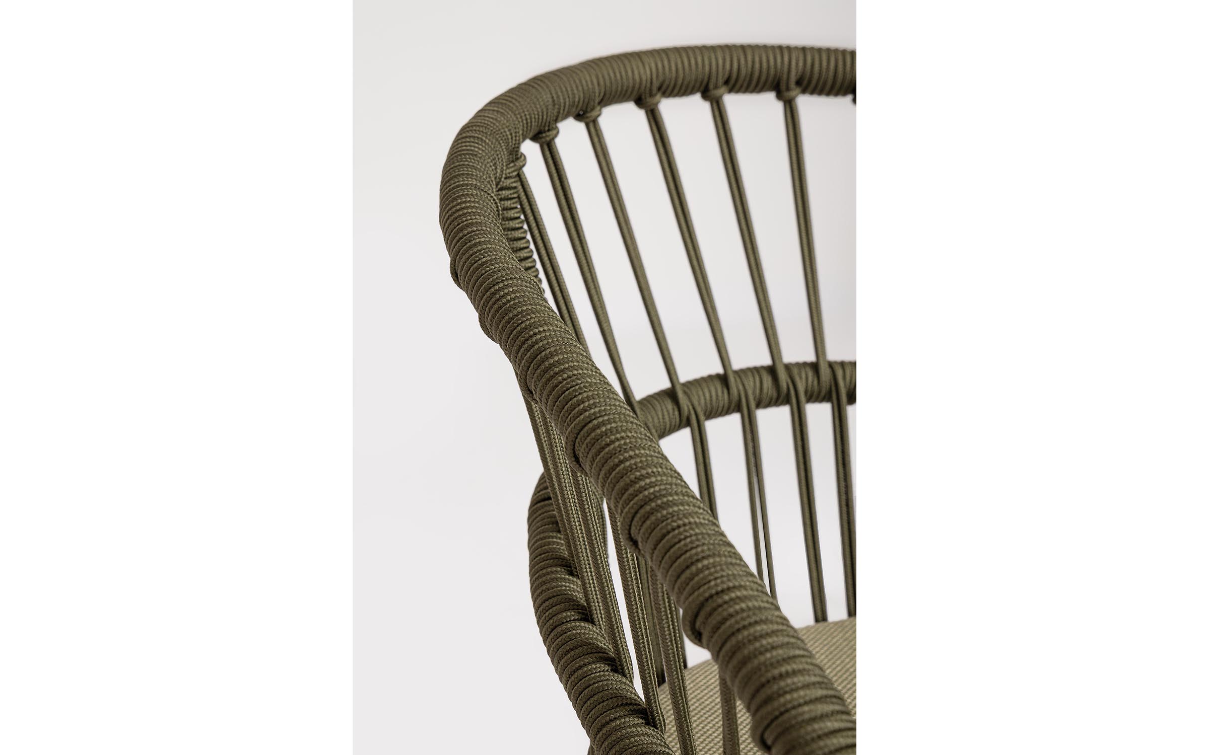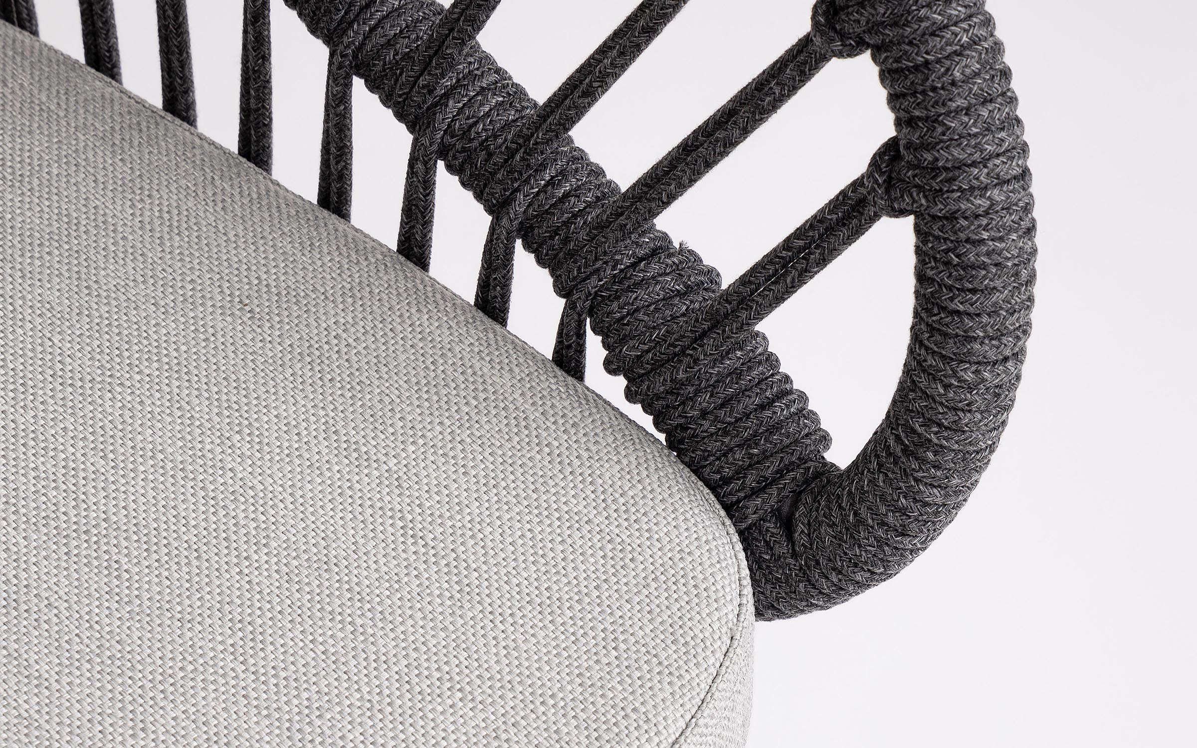Lekka konstrukcja aluminiowa z oplotem z liny poliestrowej zapewnia odpowiednią sprężystość i wygodę siedzenia.