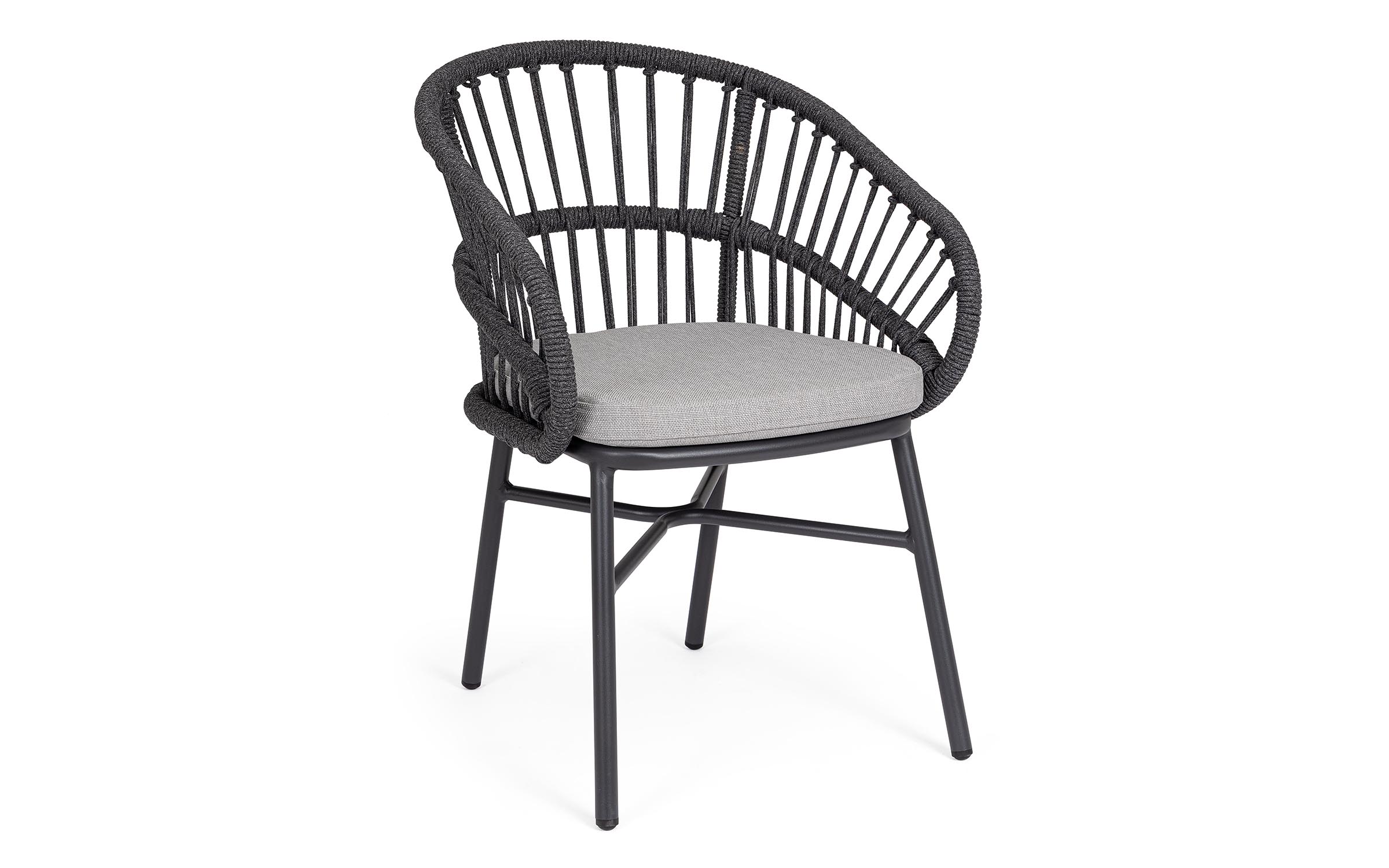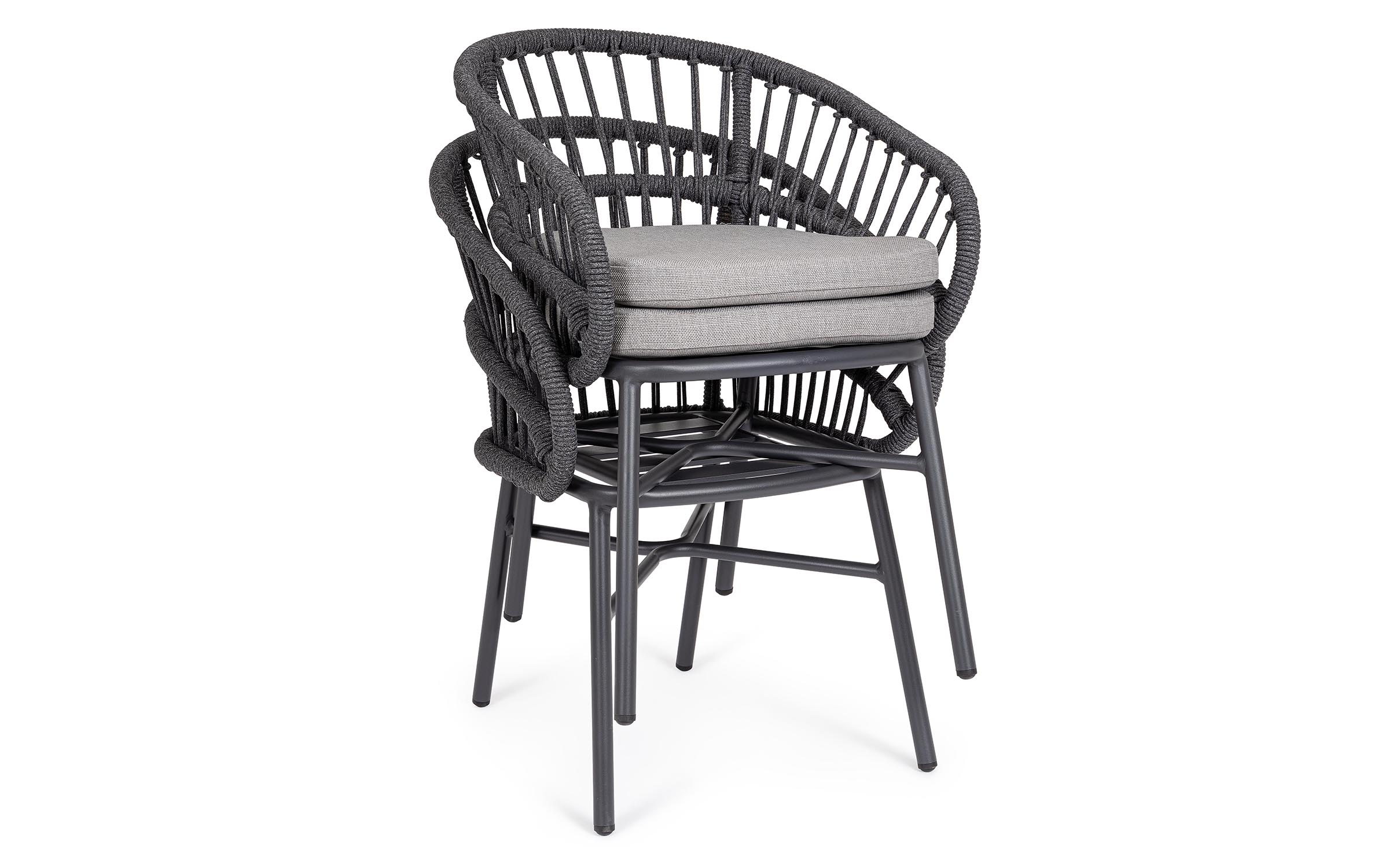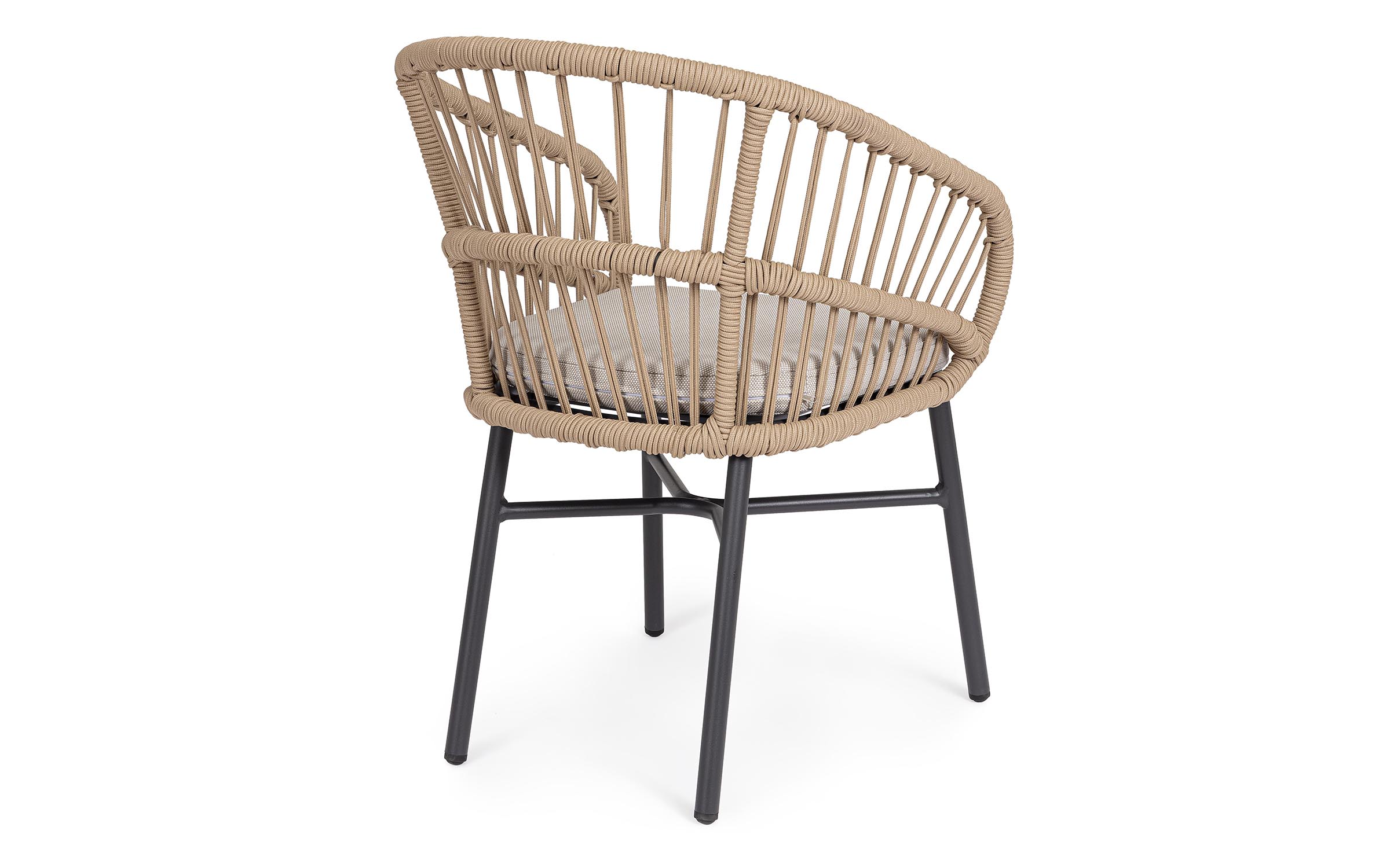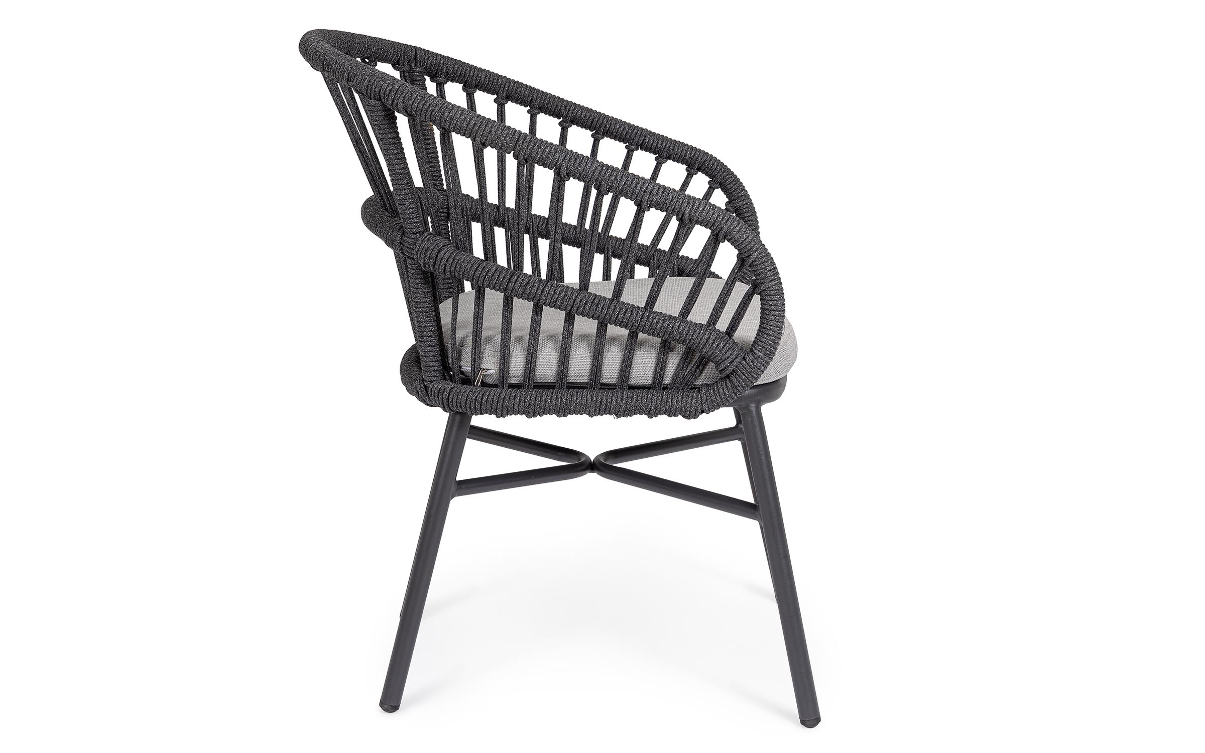 Lekka konstrukcja aluminiowa z oplotem z liny poliestrowej zapewnia odpowiednią sprężystość i wygodę siedzenia.