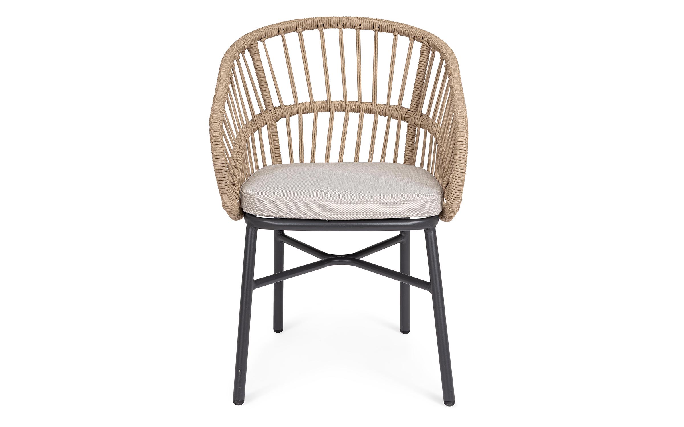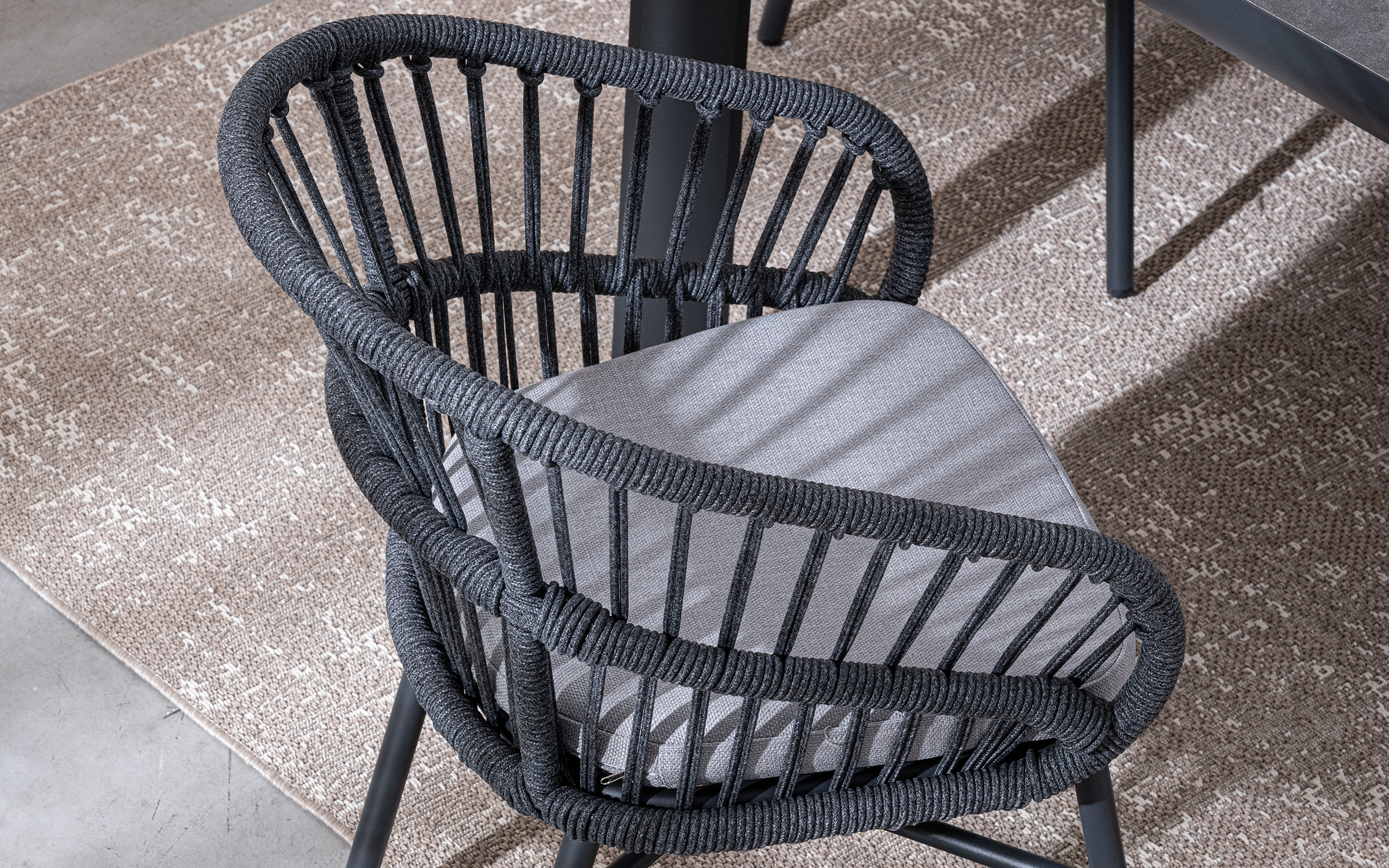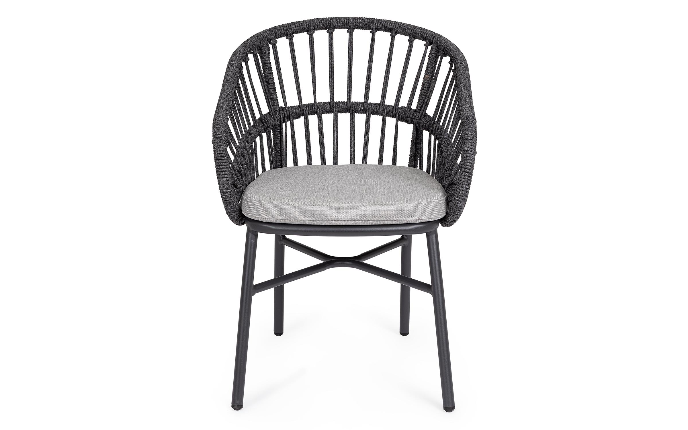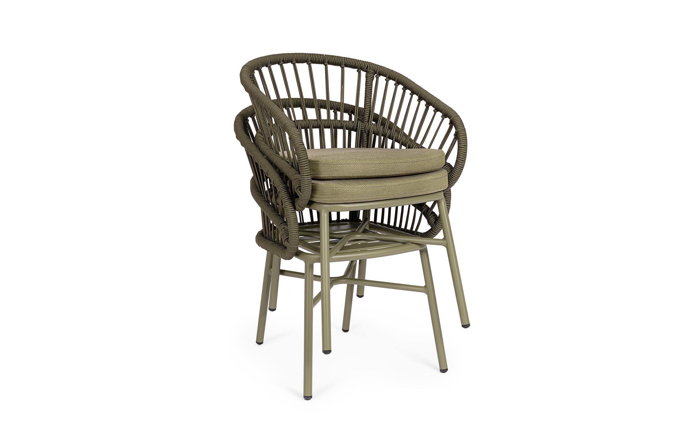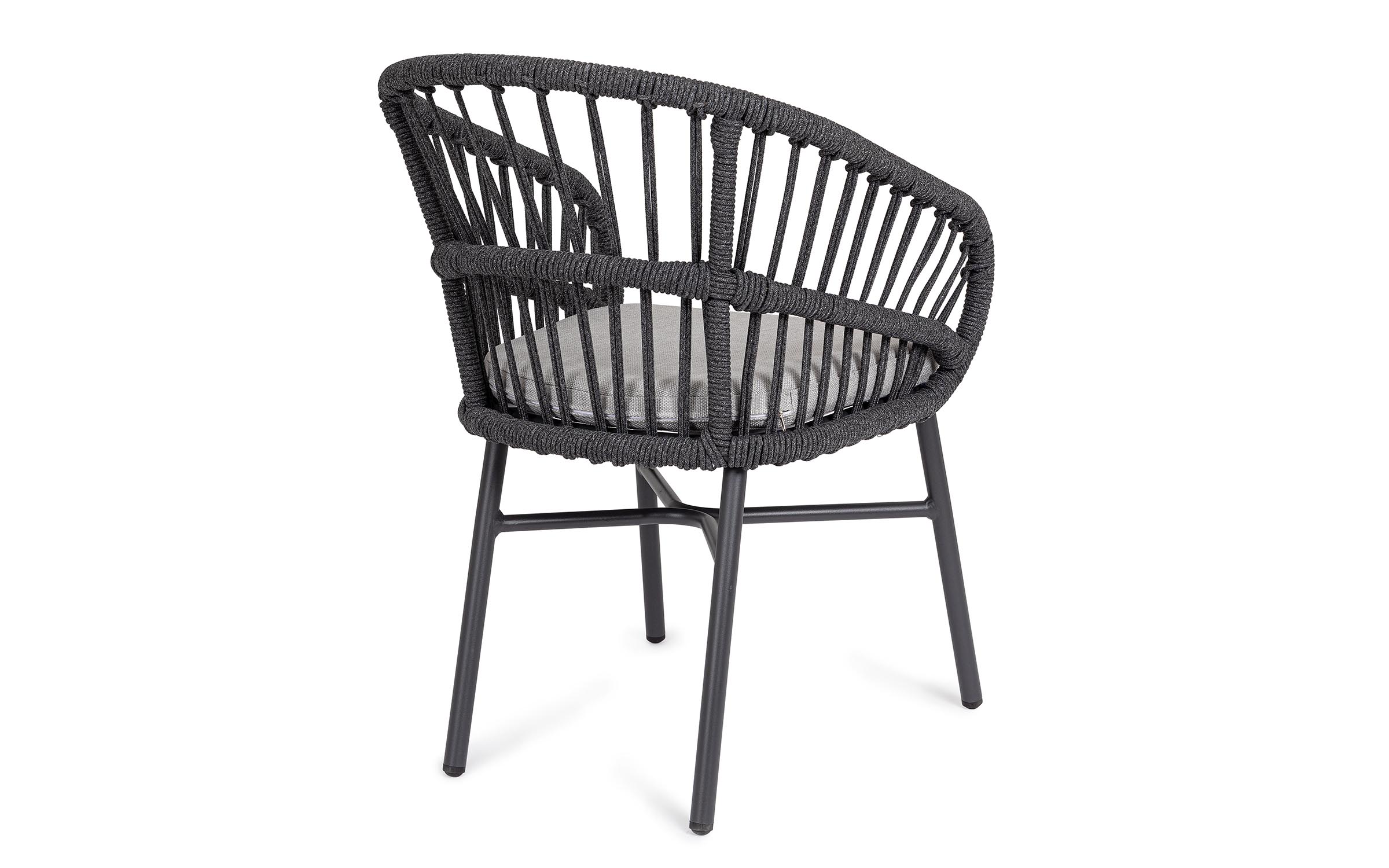 Lekka konstrukcja aluminiowa z oplotem z liny poliestrowej zapewnia odpowiednią sprężystość i wygodę siedzenia.