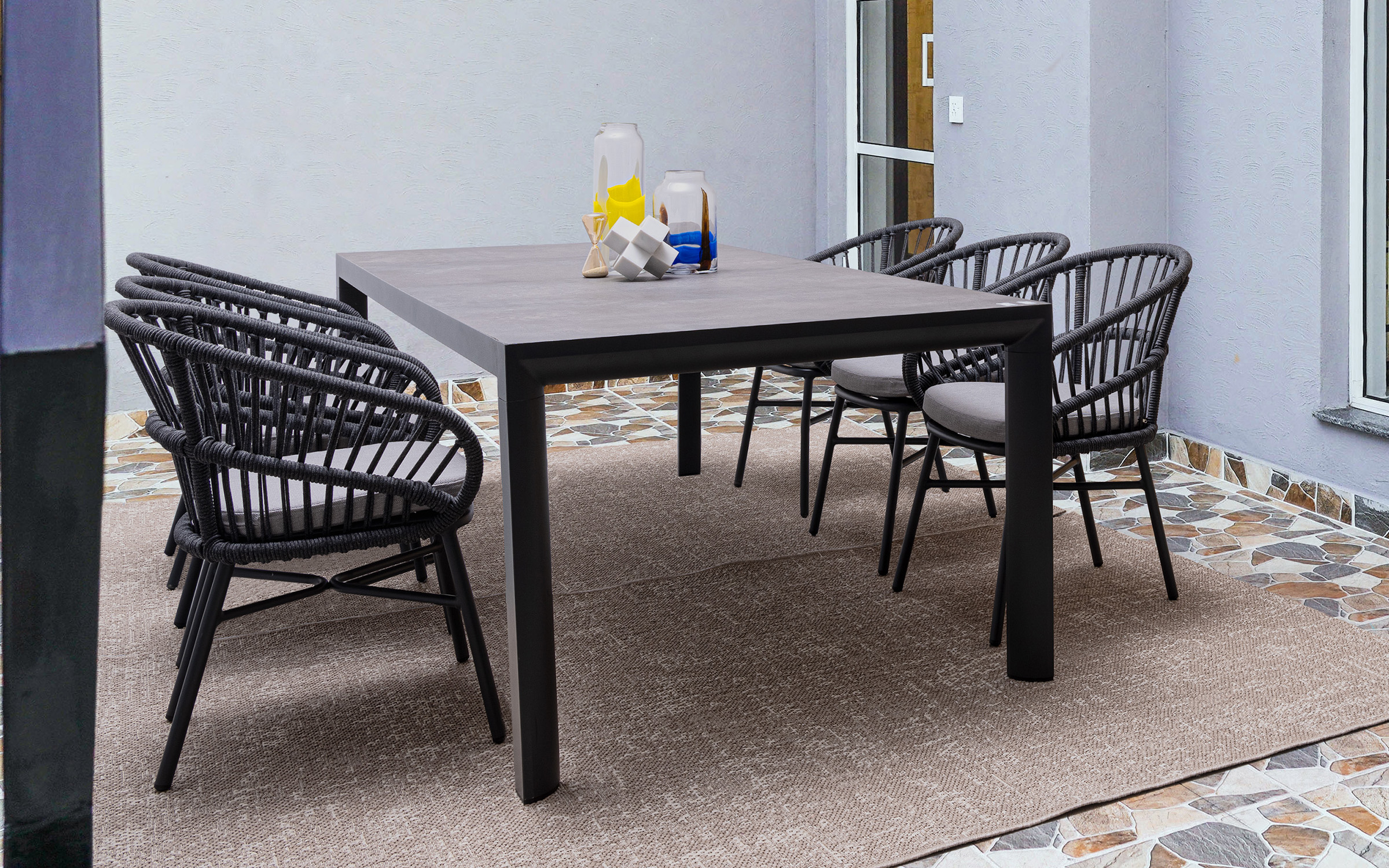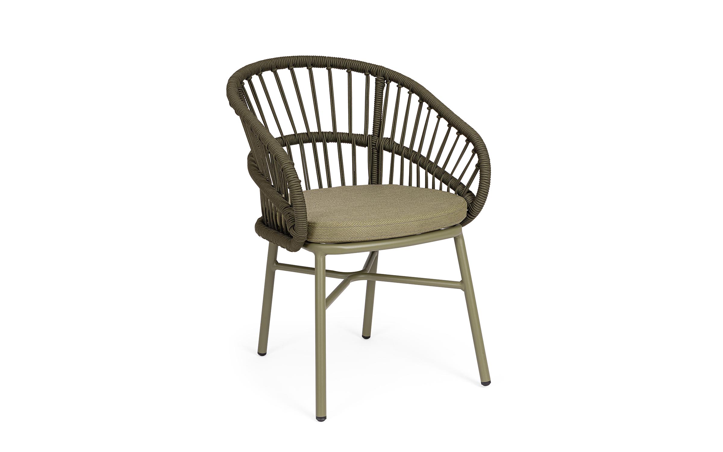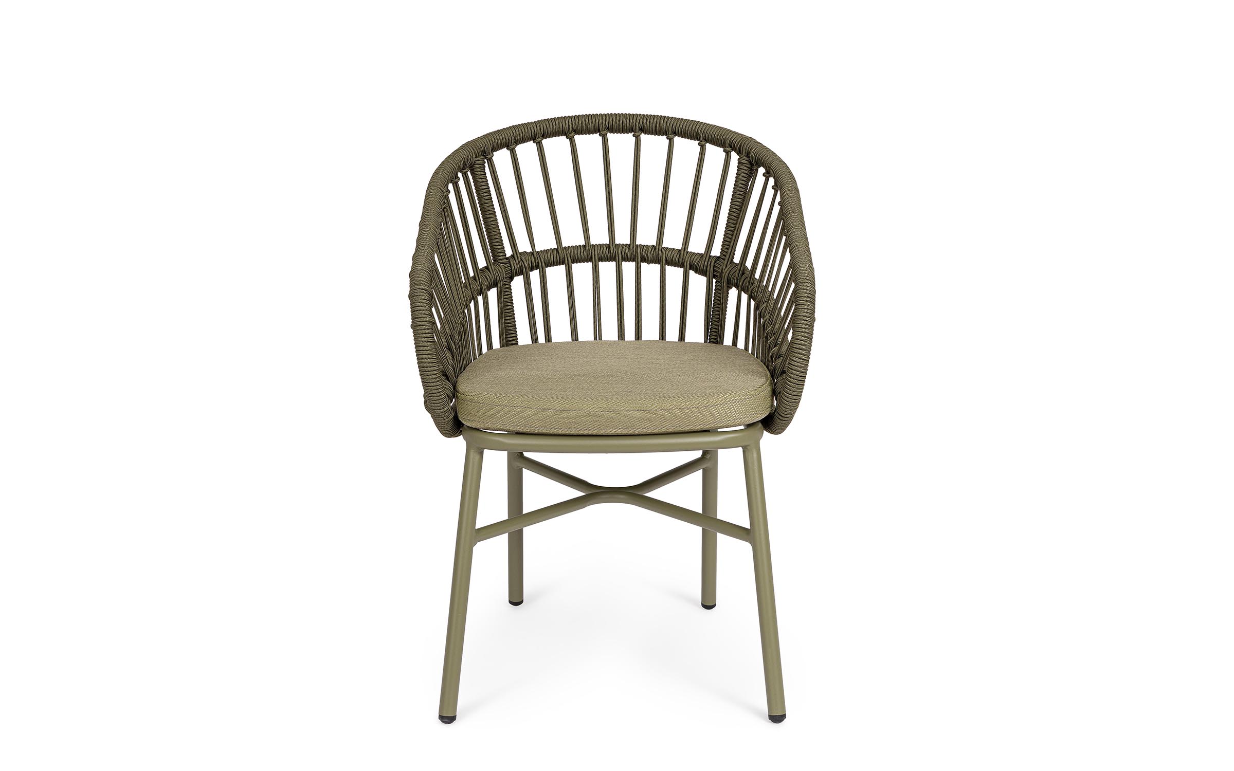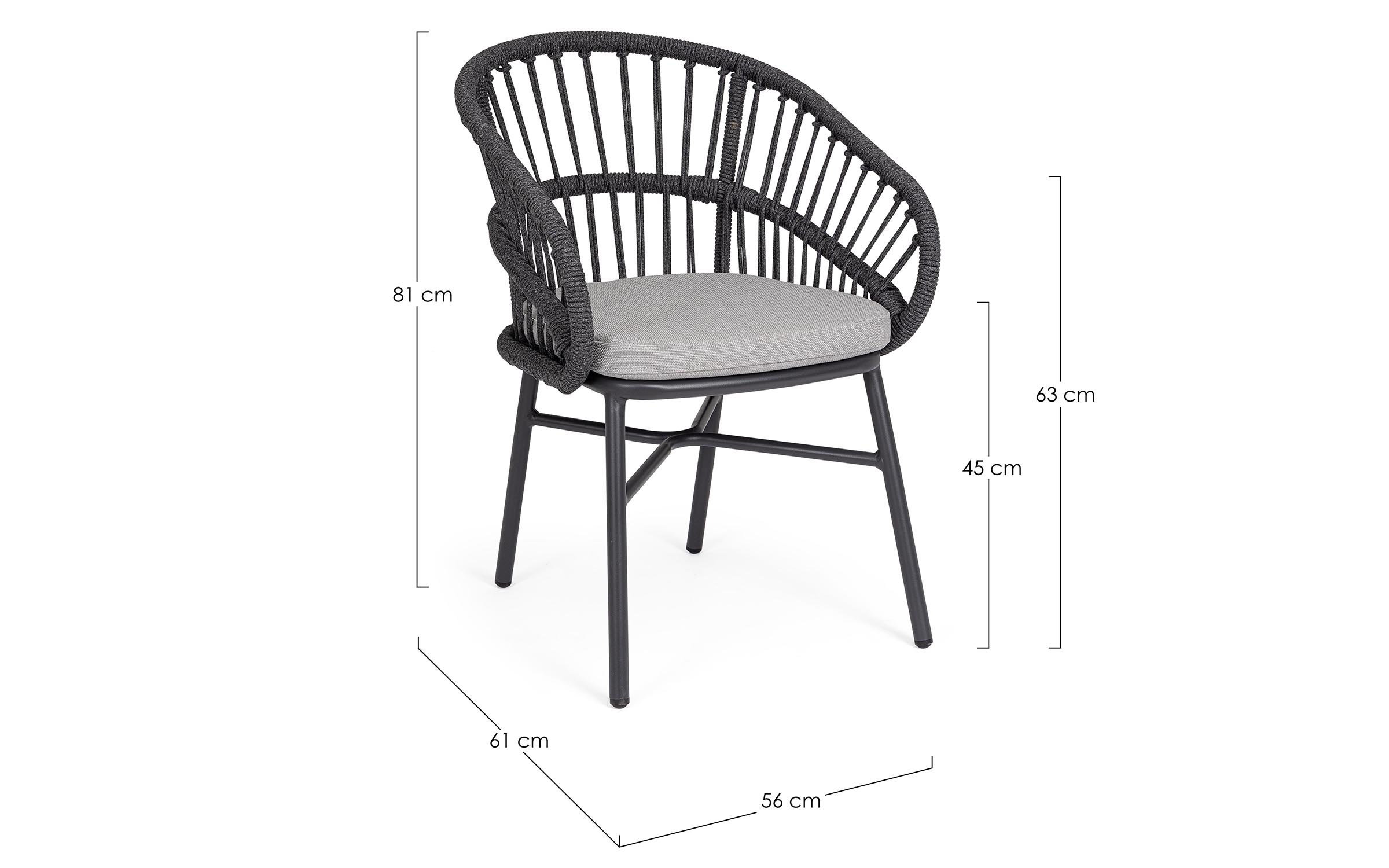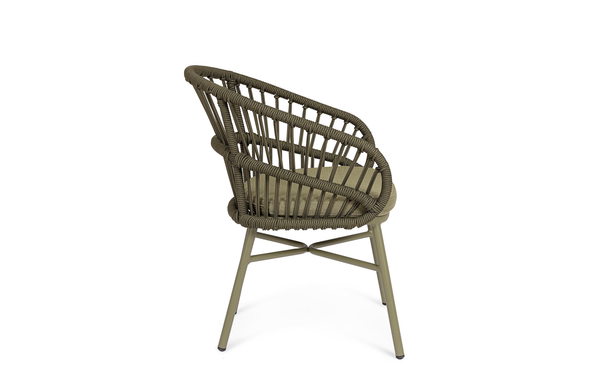Lekka konstrukcja aluminiowa z oplotem z liny poliestrowej zapewnia odpowiednią sprężystość i wygodę siedzenia.