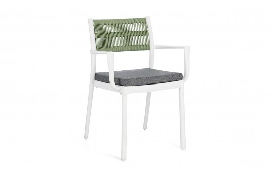 4x fotel ogrodowy sztaplowany z podłokietnikami / aluminiowa podstawa malowana proszkowo na kolor biały / plecionka lina / poduszka