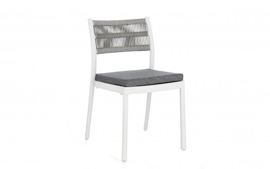 4x krzesło ogrodowe sztaplowane / aluminiowa podstawa malowana proszkowo na kolor biały / plecionka lina / poduszka