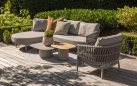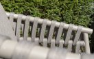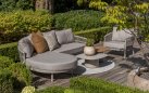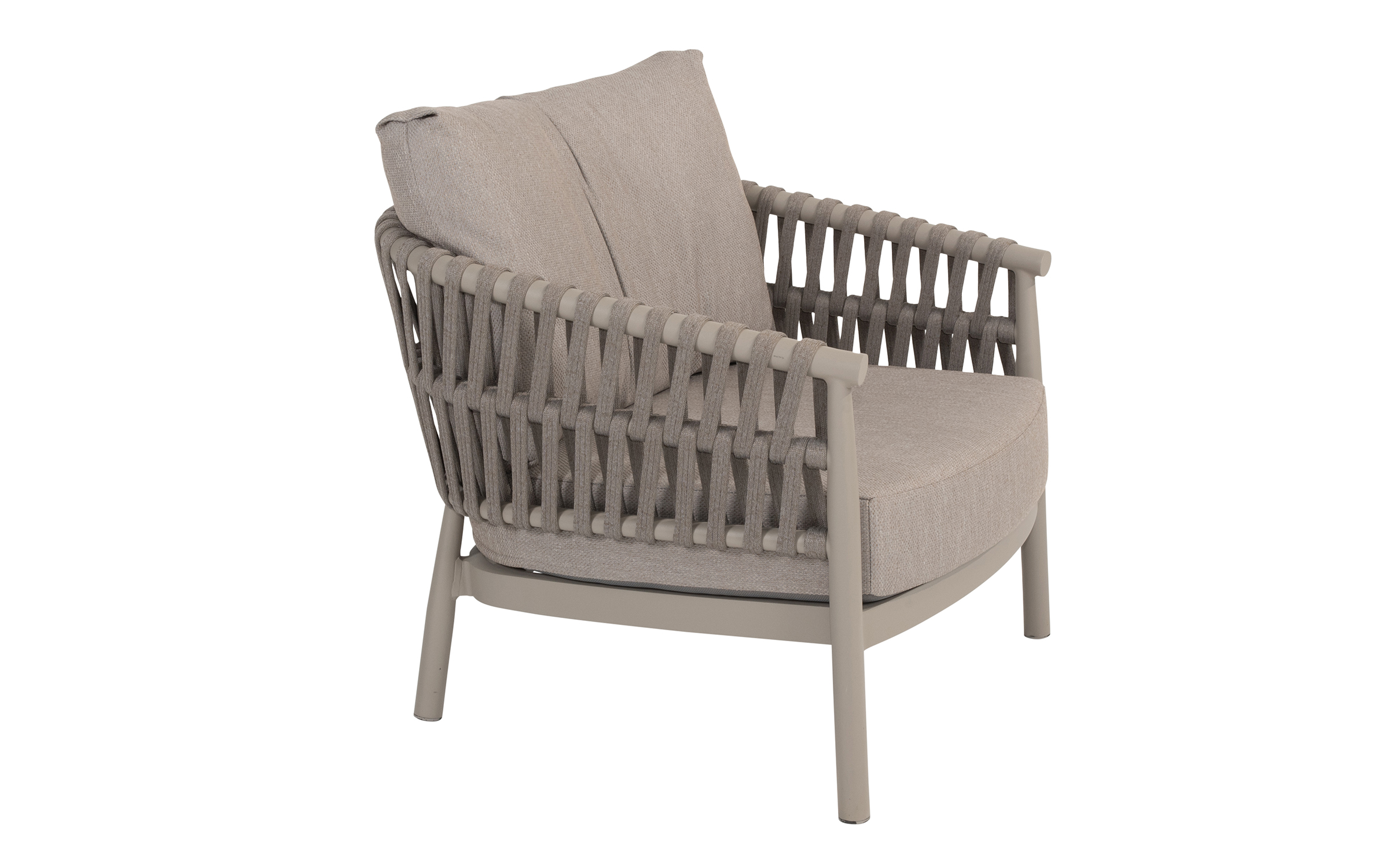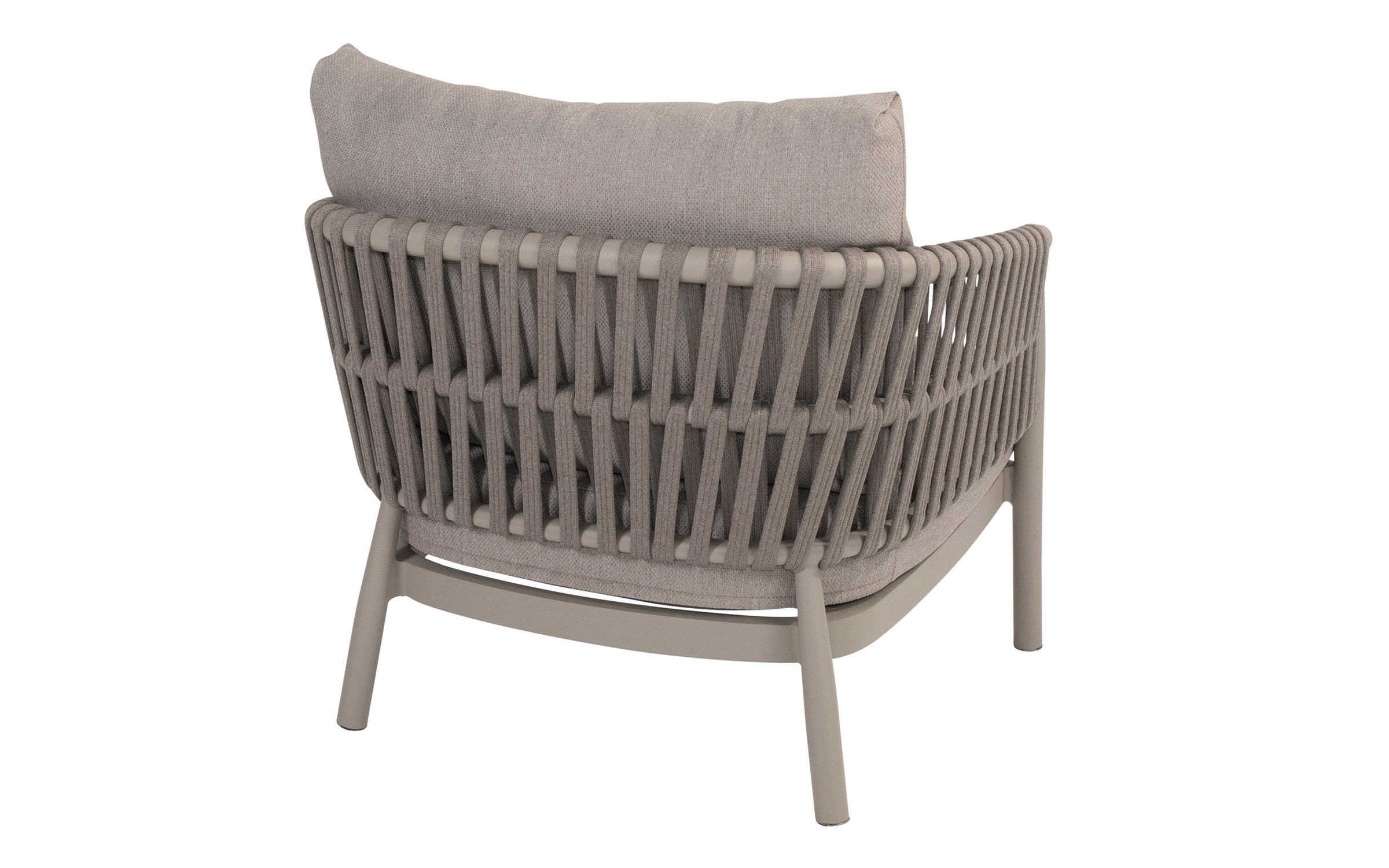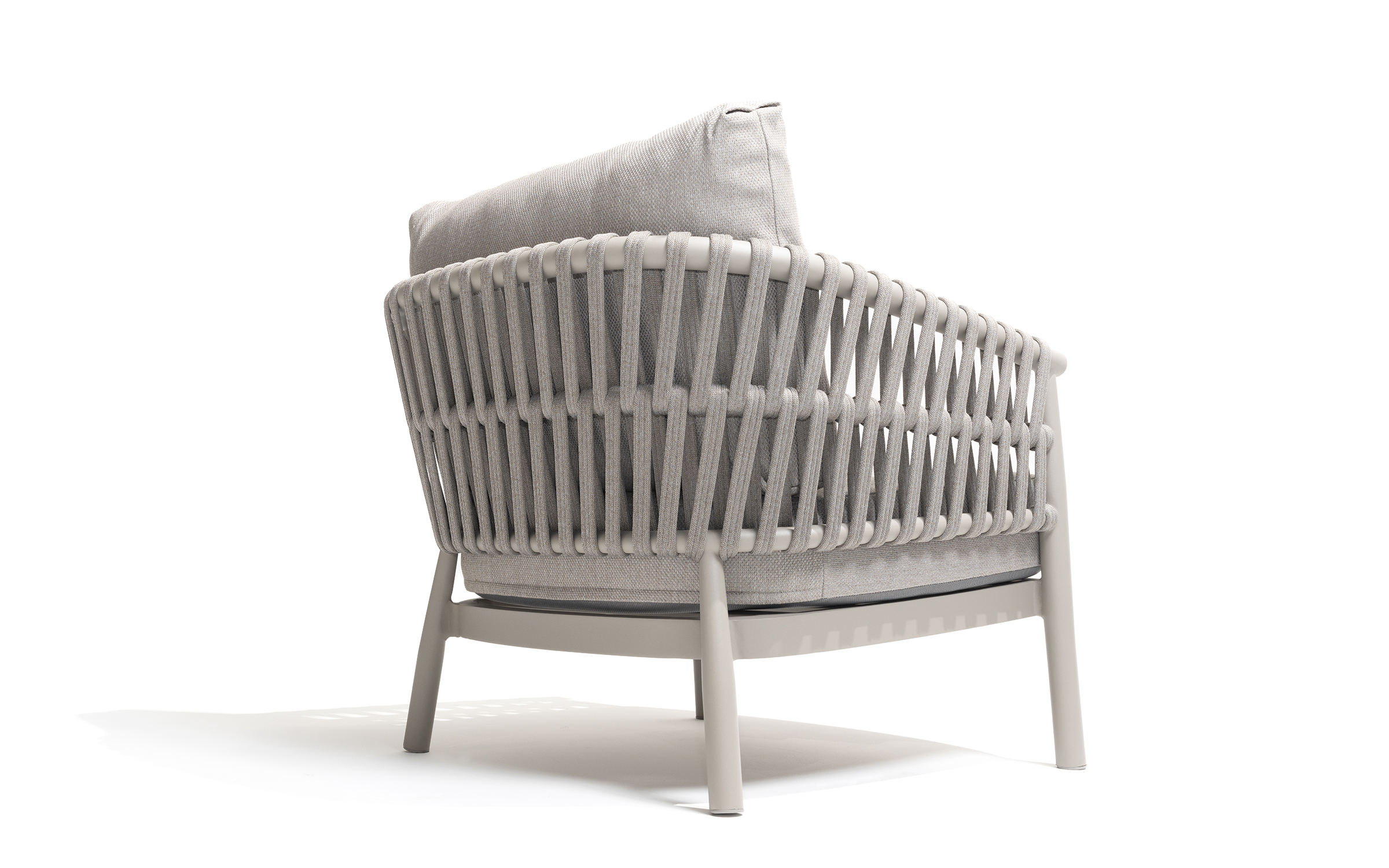 Aluminiowa konstrukcja fotela wypoczynkowego Catalana posiada ochronną warstwę szarej powłoki proszkowej. Konstrukcja tworzy piękne połączenie z szarą linową polipropylenową.