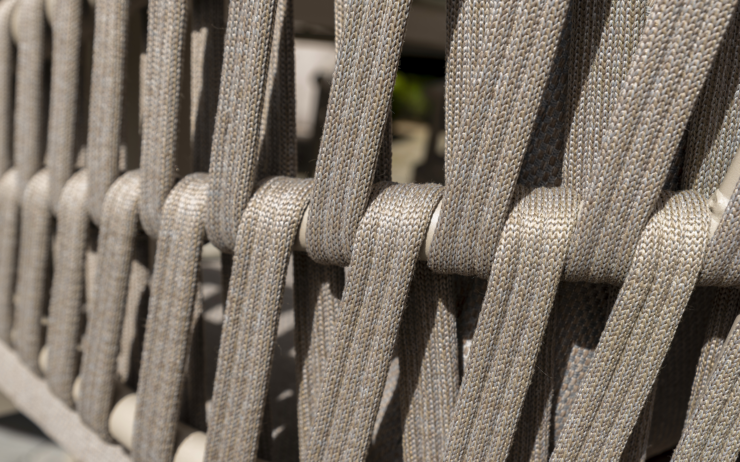 Boki i oparcie oplecione liną polipropylenową, wodoodporne i odporne na uv.