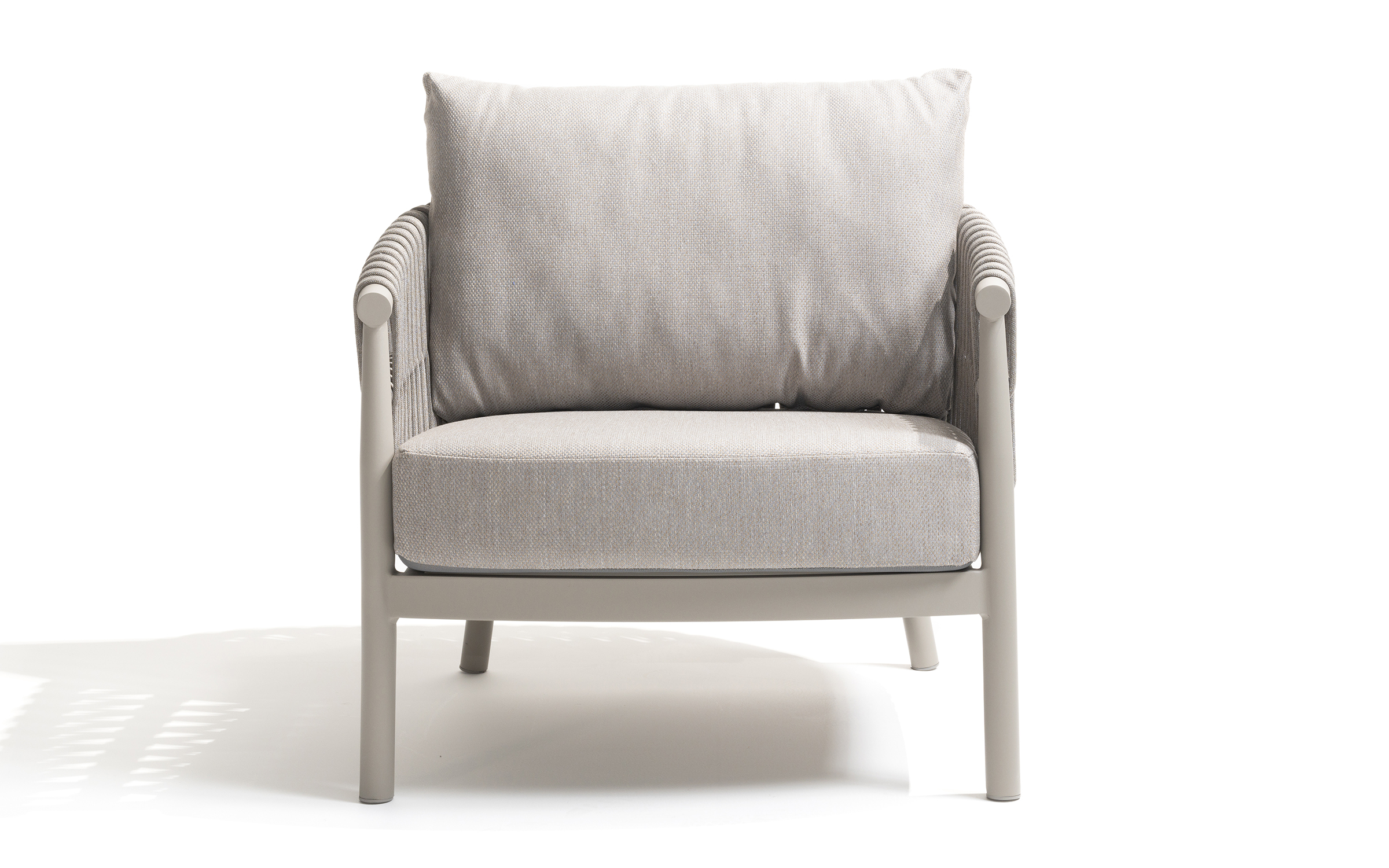 Fotel wypoczynkowy Catalana jest całkowicie odporny na warunki atmosferyczne i łatwy w utrzymaniu.