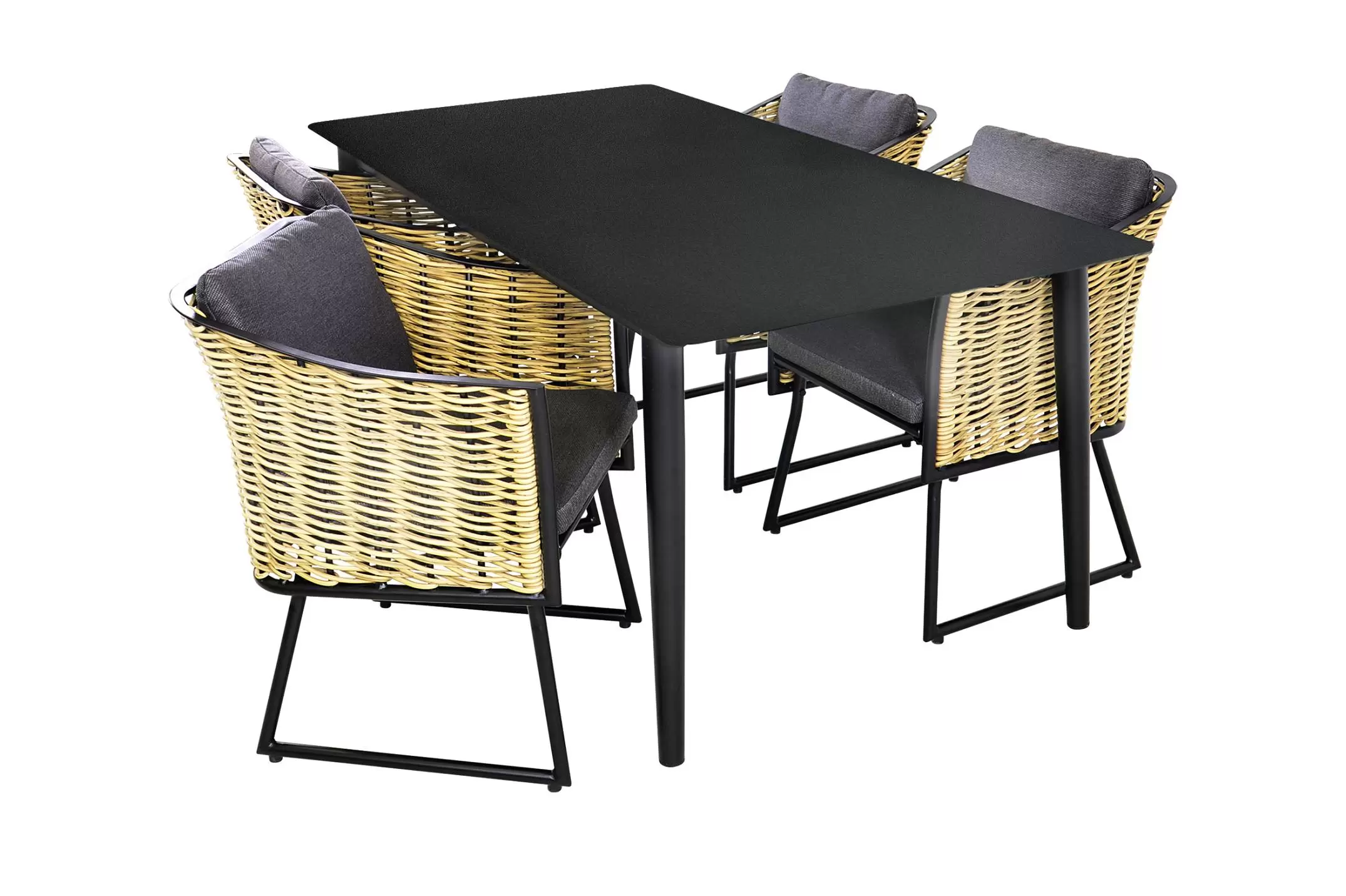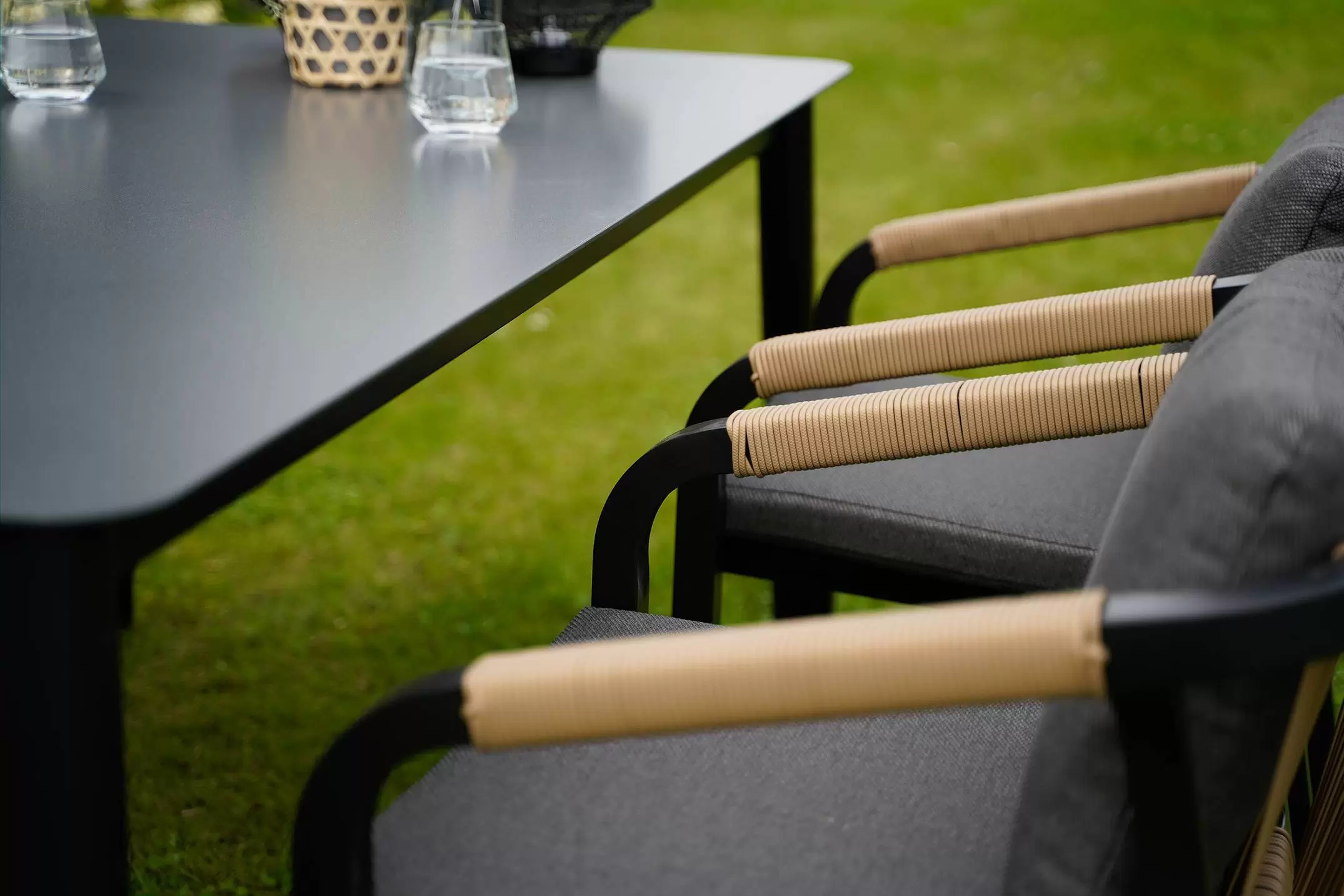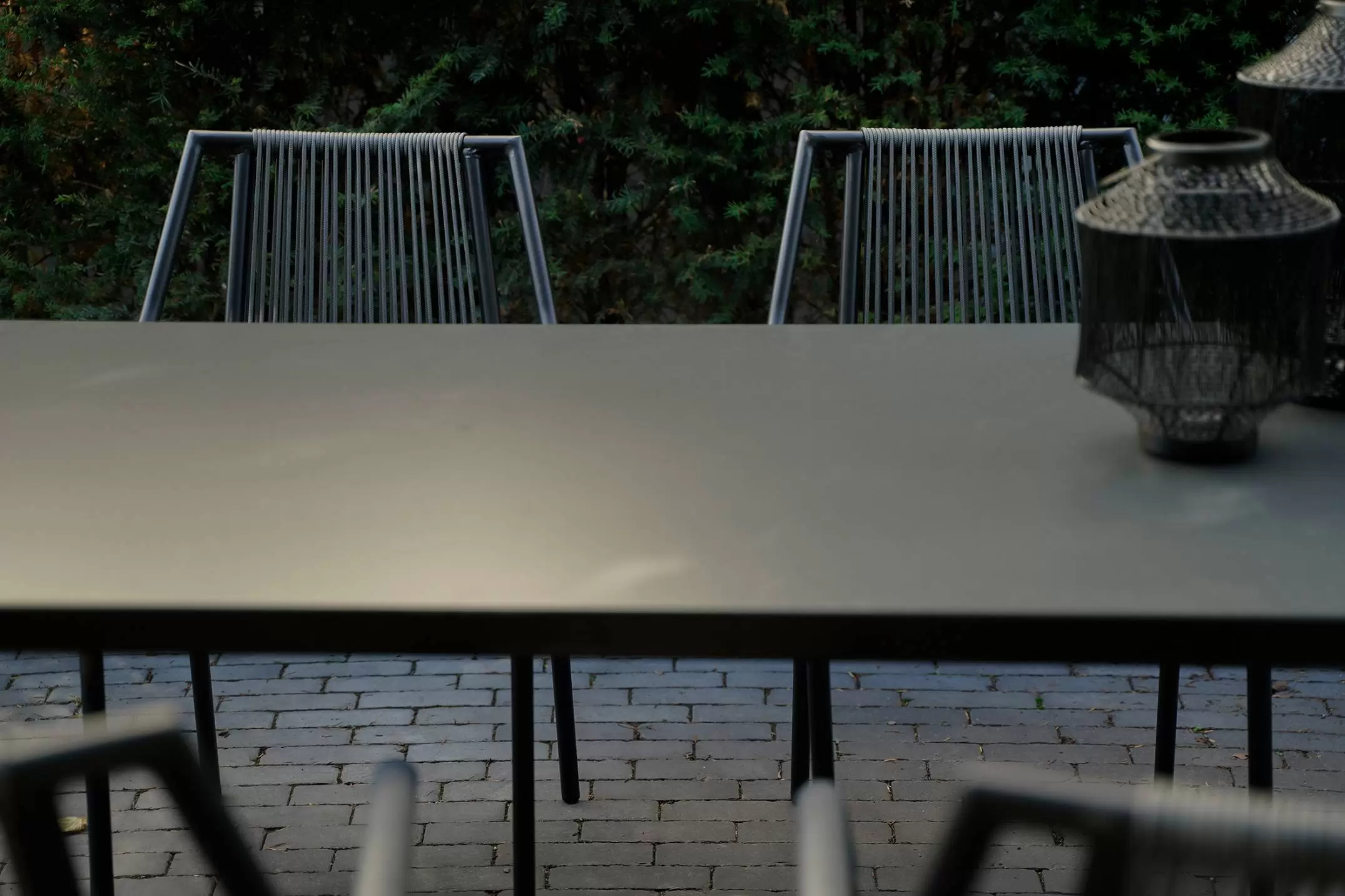Wykonany z aluminiowej ramy w kolorze czarnym, stół Crest to świeży wygląd w Twoim ogrodzie lub na tarasie.