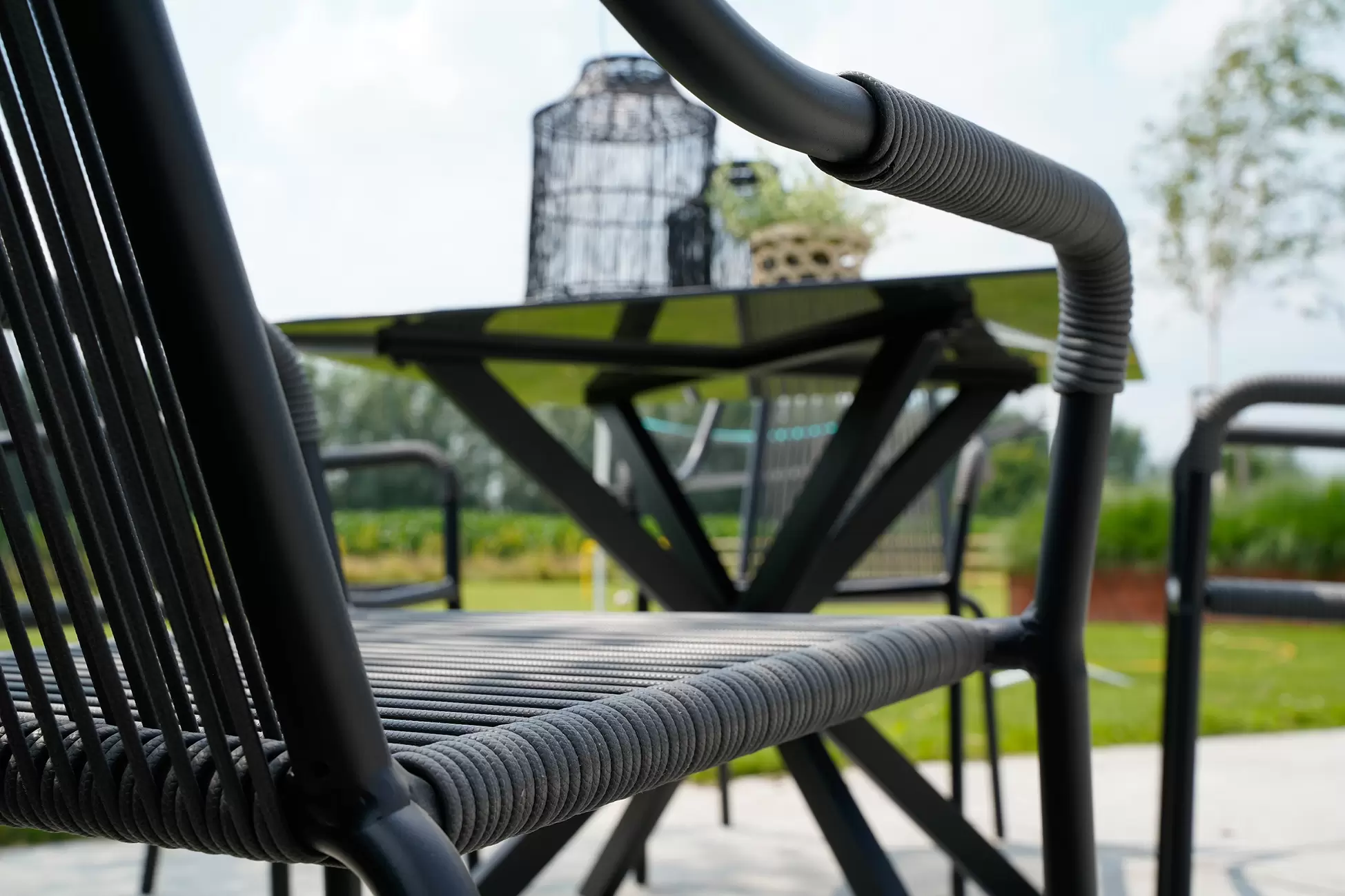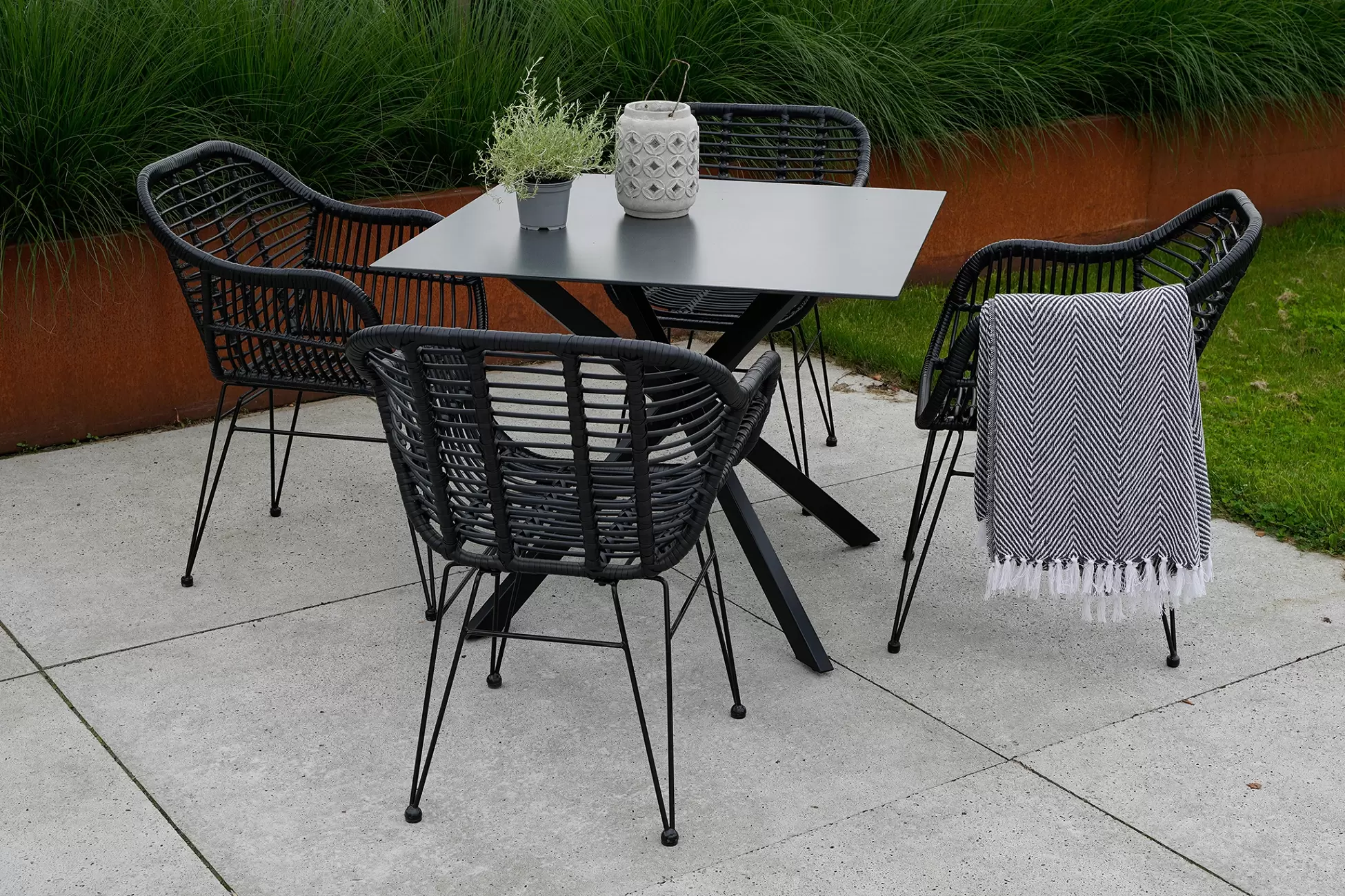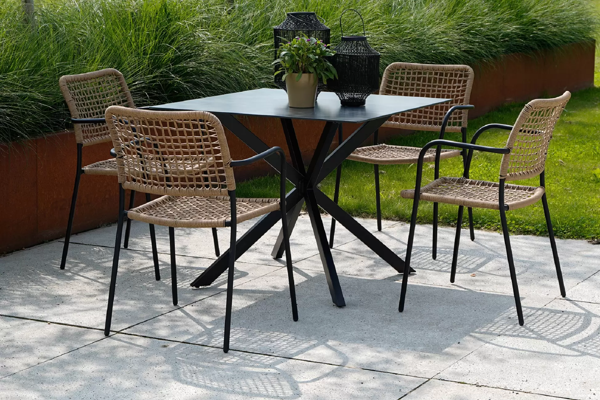 Wykonany z aluminiowej ramy w kolorze czarnym, stół Crest to świeży wygląd w Twoim ogrodzie lub na tarasie.