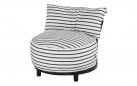 Okrągły fotel ogrodowy Emma ma tapicerkę wykonaną z materiału Sunbrella - miękka, przyjemna w dotyku i trwałej tkanina, która charakteryzuje się trwałością i łatwością użytkowania. Tapicerka jest również wyposażona w szybkoschnące poduszki, dzięki czemu z łatwością wytrzyma nawet ulewny deszcz.
