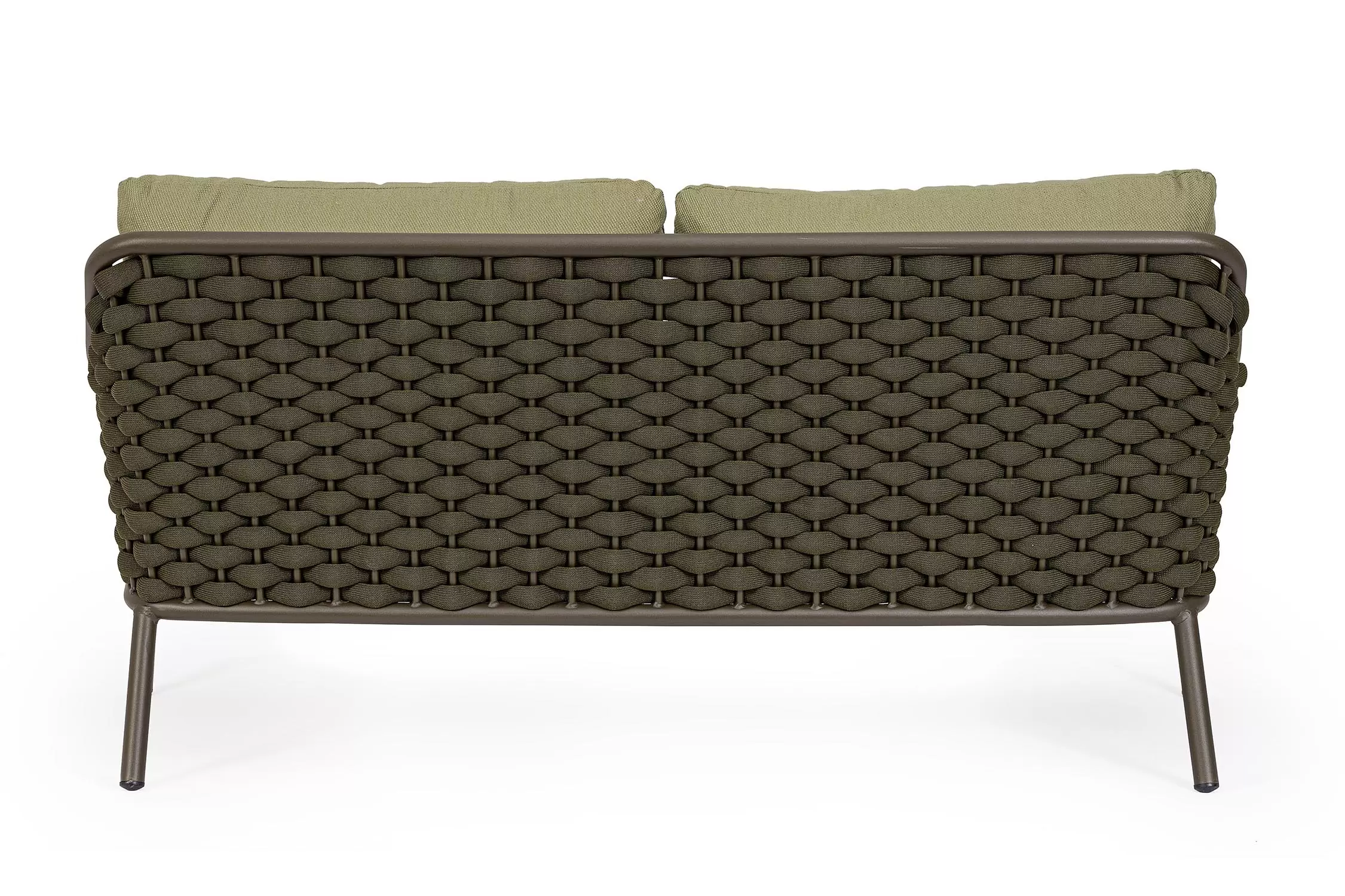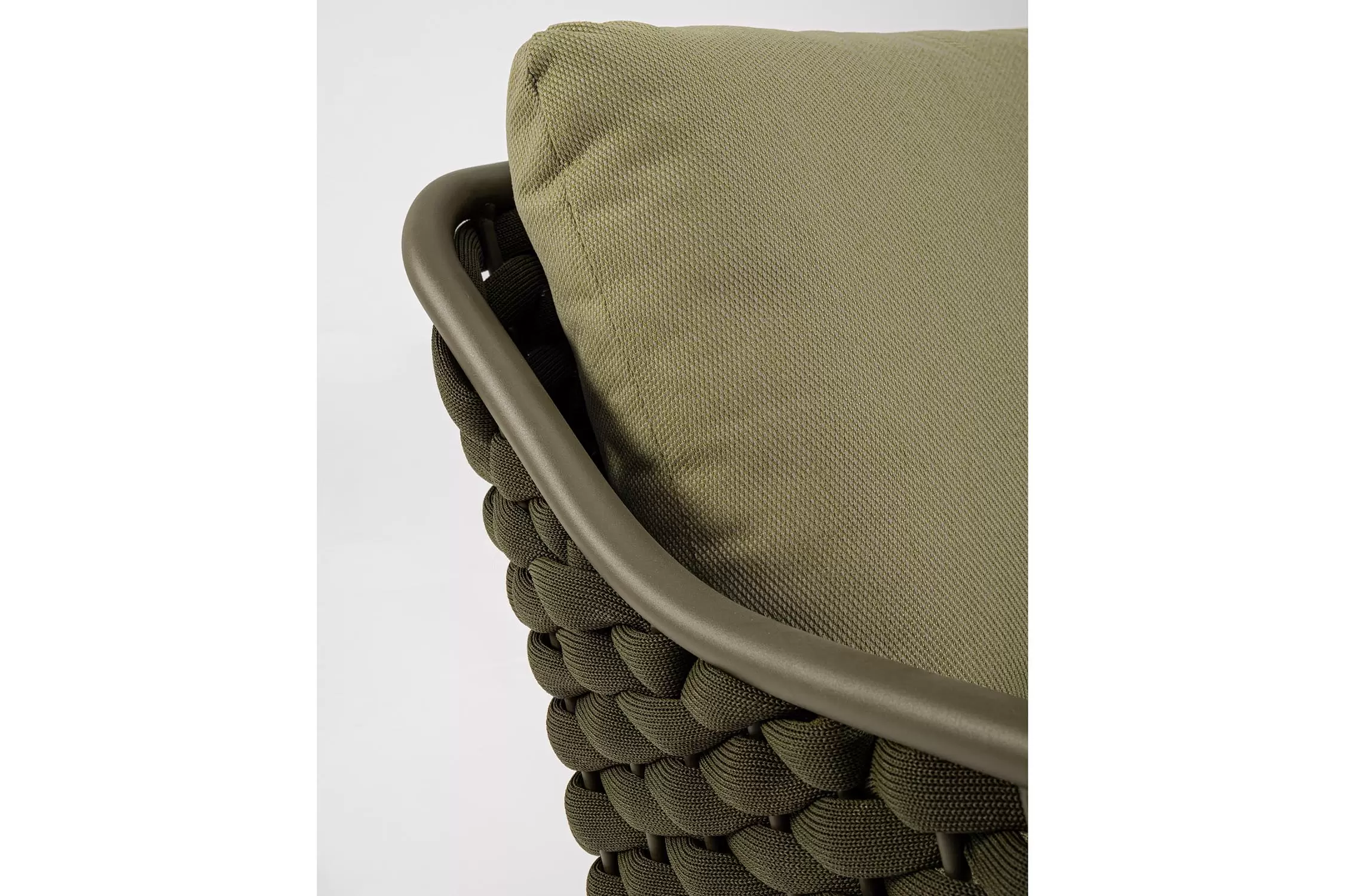Boki i oparcie oplecione liną przyjemną w dotyku z wyplenieniem z polietylenu.