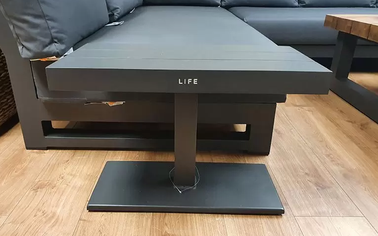 Elegancki stolik kawowy pasujący do mebli FITZ z grubym aluminiowym blatem.