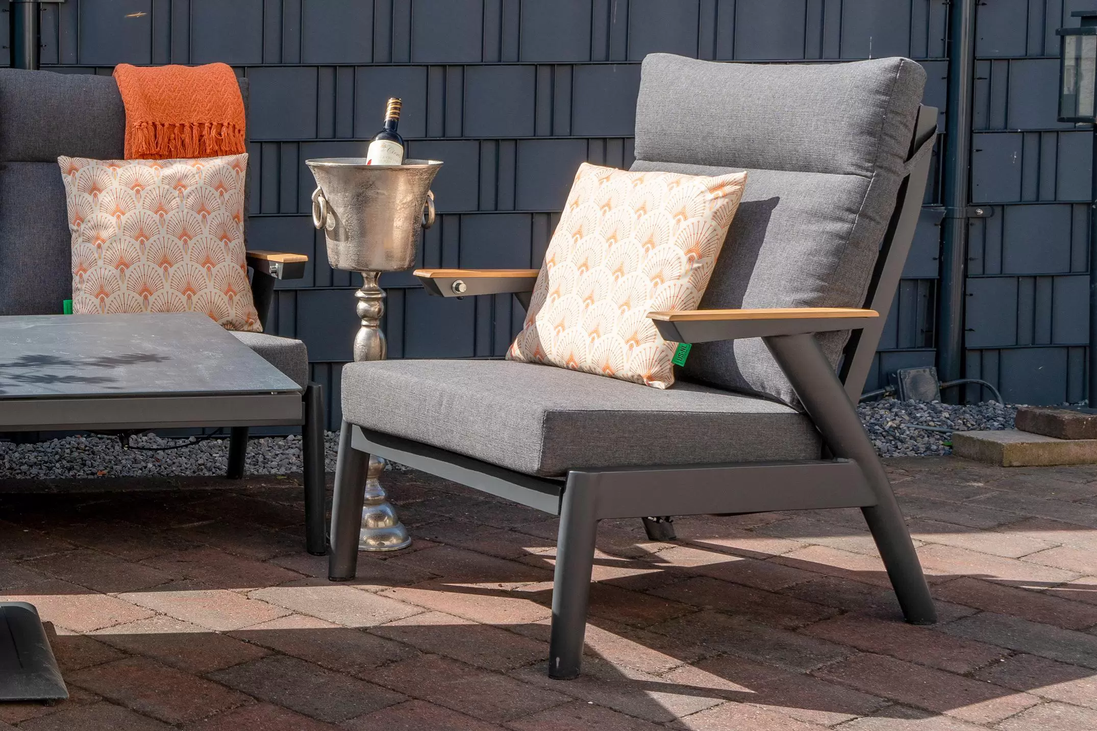 Fotel wypoczynkowy aluminiowy w kolorze ciemnoszarym to nie tylko funkcjonalne rozwiązanie, ale i elegancki element wyposażenia dla Twojego tarasu.