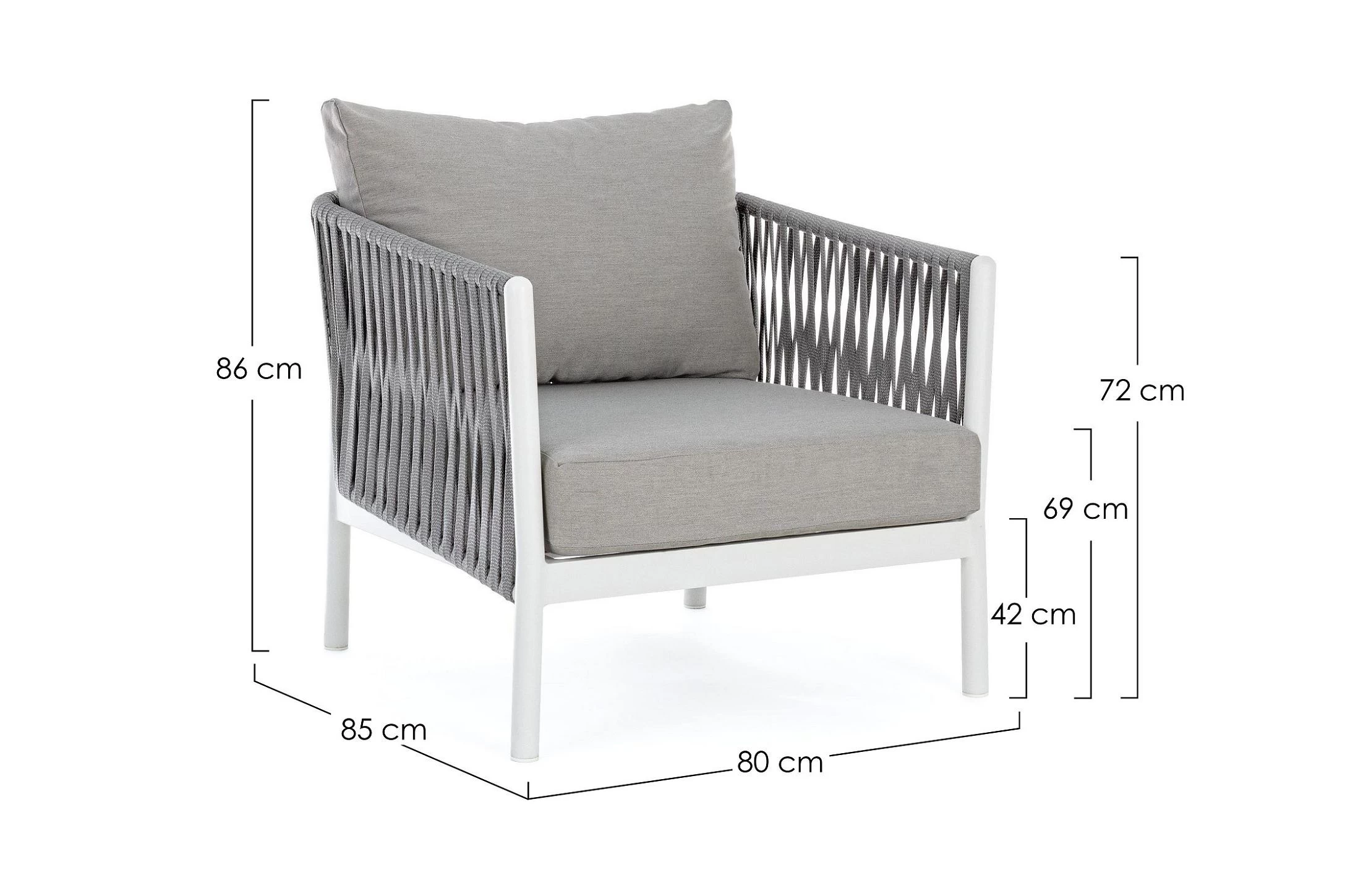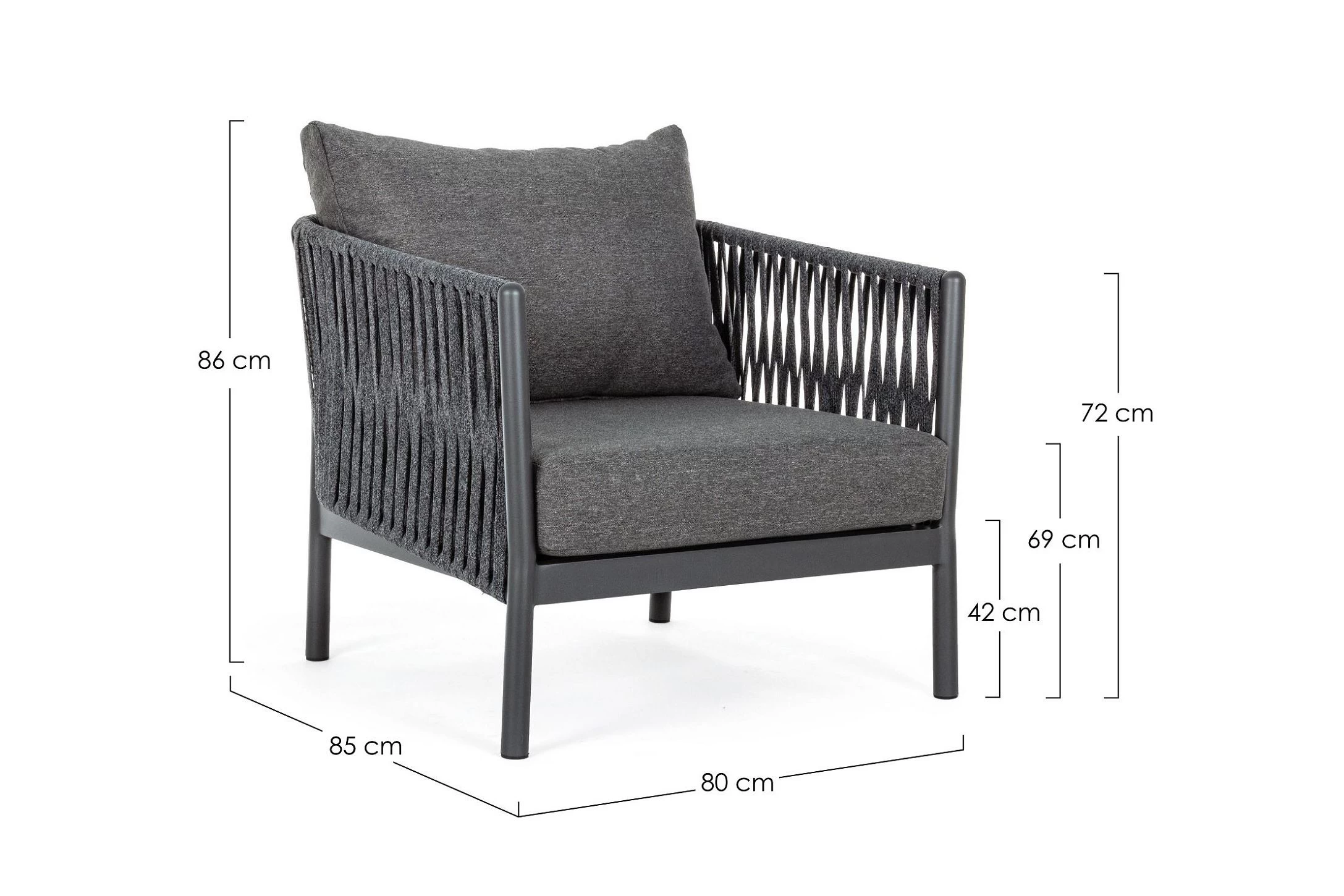 Szerokość 80 cm / Głębokość 85 cm / Wysokość 86 cm (72 cm do oparcia)