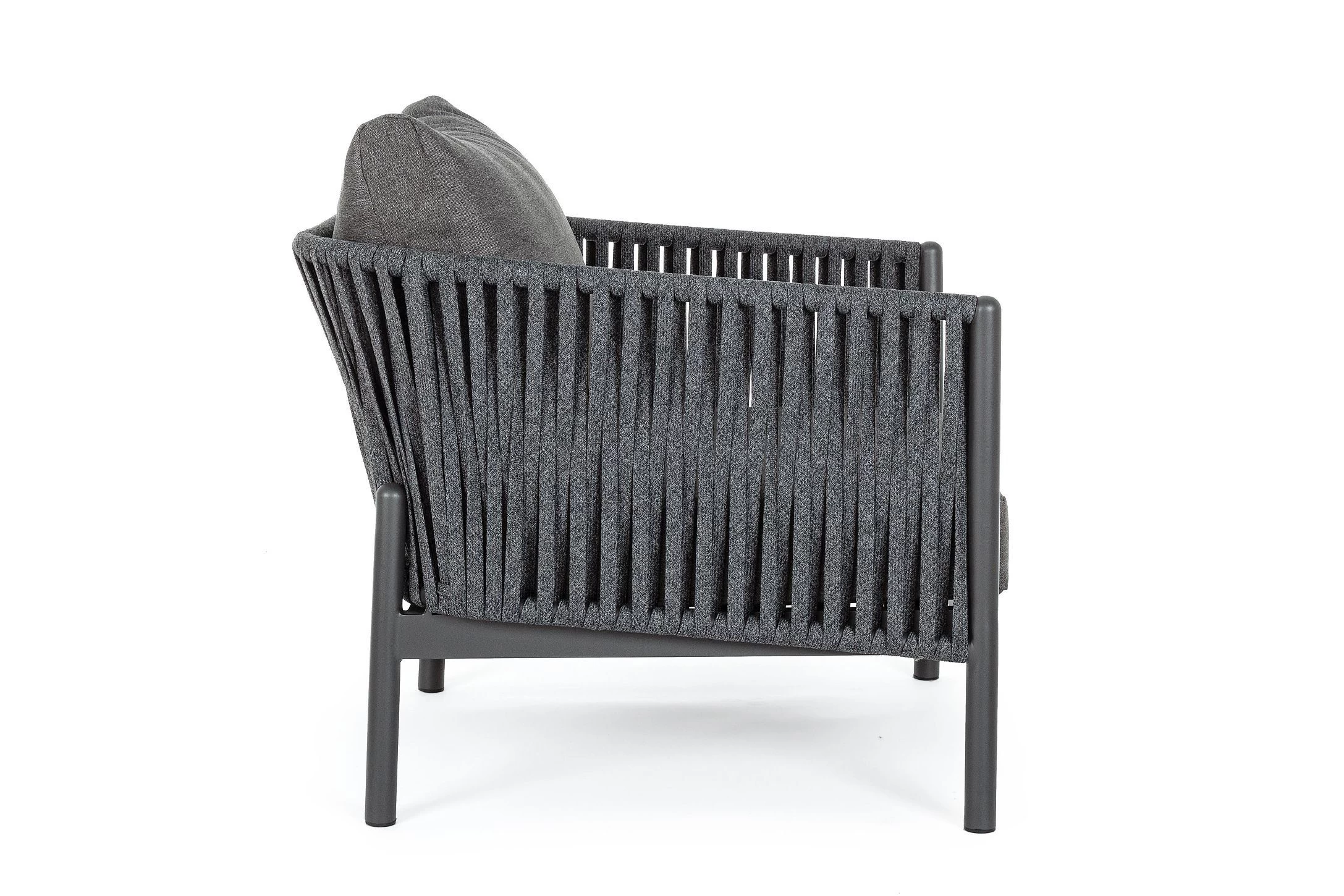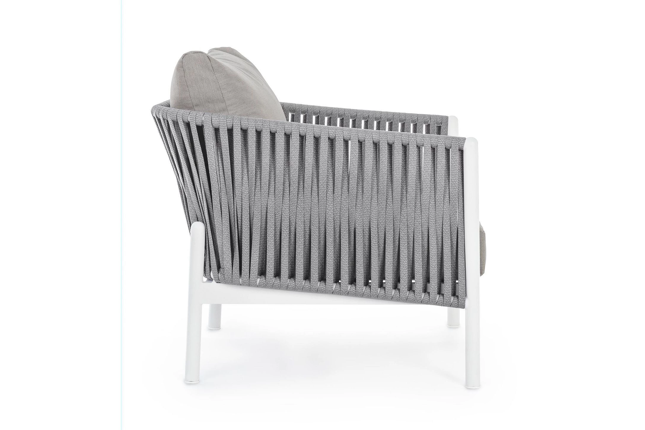 Boki i oparcie oplecione liną polipropylenową, wodoodporne i odporne na uv.