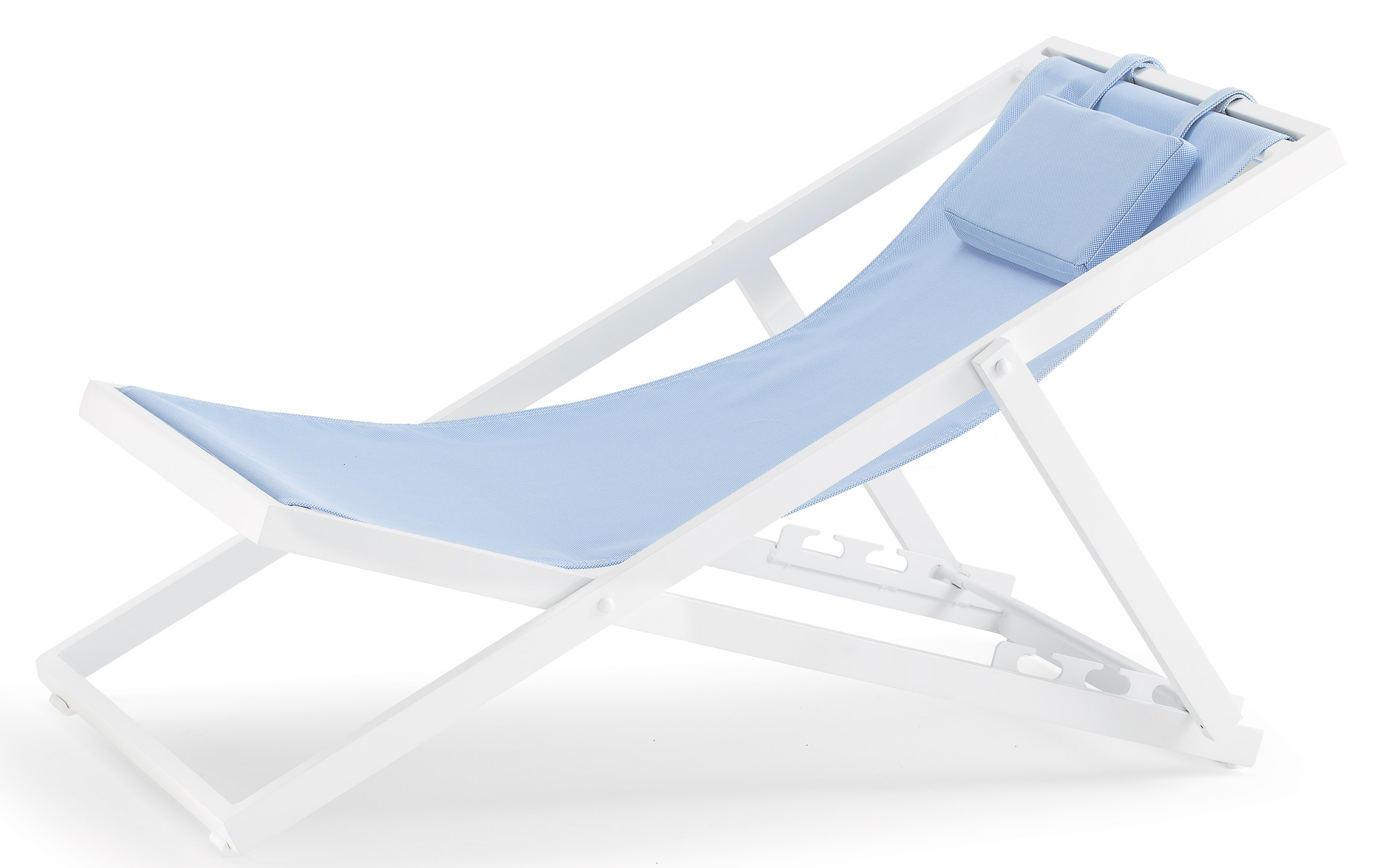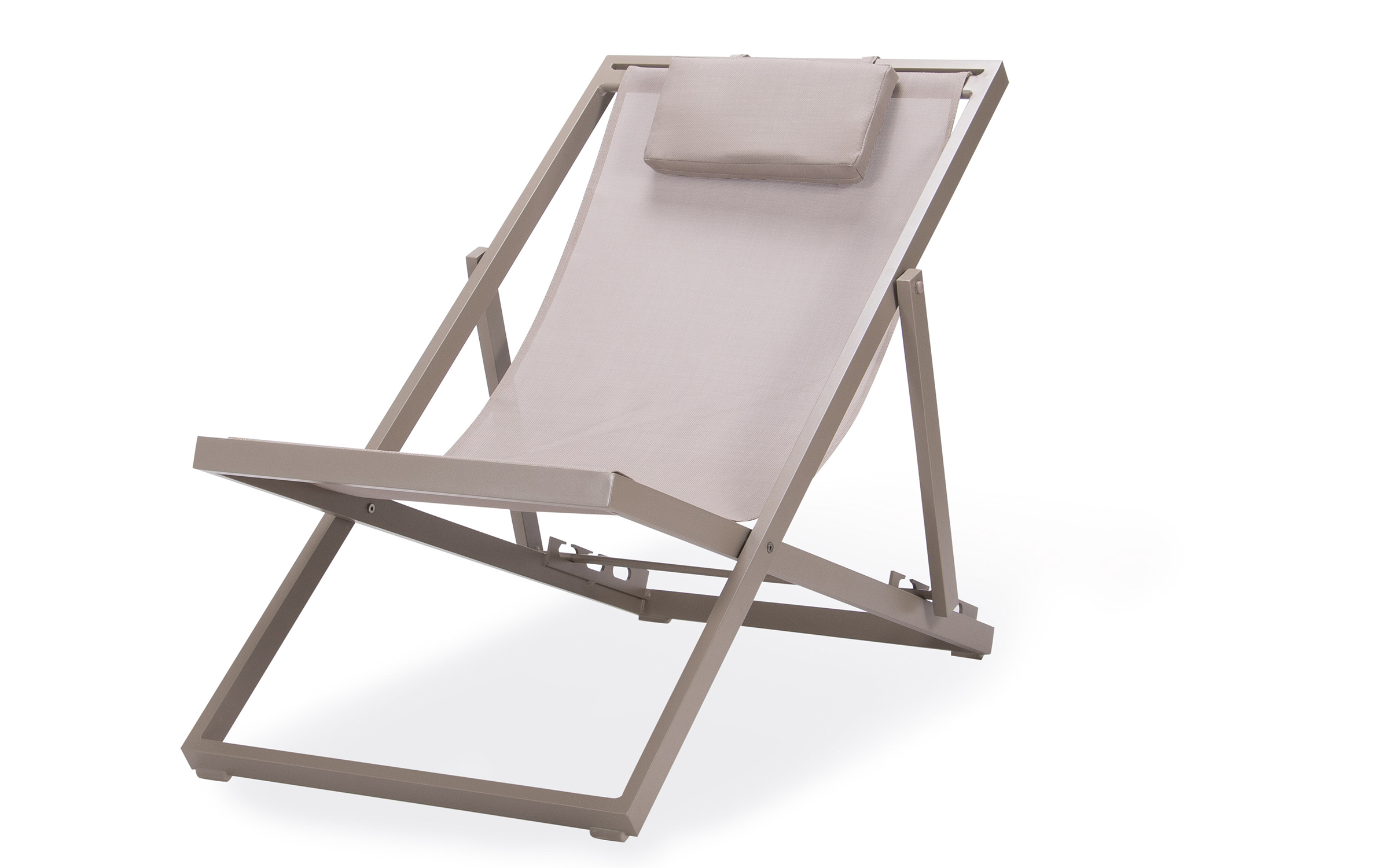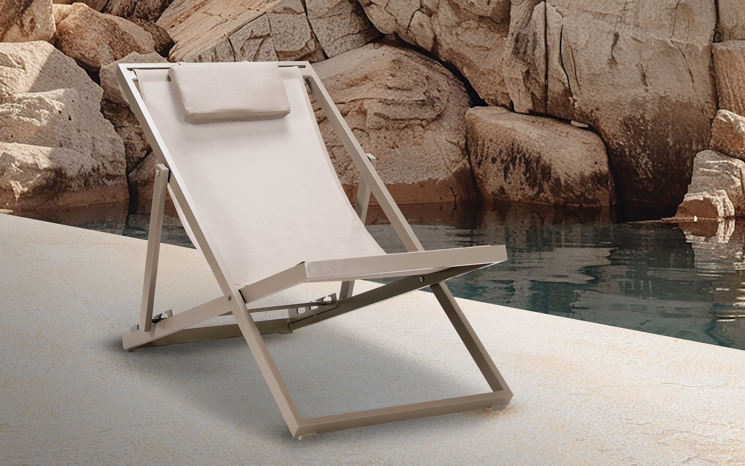 Model ten doskonale odnajduje się nie tylko w prywatnych ogrodach, ale również w przestrzeniach komercyjnych – od luksusowych stref basenowych i ośrodków wypoczynkowych, po klimatyczne plażowe bary. Prezentowany wariant łączy solidną, aluminiową konstrukcję z subtelnym wykończeniem siedziska i oparcia z tekstyliny.