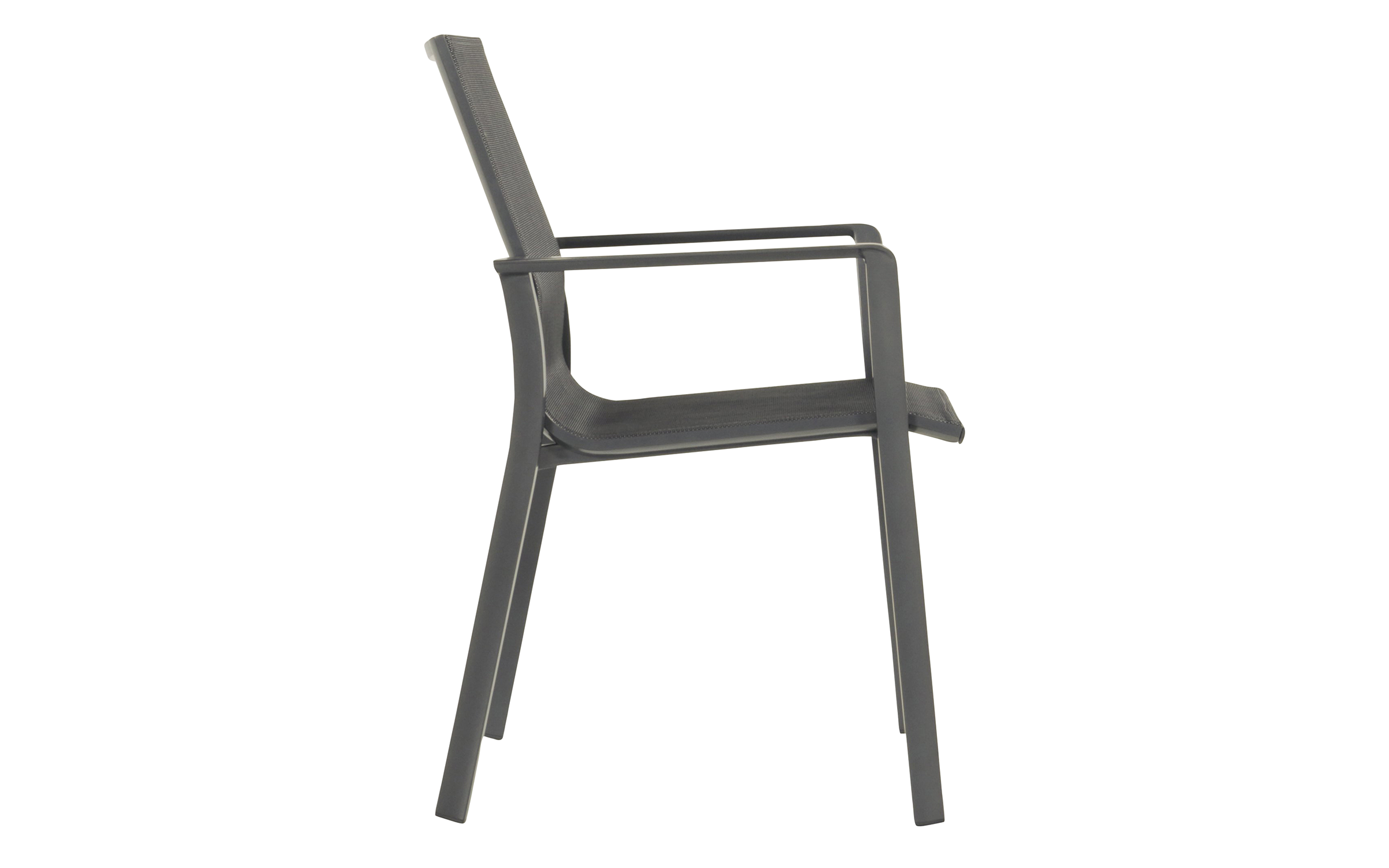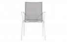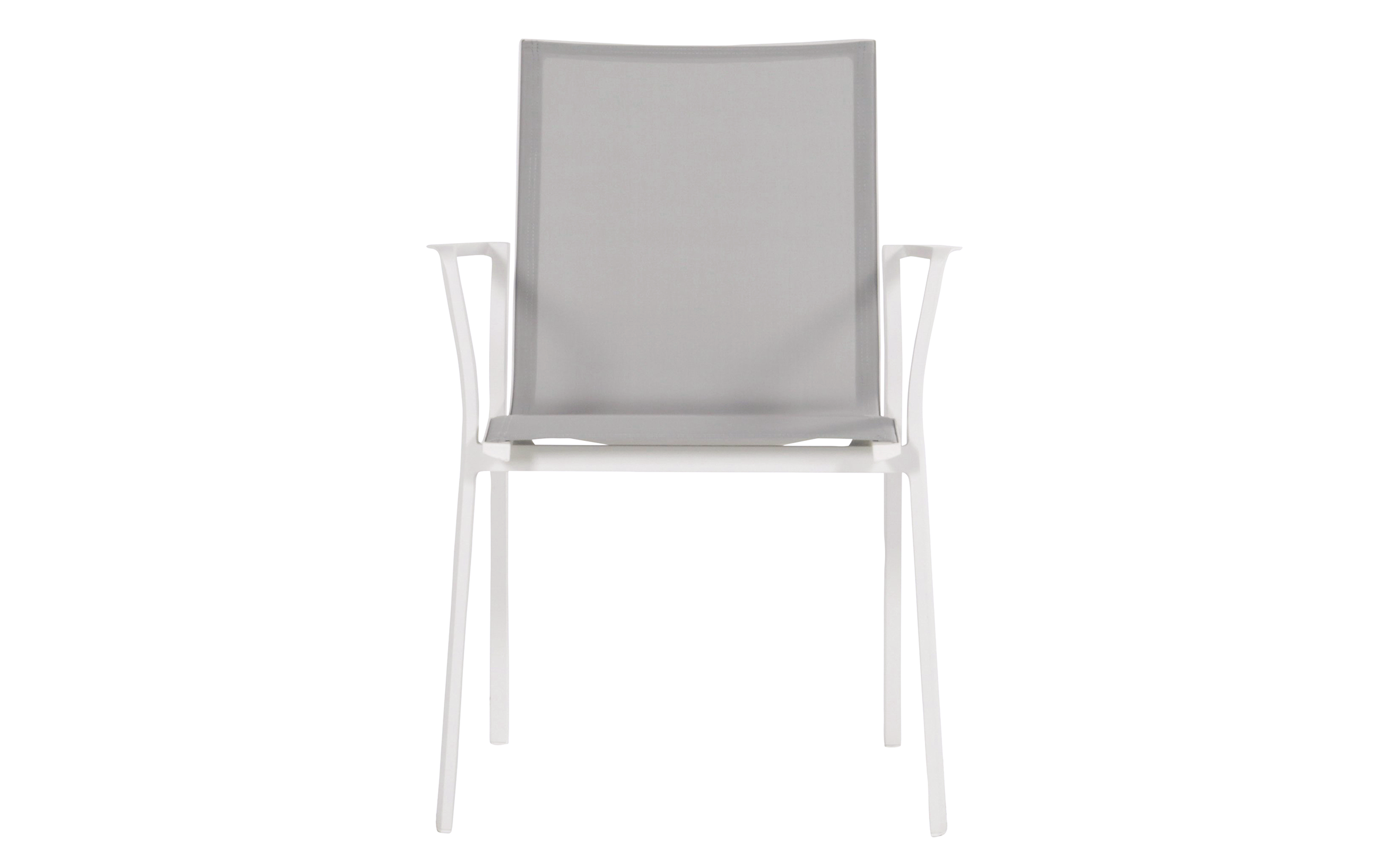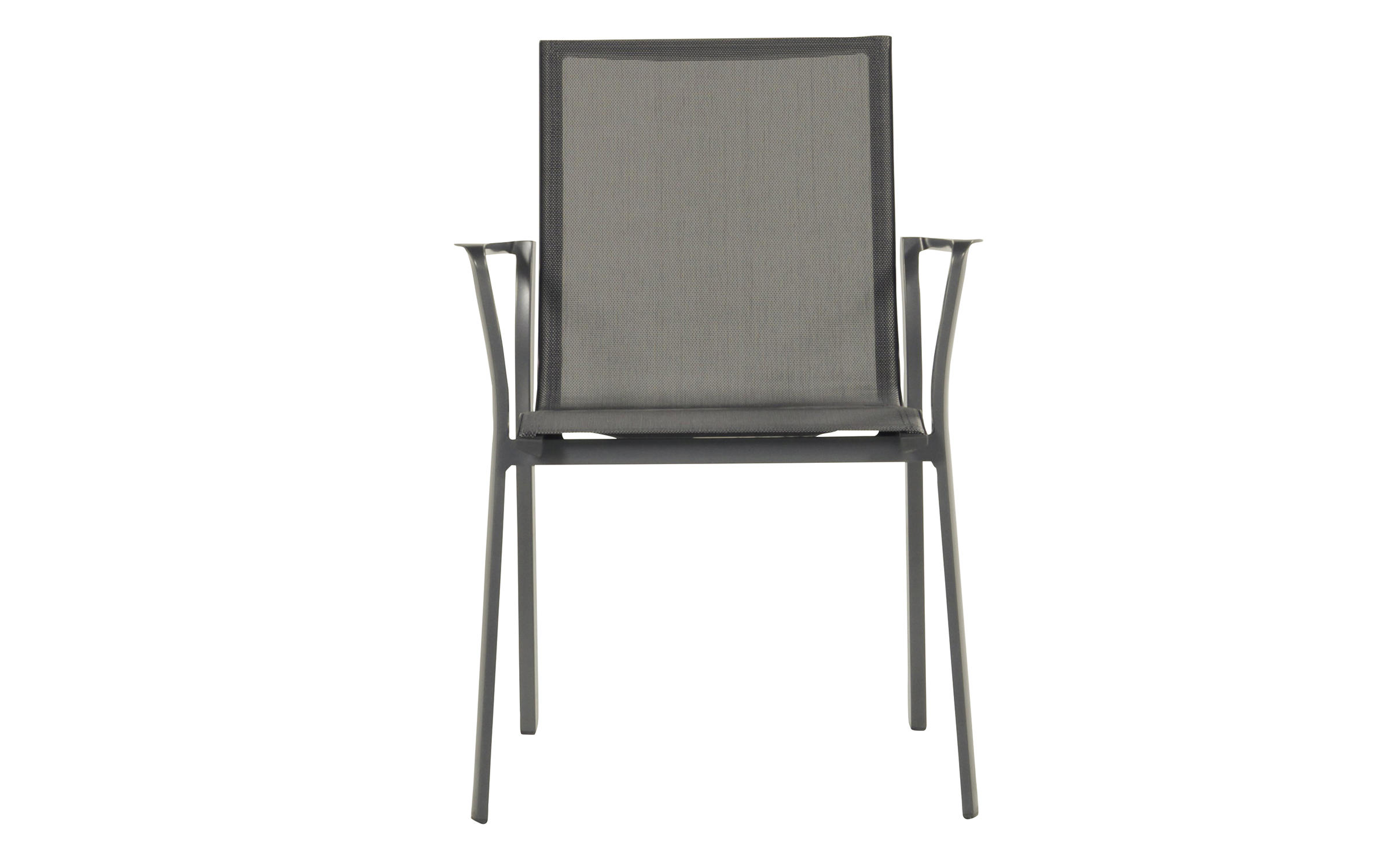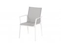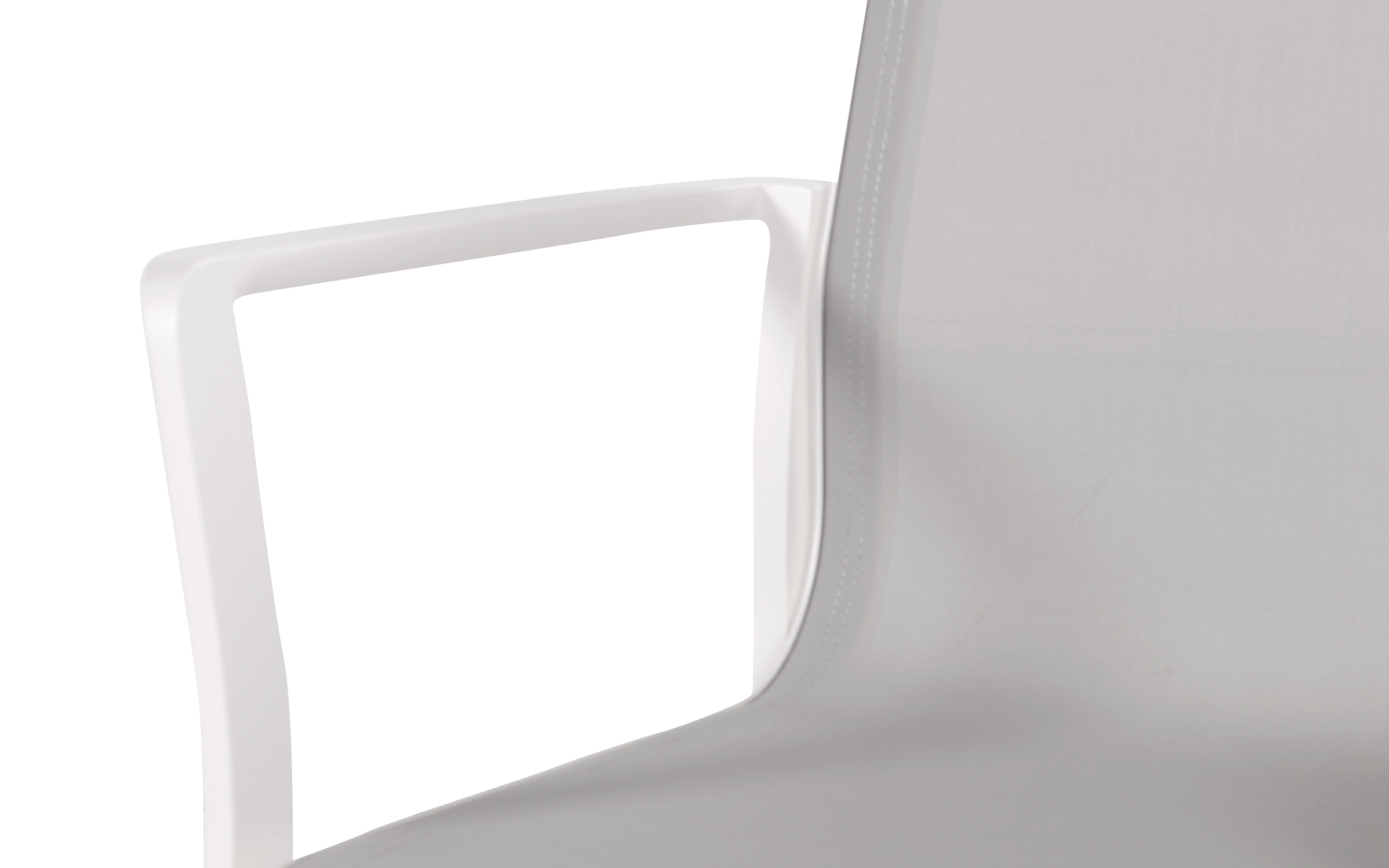 Konstrukcja z aluminium, siedzisko i oparcie z tekstyliny, podłokietniki z aluminium. Materiały odporne na wilgoć, promieniowanie UV i zabrudzenia. Łatwe w pielęgnacji, nie wymagają impregnacji.