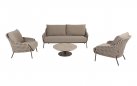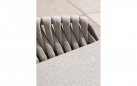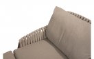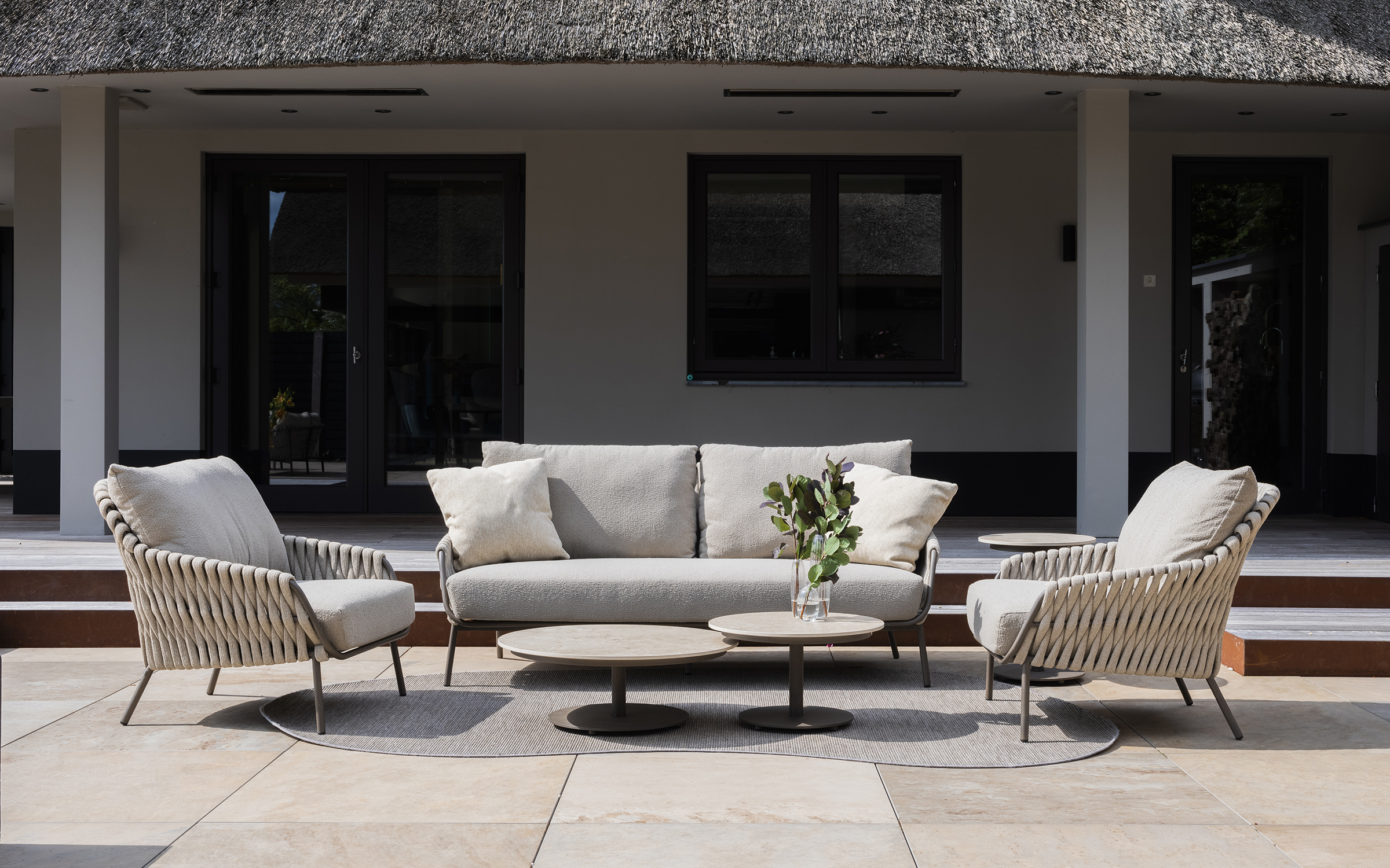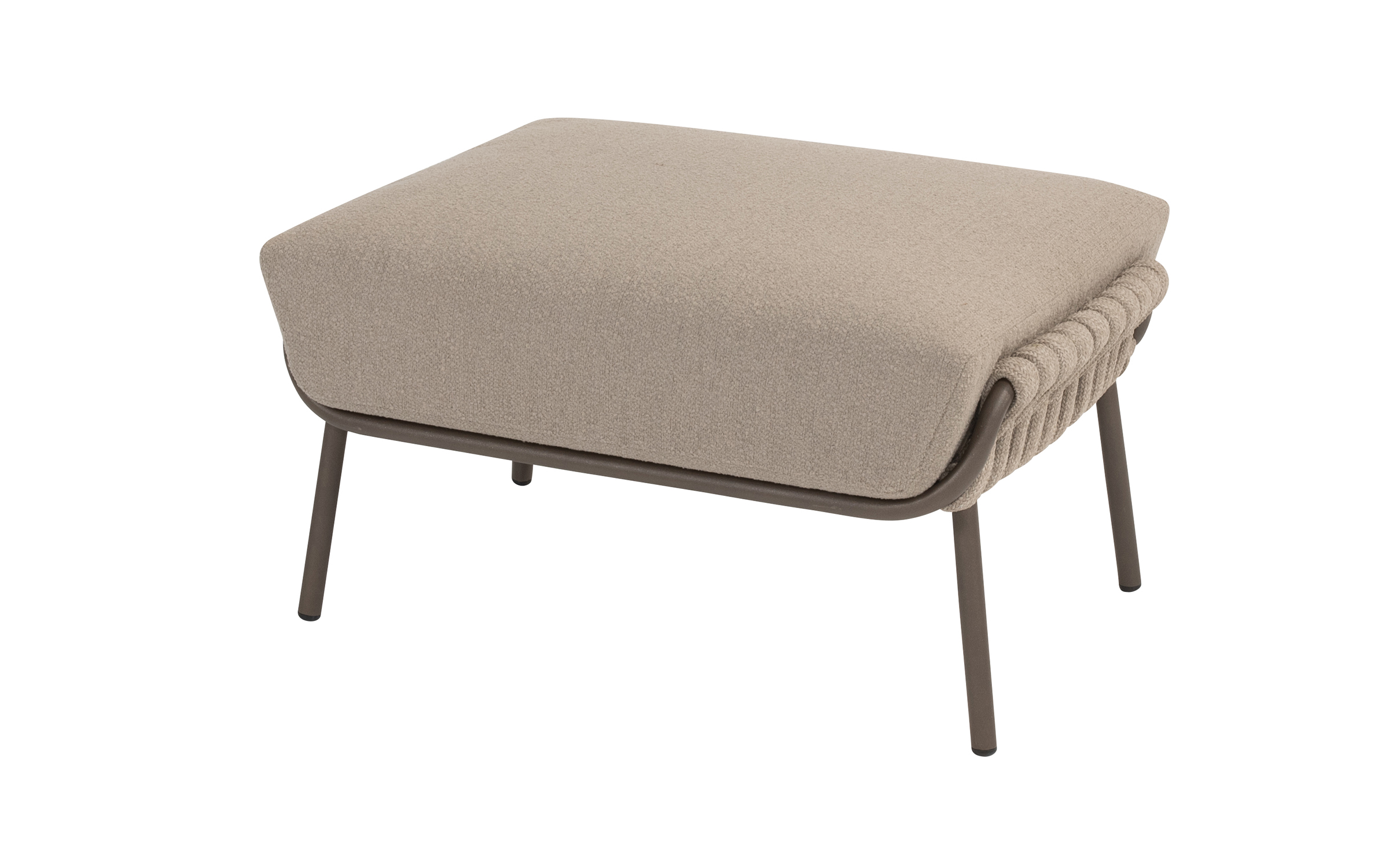 Konstrukcja wykonana ze stali nierdzewnej malowanej proszkowo na kolor brązowy (Terre). Materiał plecionki to pasy o zamkniętym profilu z wkładem z pianki szybkoschnącej, wykonane z włókien polipropylenowych odpornych na warunki atmosferyczne. Poduszki odporne na pogodę, z pianką pozwalającą wodzie przepływać, zachowując pierwotny kształt. Zdejmowane poszewki Bouclé z włókien odpornych na UV i wodę.