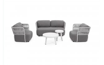 Elegancki fotel ogrodowe o aluminiowej konstrukcji, oplocie z pięknych pasów polipropylenowych i rzucających się w oczy grubych poduszkach.