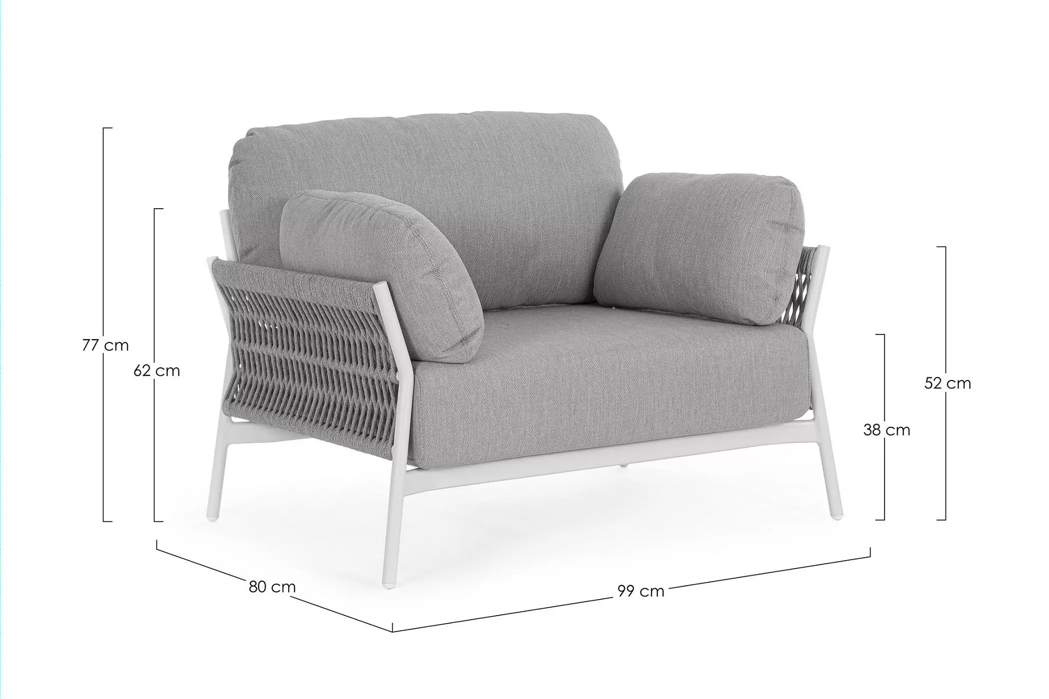 Szerokość 99 cm / Głębokość 80 cm / Wysokość 77 cm