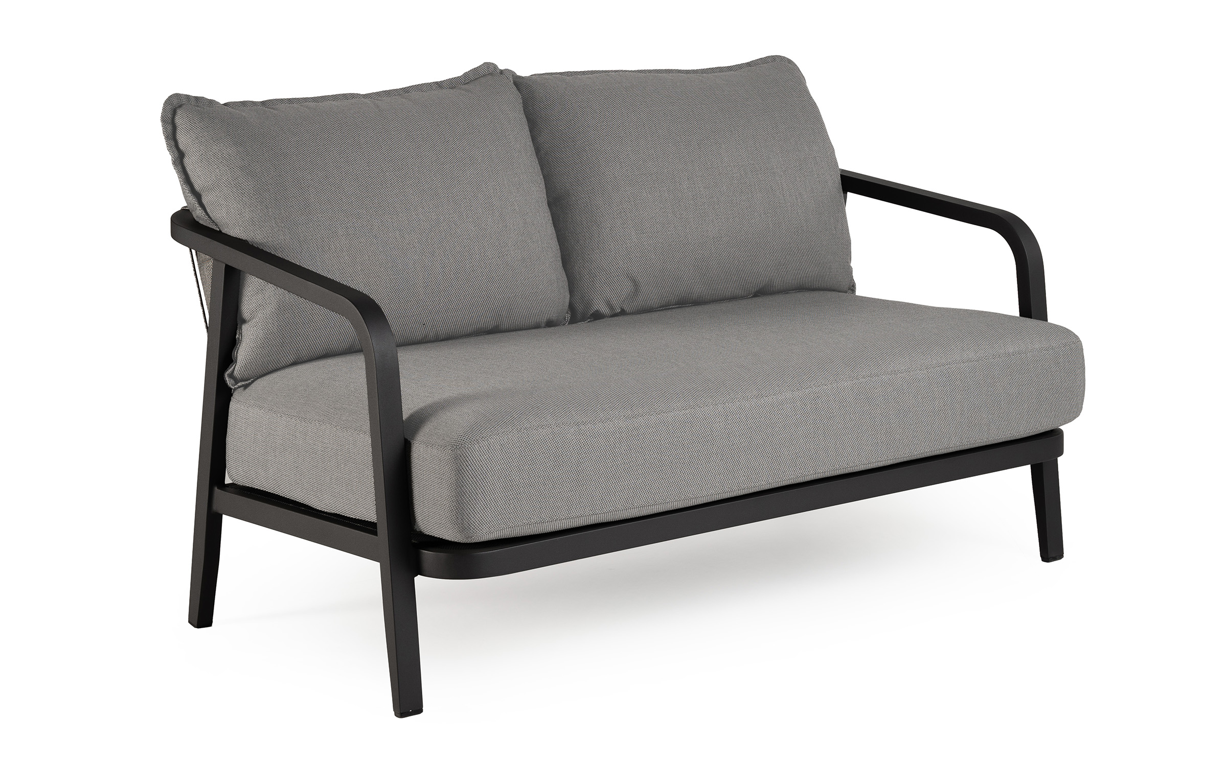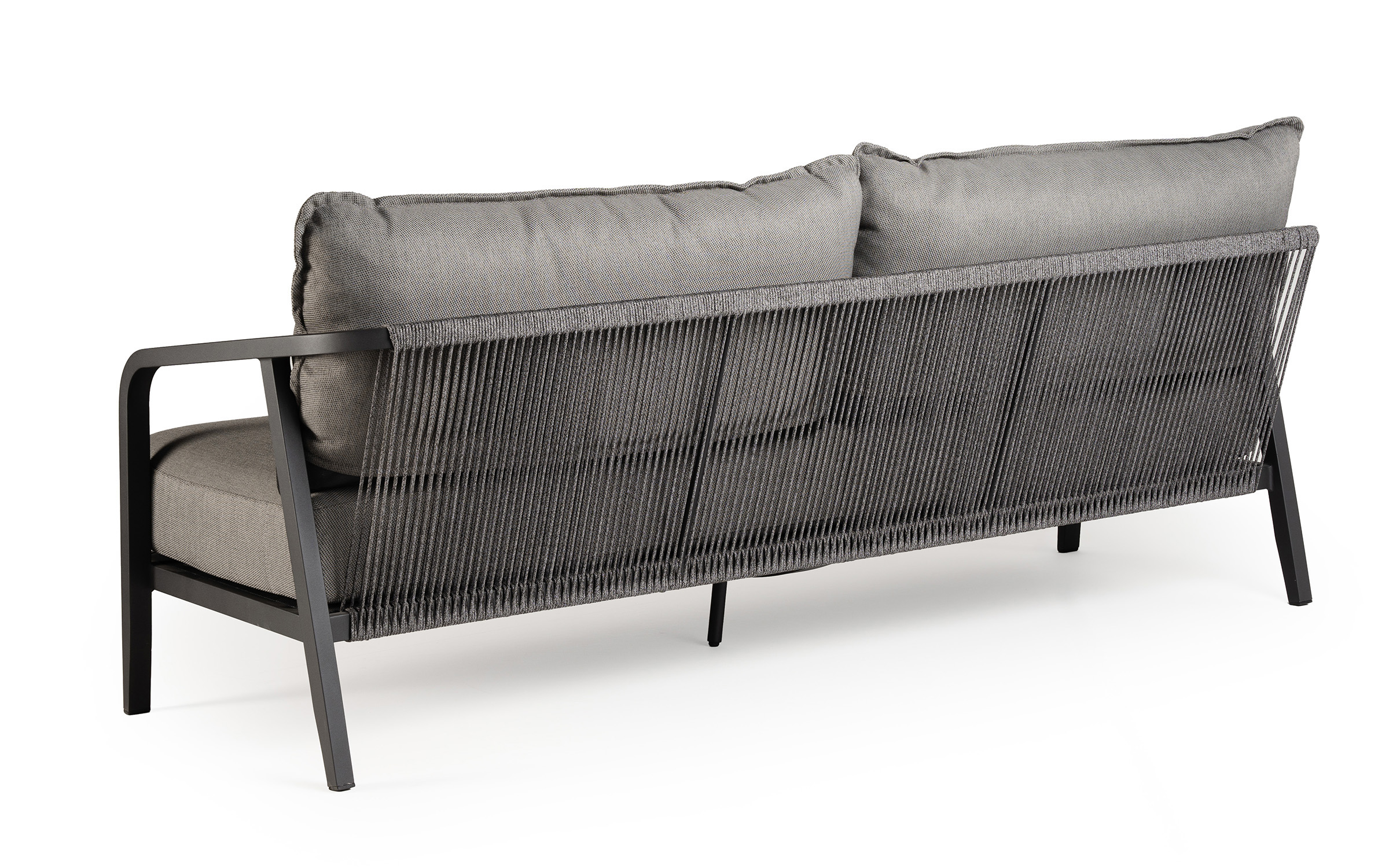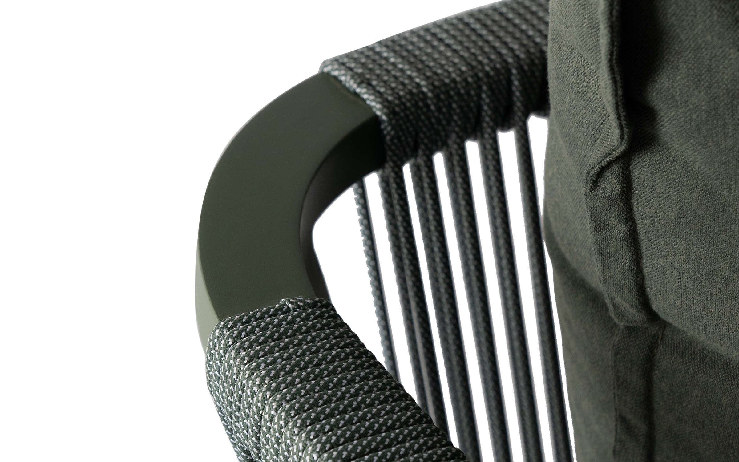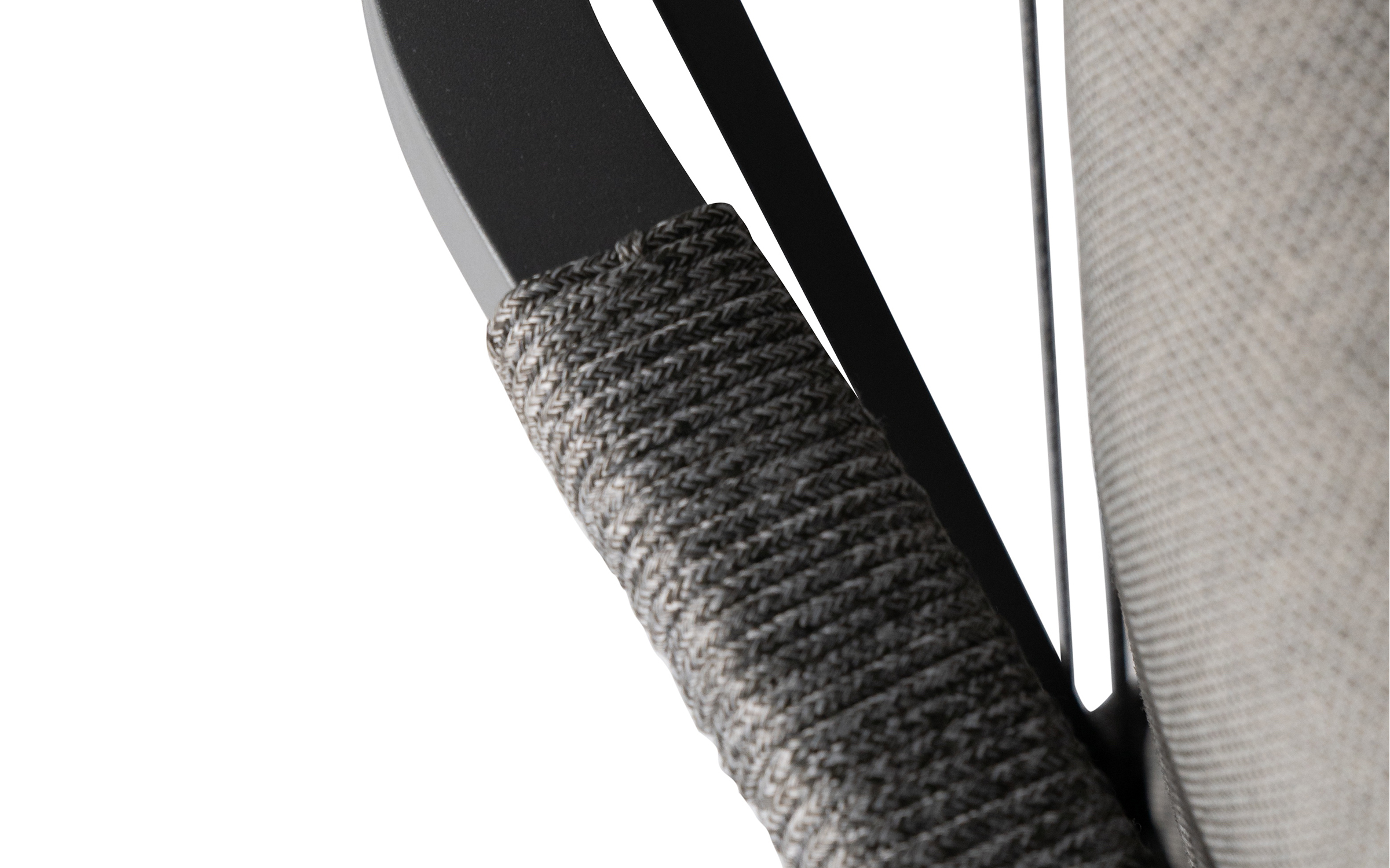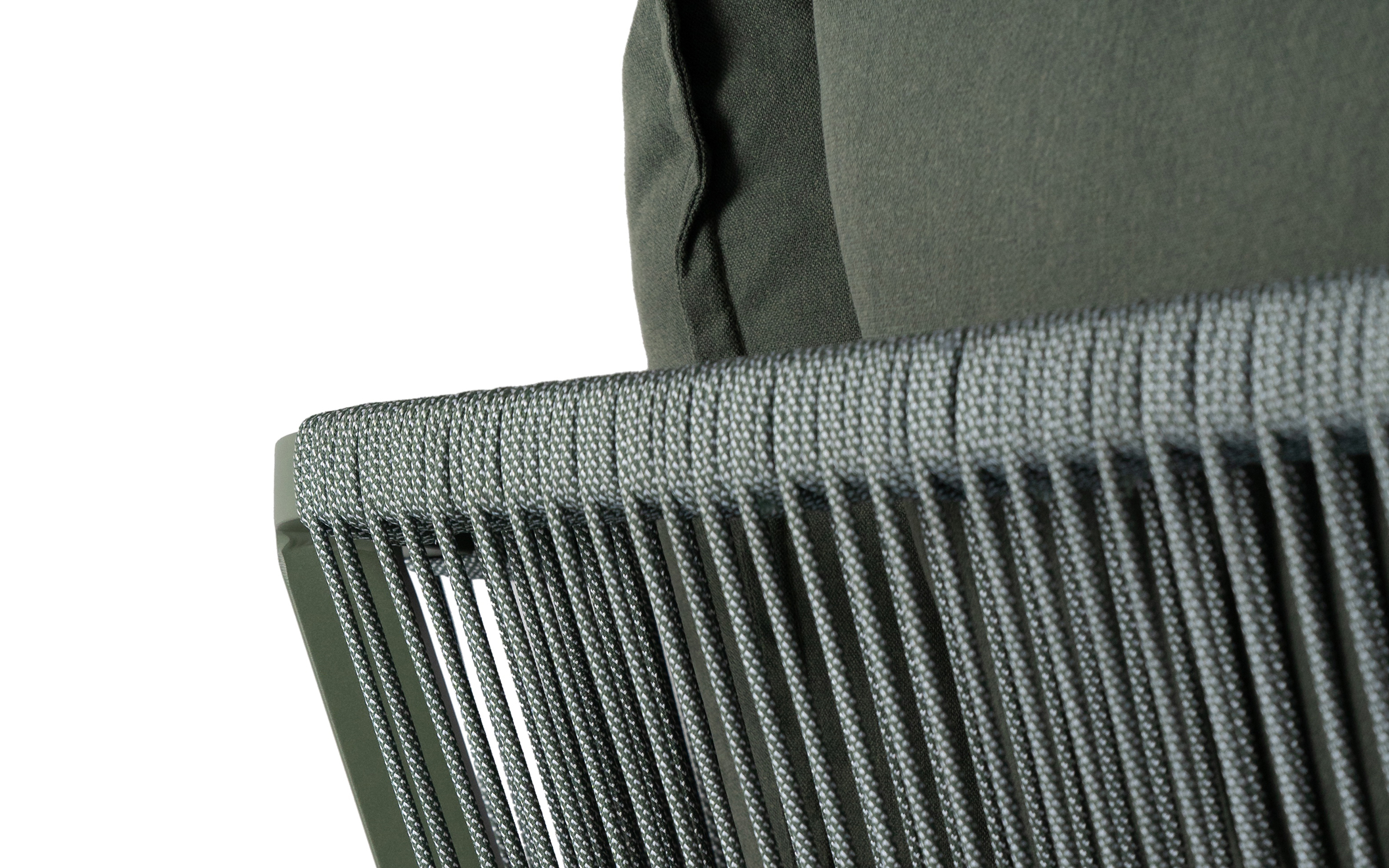Konstrukcja aluminiowa malowana proszkowo. Boki oraz tył oparcia oplecione z odpornej na warunki atmosferyczne liny polipropylenowej.