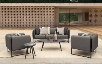 Nowoczesny design kolekcji Pixel przyciąga wzrok. Fotel posiada niezdejmowalne wodoodporne poduszki na siedziskach oraz bocznych obiciach z materiału Olefin.