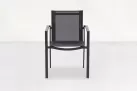Krzesło ogrodowe o konstrukcji aluminiowej z siedziskiem przechodzącym płynnie w oparcie z tekstyliny. Konstrukcja fotela umożliwia sztaplowanie. Do fotela można dokupić poduszki na siedzisko i oparcie z materiału AllWeather.