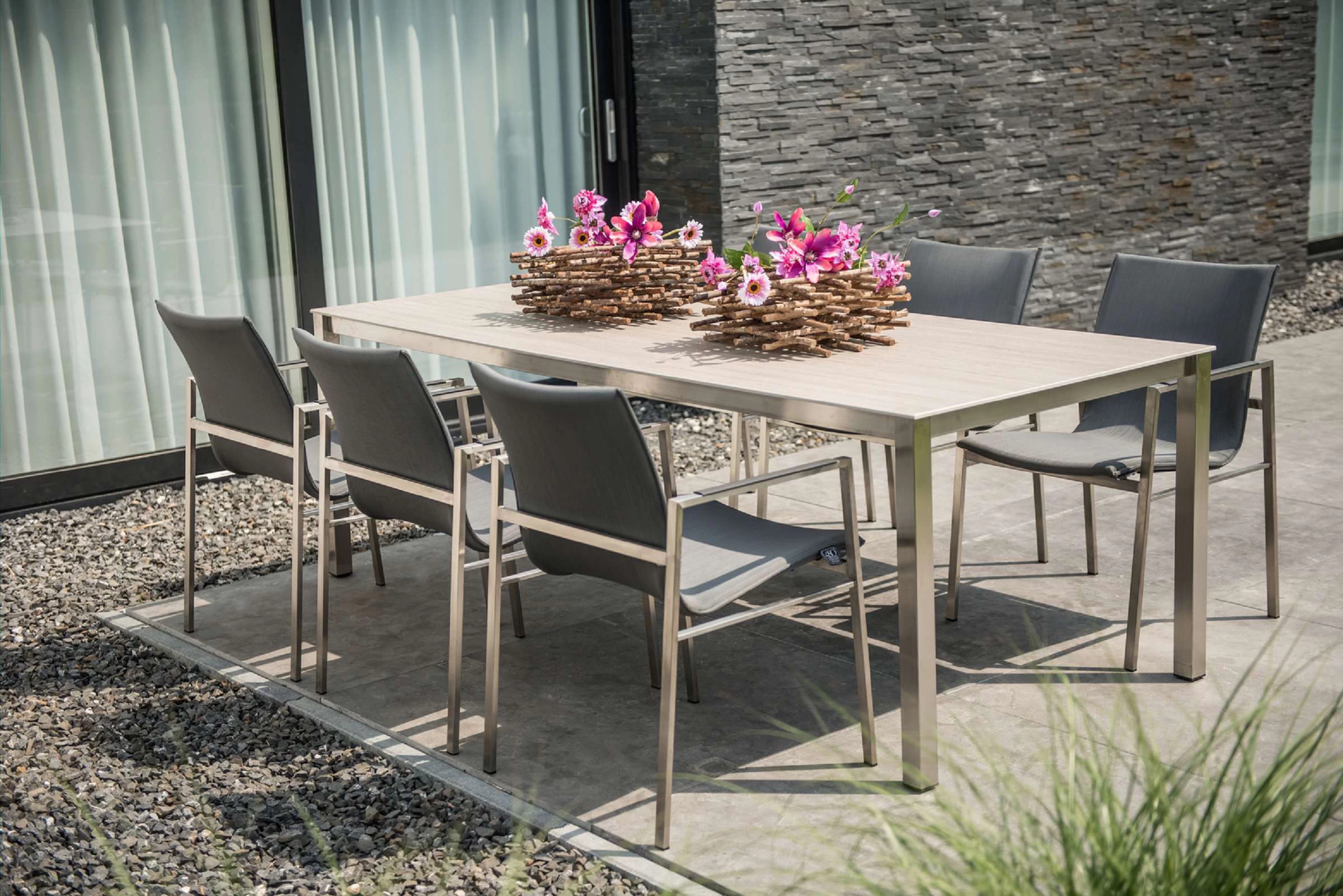 Krzesło Resort to wyjątkowy projekt autorstwa Hugo de Ruiter. Konstrukcja jest ergonomiczna. Podłokietniki ozdobione aluminiowymi paskami. Krzesło wygląda dobrze w każdym ogrodzie, można go układać w stos i łatwo go przechowywać lub przenosić.