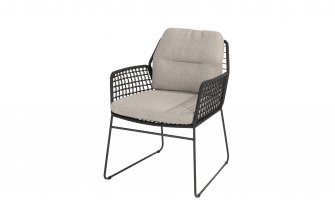 Fotel wypoczynkowy Rhodes od Taste by 4 Seasons to jednocześnie luksusowe niskie krzesło stołowe, które doskonale łączy styl i wygodę. Pięknie zaprojektowana rama ze stali nierdzewnej z trwałą plecionką z liny w kolorze antracytowym zapewnia nowoczesną, solidną podstawę.