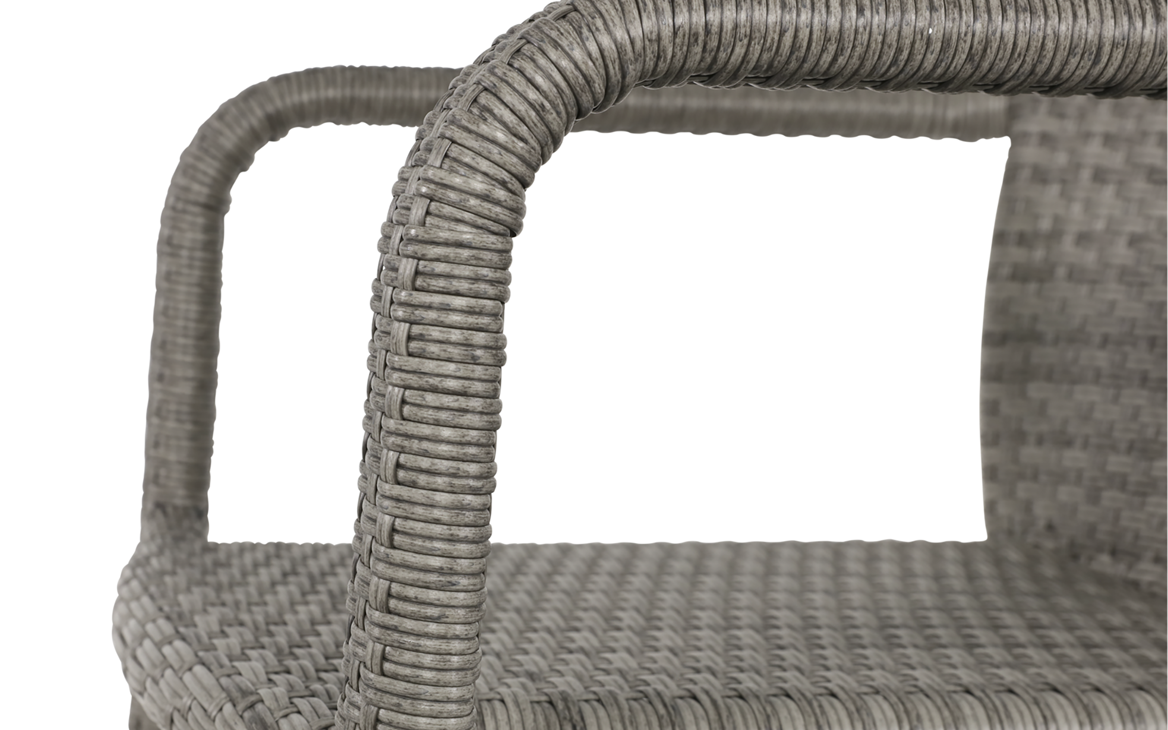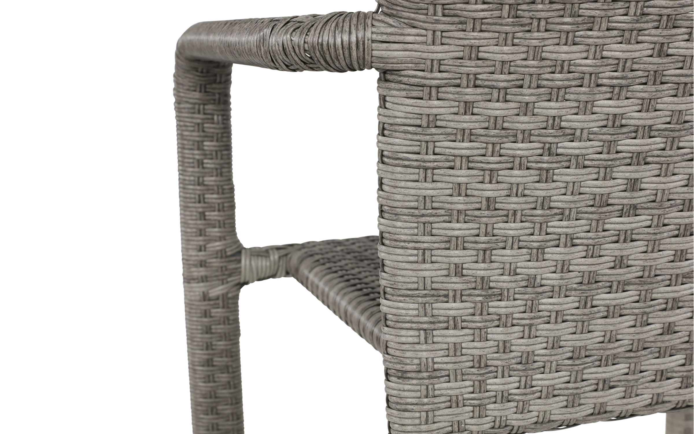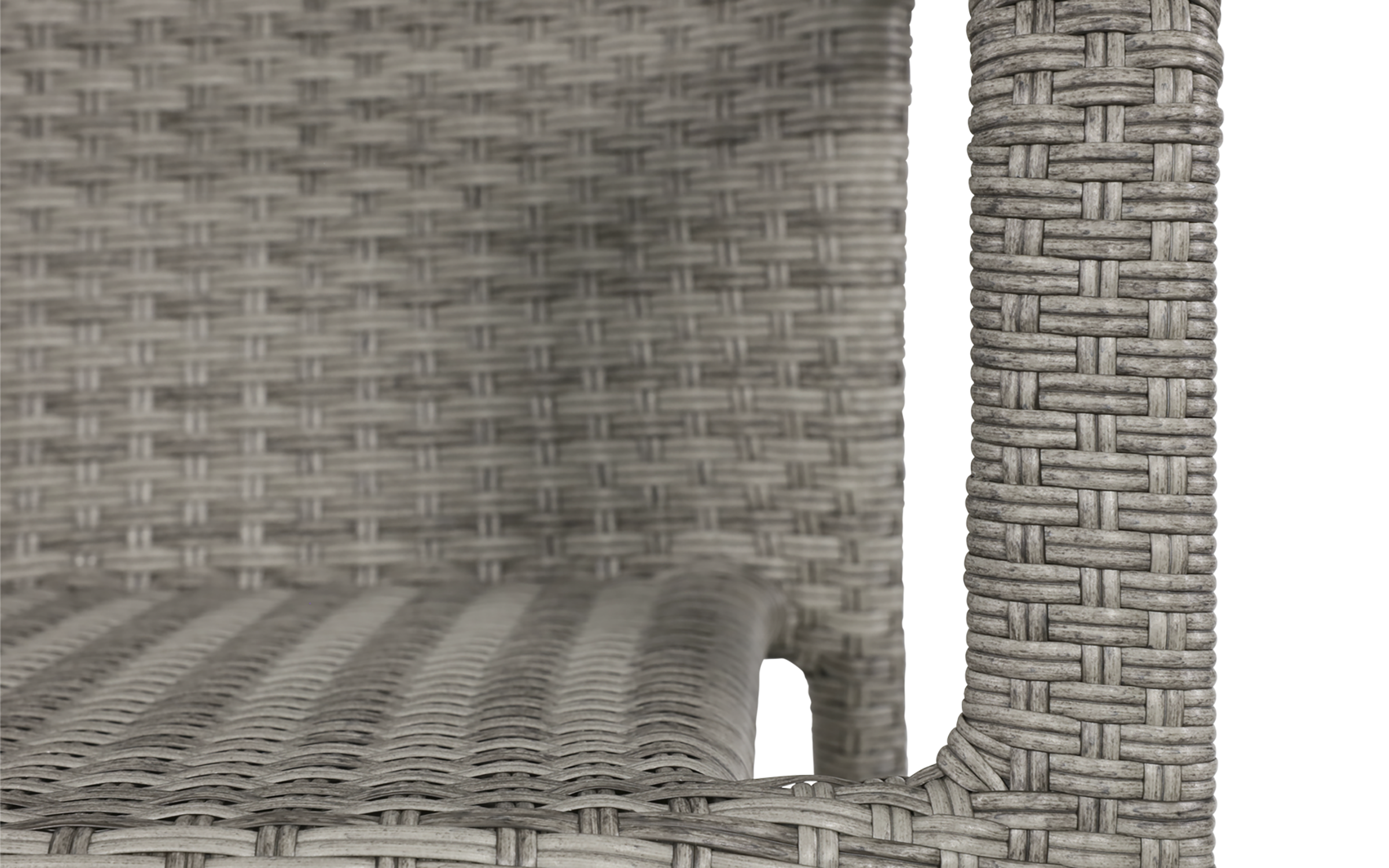 Siedzisko i oparcie: technorattan szaro‑brązowy dwużyłowy, odporny na warunki atmosferyczne.