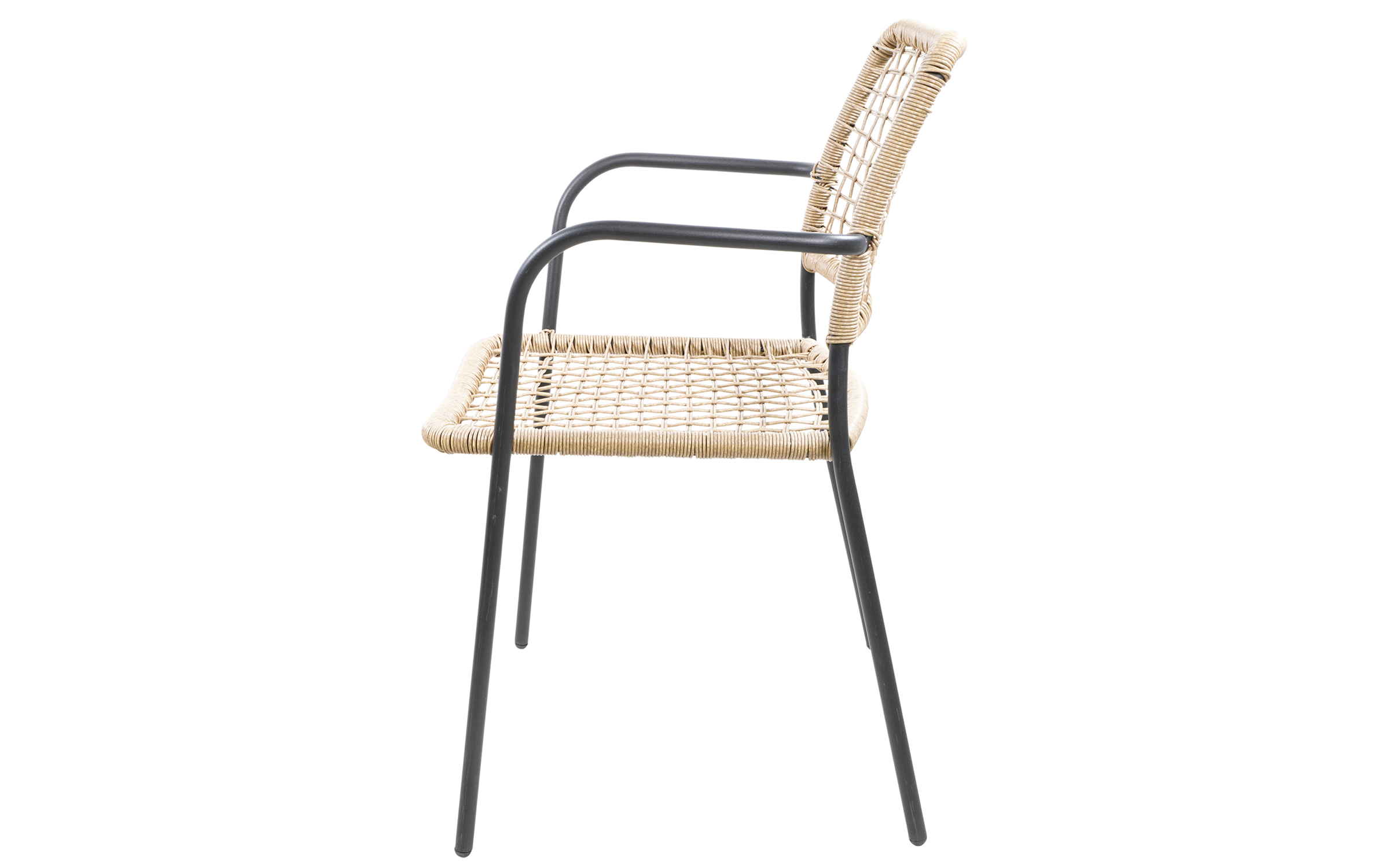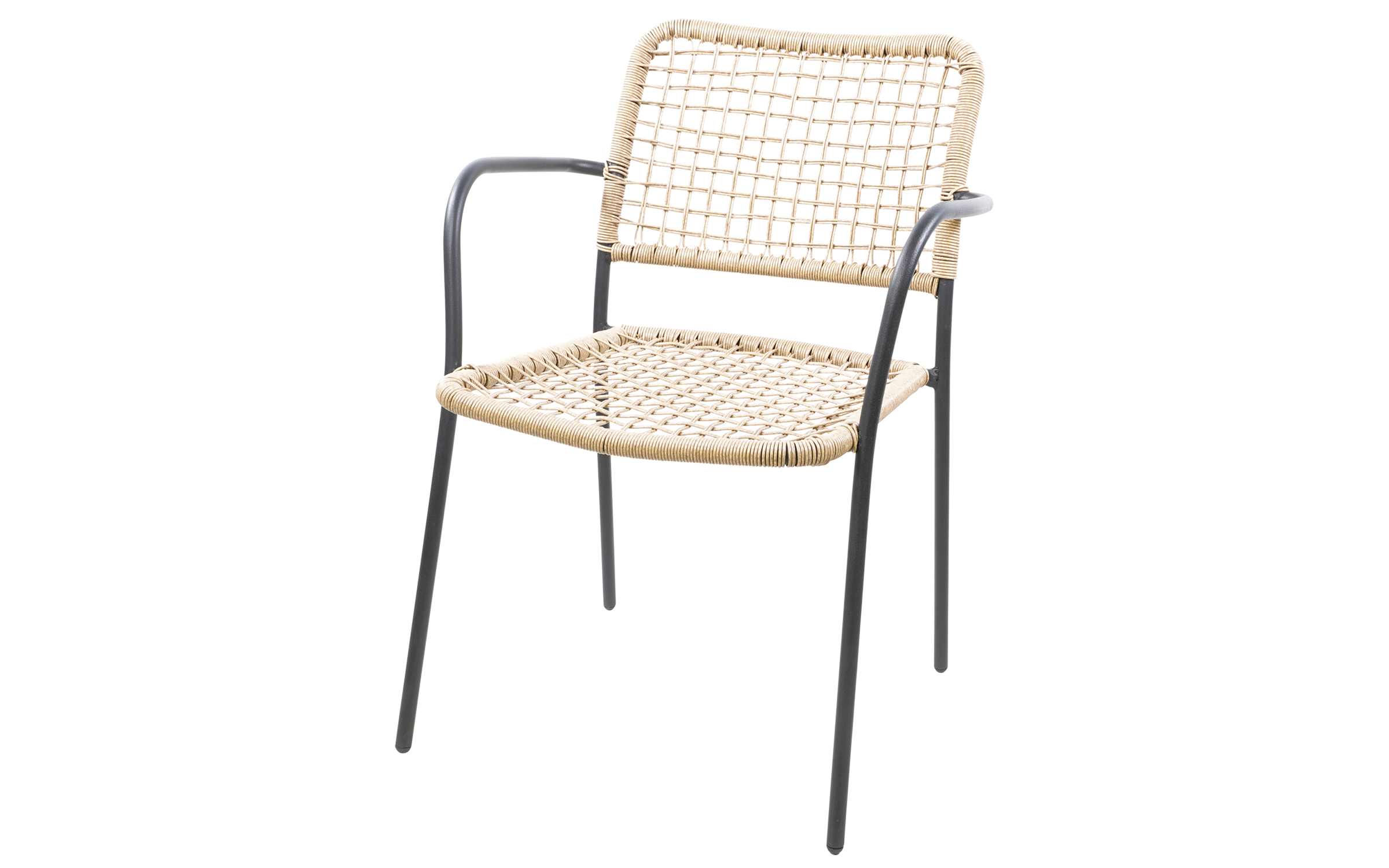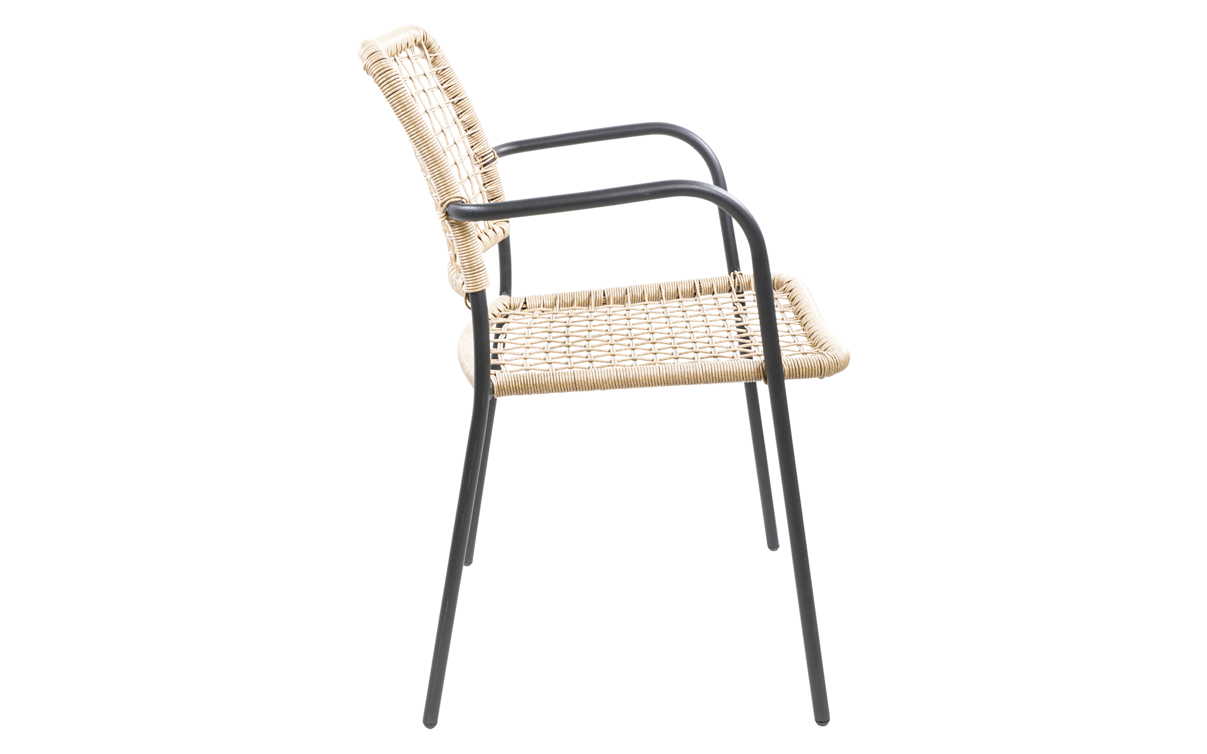 KARA to stylowe krzesło sztaplowane, które łączy elegancję technorattanu z solidnością stalowej ramy. Idealne na taras, balkon czy ogród – zapewnia komfort dzięki podłokietnikom i ergonomicznej formie, a jednocześnie jest łatwe w przechowywaniu dzięki możliwości sztaplowania.