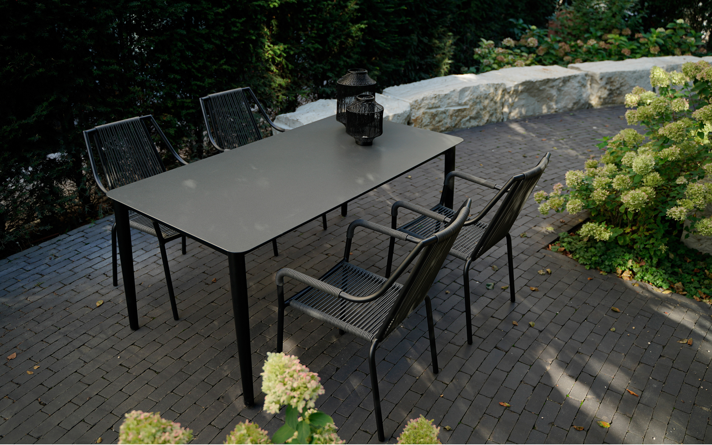 SHELO to eleganckie krzesło sztaplowane, które łączy nowoczesny wygląd technorattanu z solidnością aluminiowej ramy. Idealne na taras, balkon czy ogród – zapewnia komfort dzięki podłokietnikom i ergonomicznej formie, a jednocześnie jest łatwe w przechowywaniu dzięki możliwości sztaplowania.