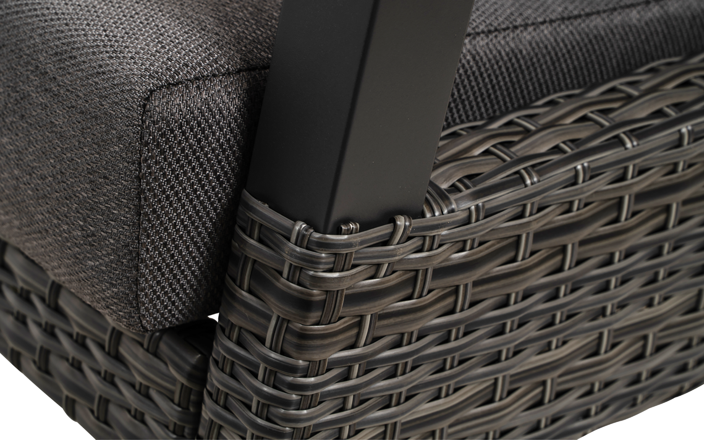Fotel TREVISO to nowoczesny mebel ogrodowy, który od razu przyciąga uwagę swoim designem i funkcjonalnością. Oparcie można regulować płynnie dzięki mechanizmowi gazowemu, co pozwala dopasować pozycję do indywidualnych potrzeb – od wygodnego siedzenia po pełen relaks. Grube poduszki wykonane z tkaniny Olefin są szybkoschnące, odporne na zabrudzenia i promieniowanie UV, a jednocześnie niezwykle komfortowe. Konstrukcja aluminiowa malowana proszkowo w połączeniu z oplotem z technorattanu zapewnia lekkość, trwałość i odporność na warunki atmosferyczne. Treviso to fotel, który łączy wysoką jakość, komfort i elegancki wygląd – idealny do ogrodu, na taras czy patio.