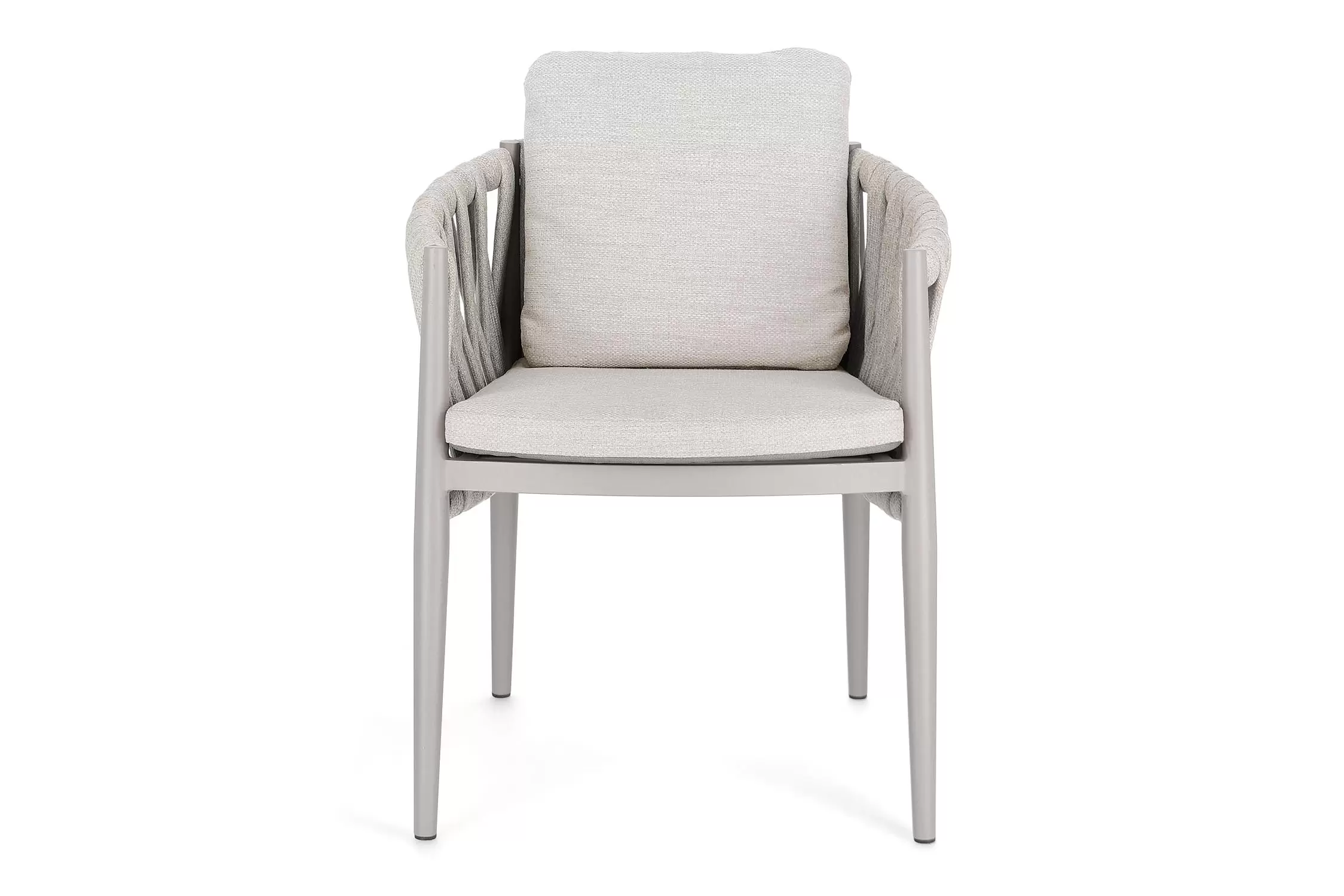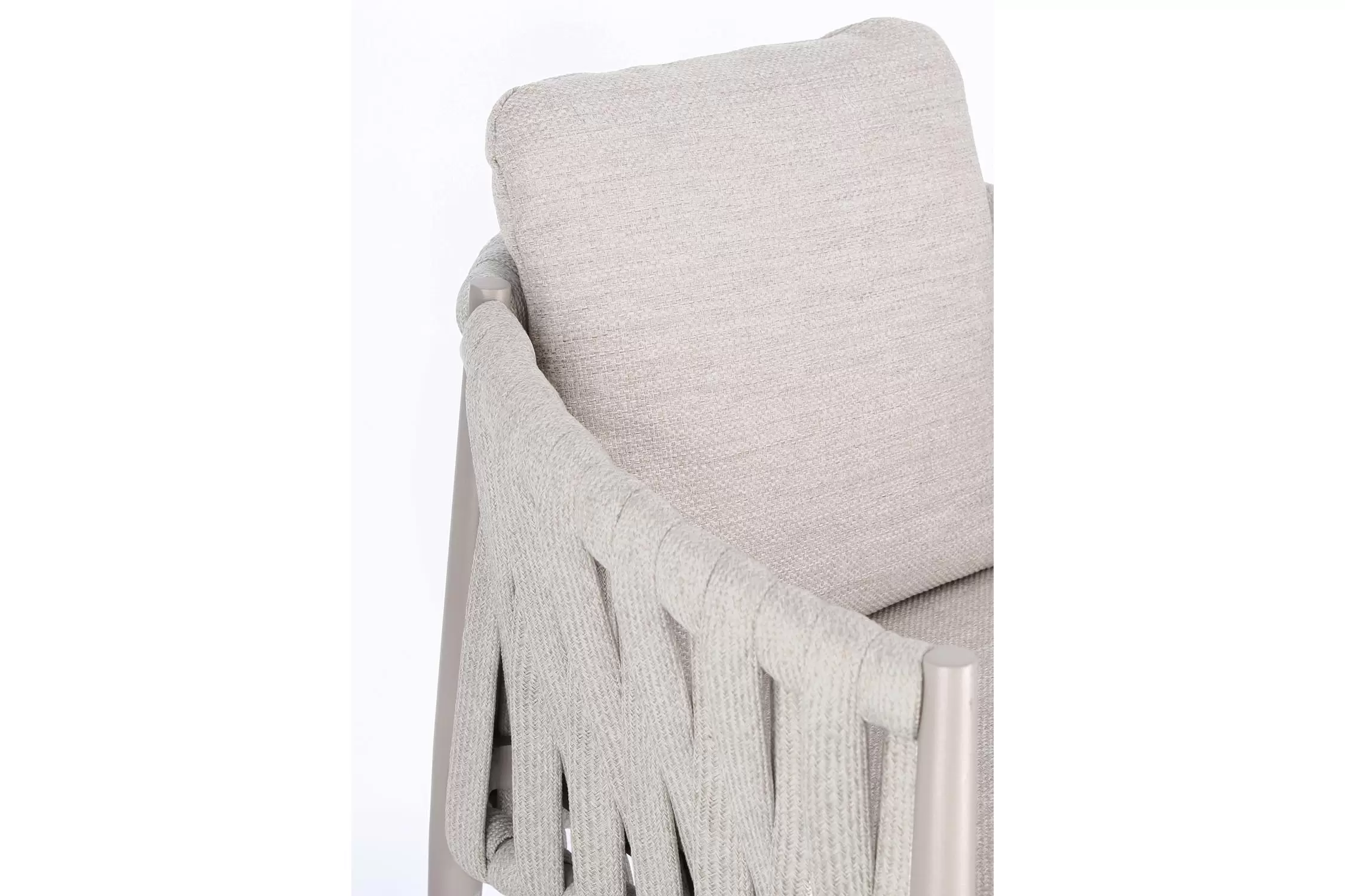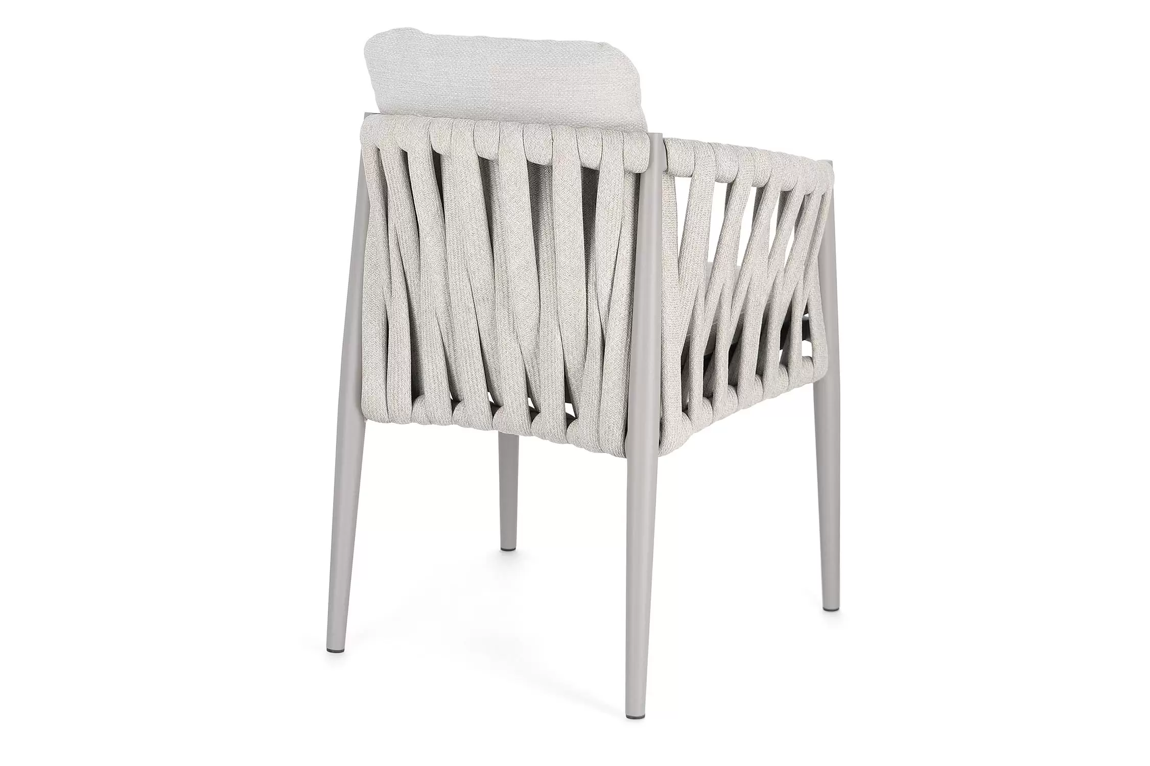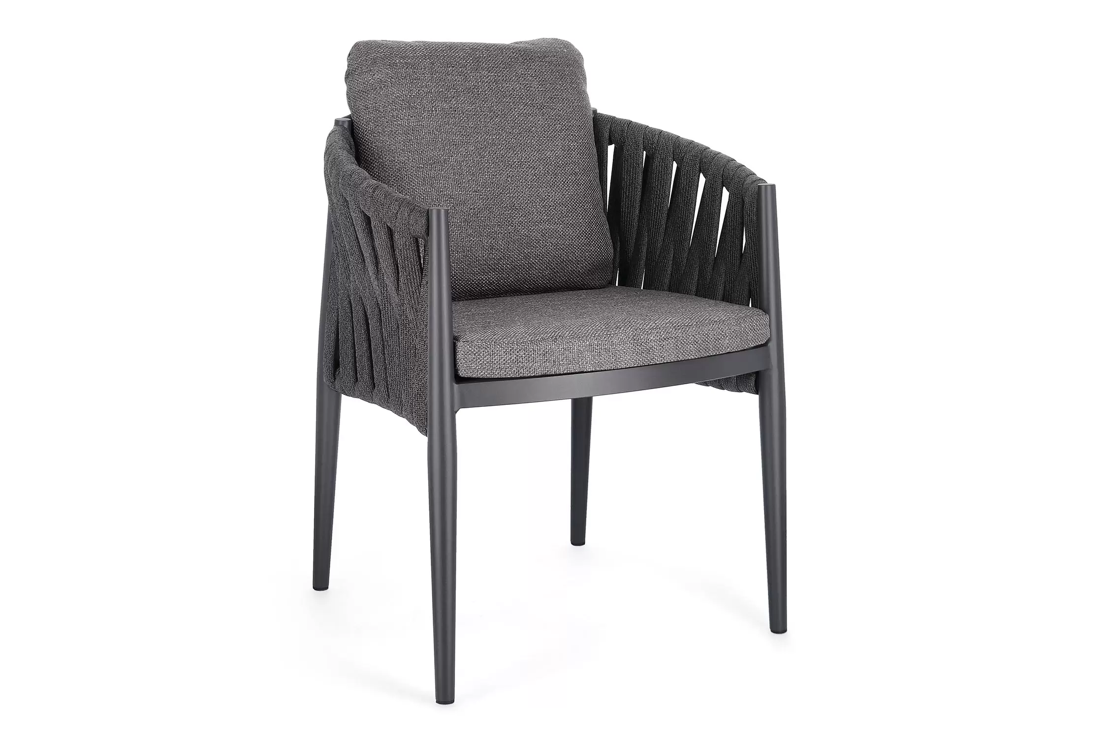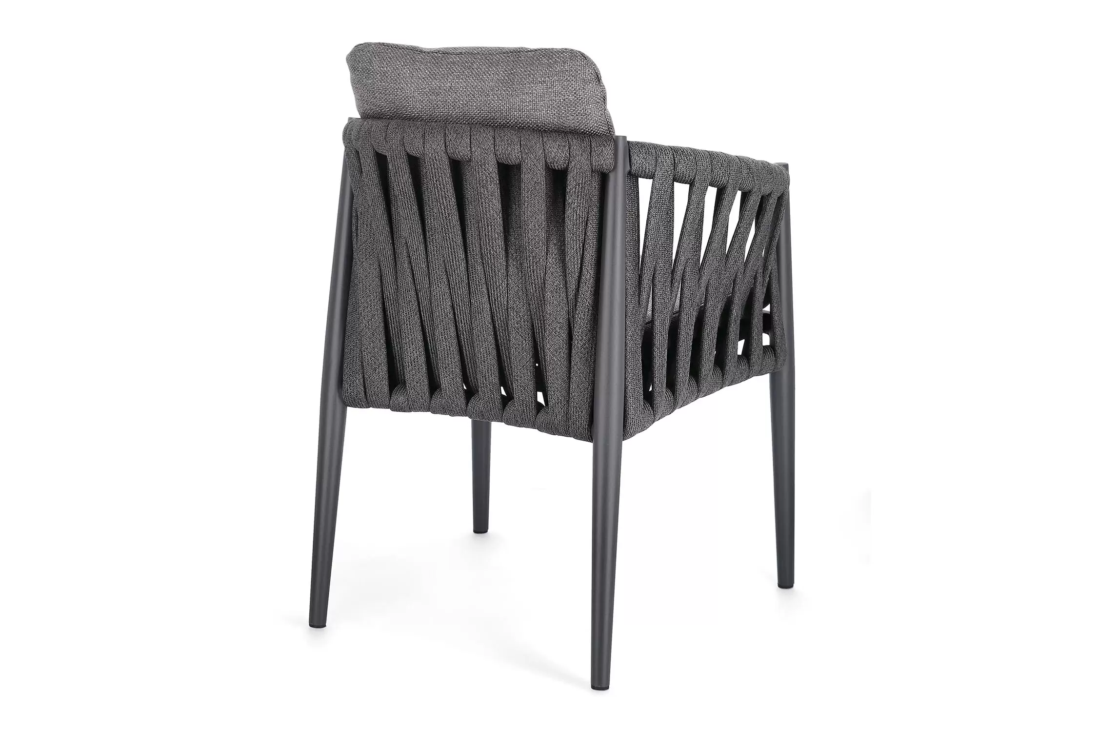 Ekskluzywne krzesło stołowe do użytku na tarasie w oryginalnym i co najważniejsze odpornym na warunki atmosferyczne wykonaniu. Delikatnie wygięte podłokietniki i wygodne oparcie oraz siedzisko w formie miękkich poduszek, zostało wykonane z wodoodpornej tkaniny Olefin. Materiał, która jest barwioną na wskroś tkaniną akrylową odporną na zabrudzenia, jest również odporna na działanie wody i pleśni. Ciekawą formą urozmaicenia budowy krzesła jest zastosowanie warkoczowego splotu po bokach i z tyłu stelaża. Stelaż krzesła, a także nogi wykonano z aluminium w malowaniu proszkowym. Wykorzystano tu system QDF, który jest bardzo odpornym na warunki atmosferyczne wypełnieniem poduch lub siedzisk, z wysokiej jakości szybkoschnącej pianki tapicerskiej Quick Dry Foam o właściwościach antybakteryjnych. Wytrzymałość materiałów, a także odporność na korozję, umożliwiają zastosowanie zarówno w domu jak i na zewnątrz - w ogrodzie lub na tarasie. Meble należy czyścić nie wykorzystując silnych środków chemicznych.