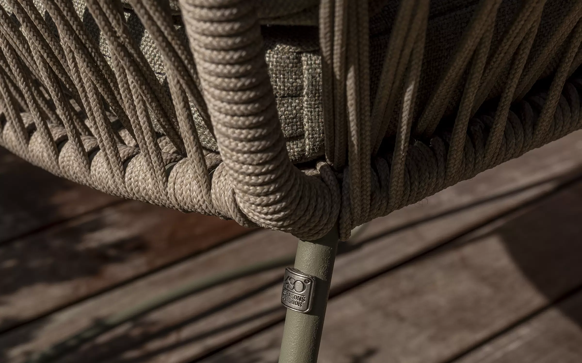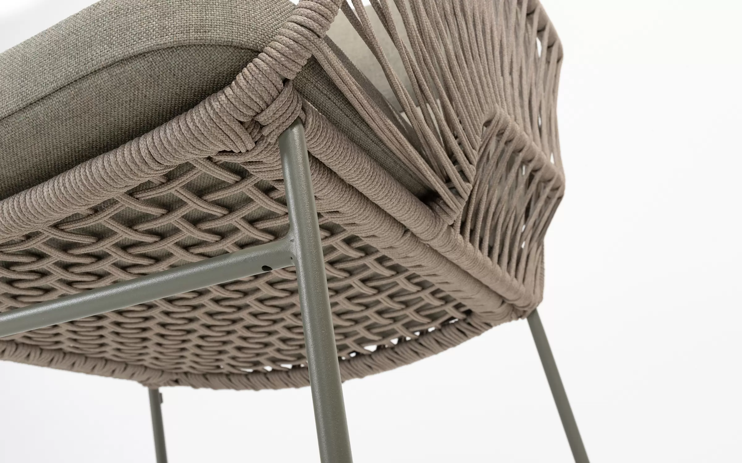 Krzesło składa się z ramy ze stali nierdzewnej malowanej proszkowo oplecionej sznurkiem polipropylenowym odpornym na wpływ warunków atmosferycznych.