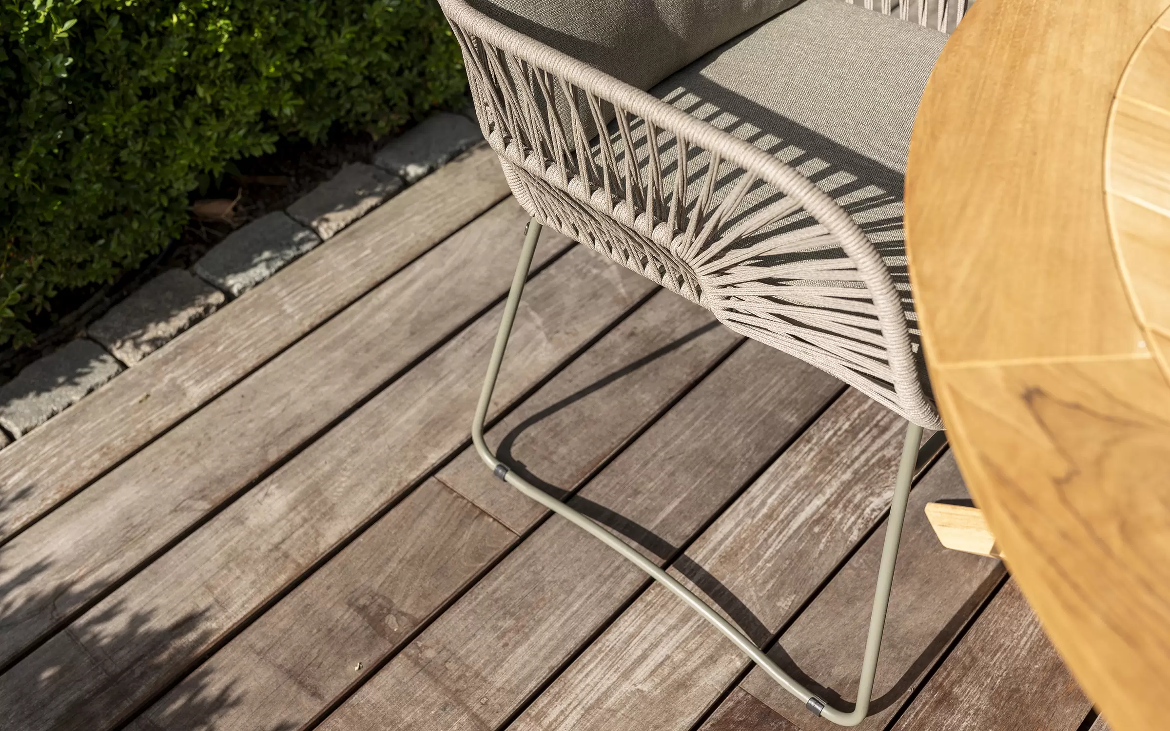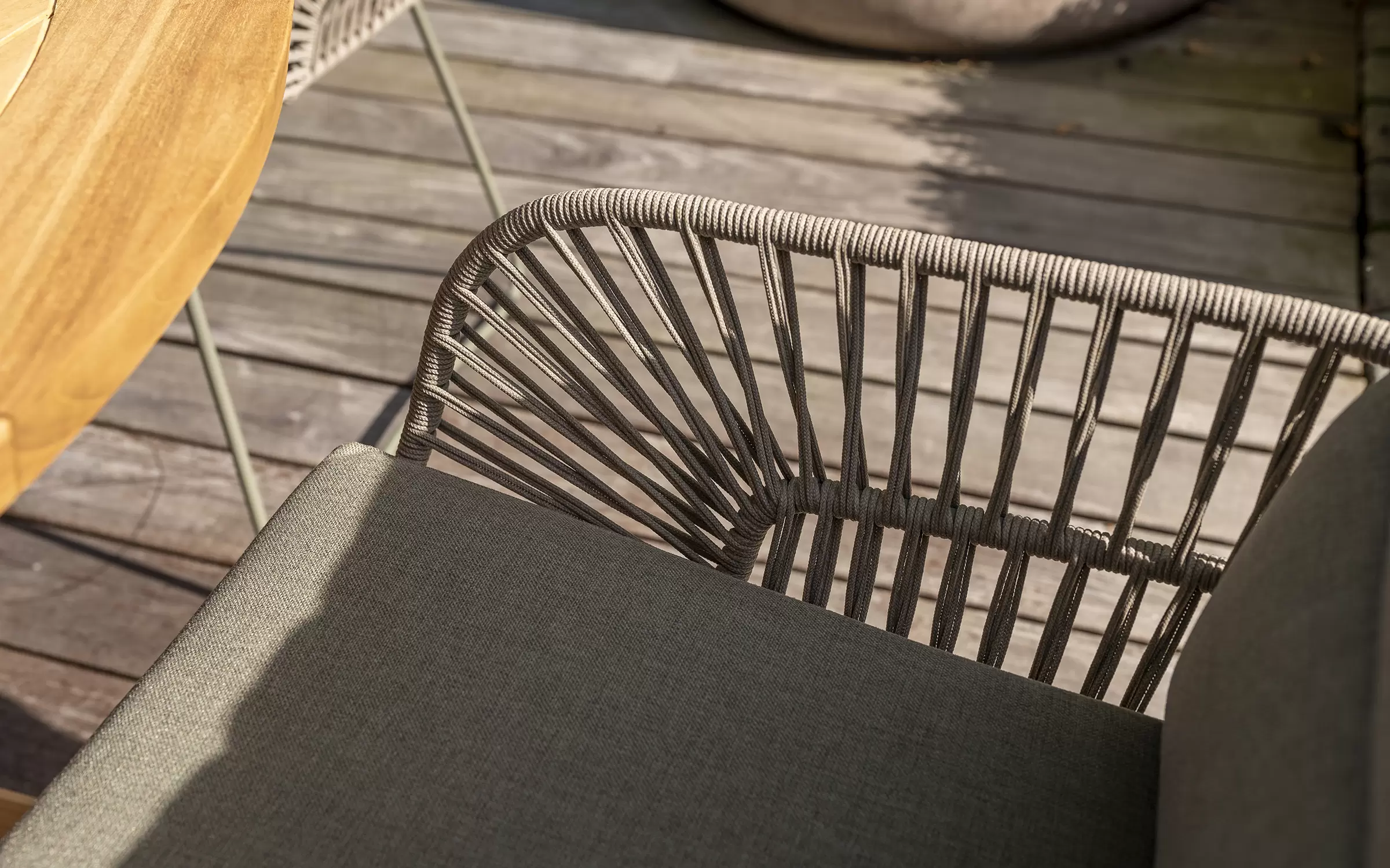 - plecionka ze sznurka nadaje krzesłu naturalny i ciepły wygląd, idealny do relaksu na świeżym powietrzu.