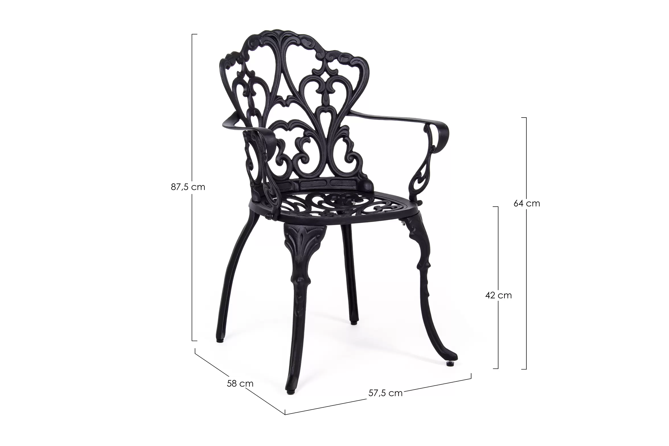 Aluminiowe klasyczne krzesło z odlewanego aluminium.