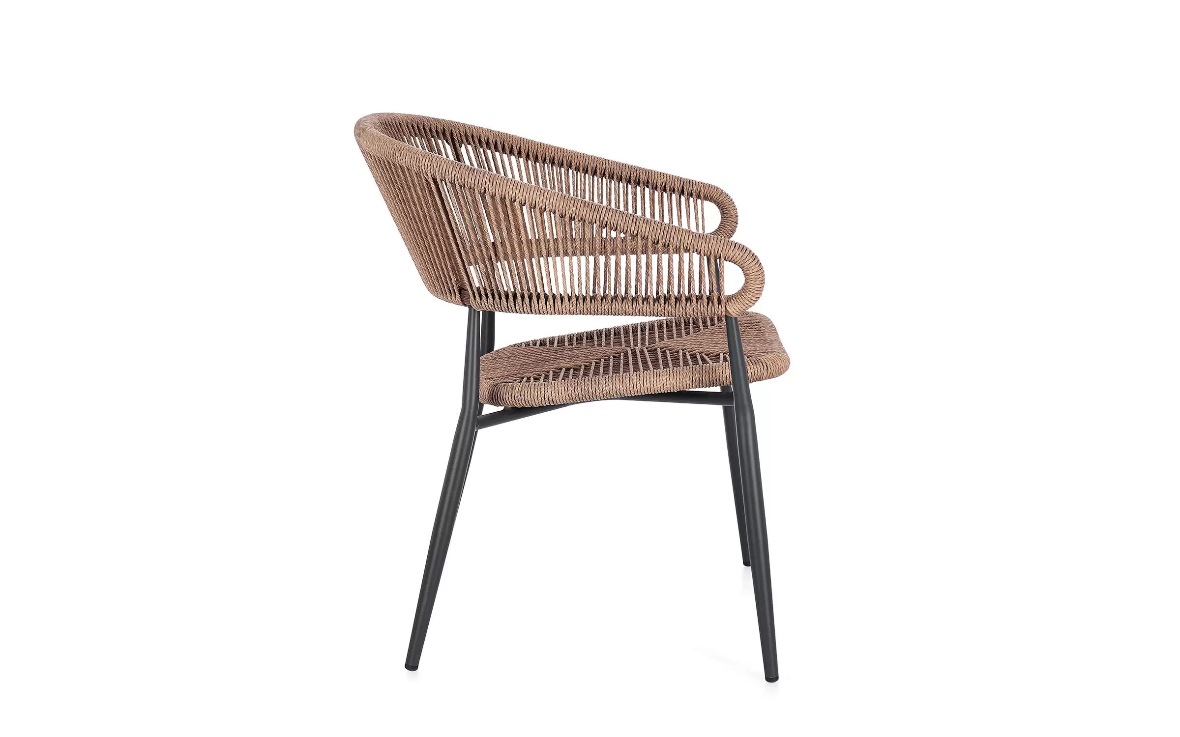 Boki i oparcie oplecione włóknami technorattanowymi skręcanymi.