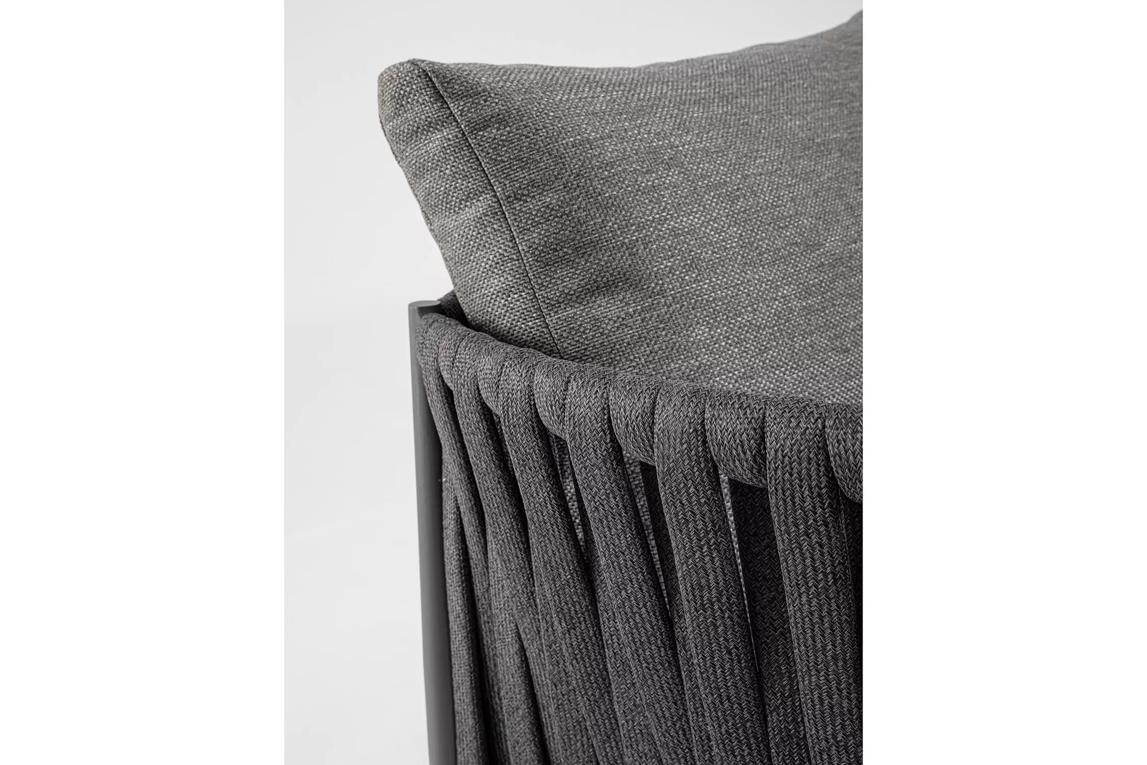 Boki i oparcie oplecione liną tetoronową przyjemną w dotyku z wyplenieniem z polietylenu.