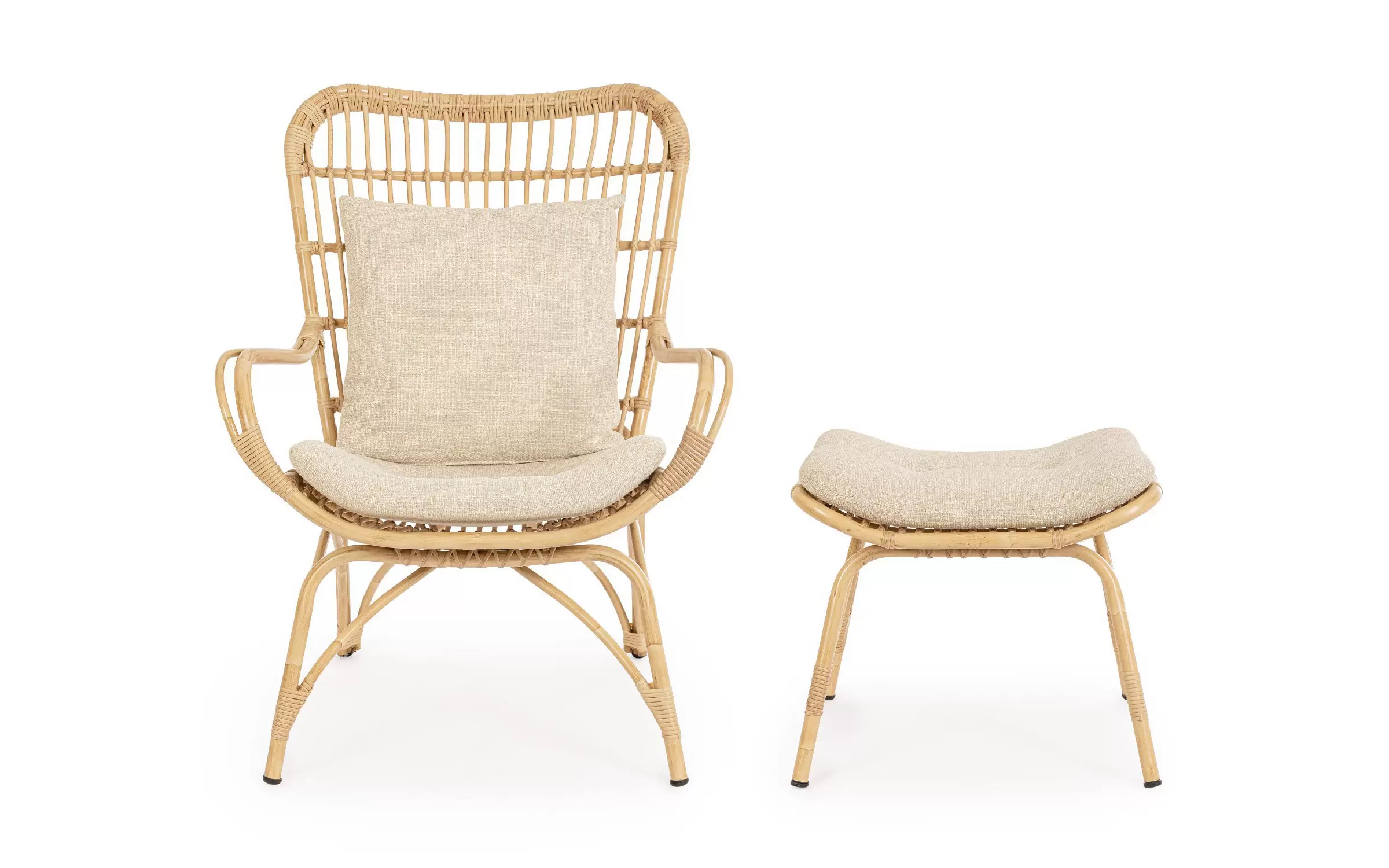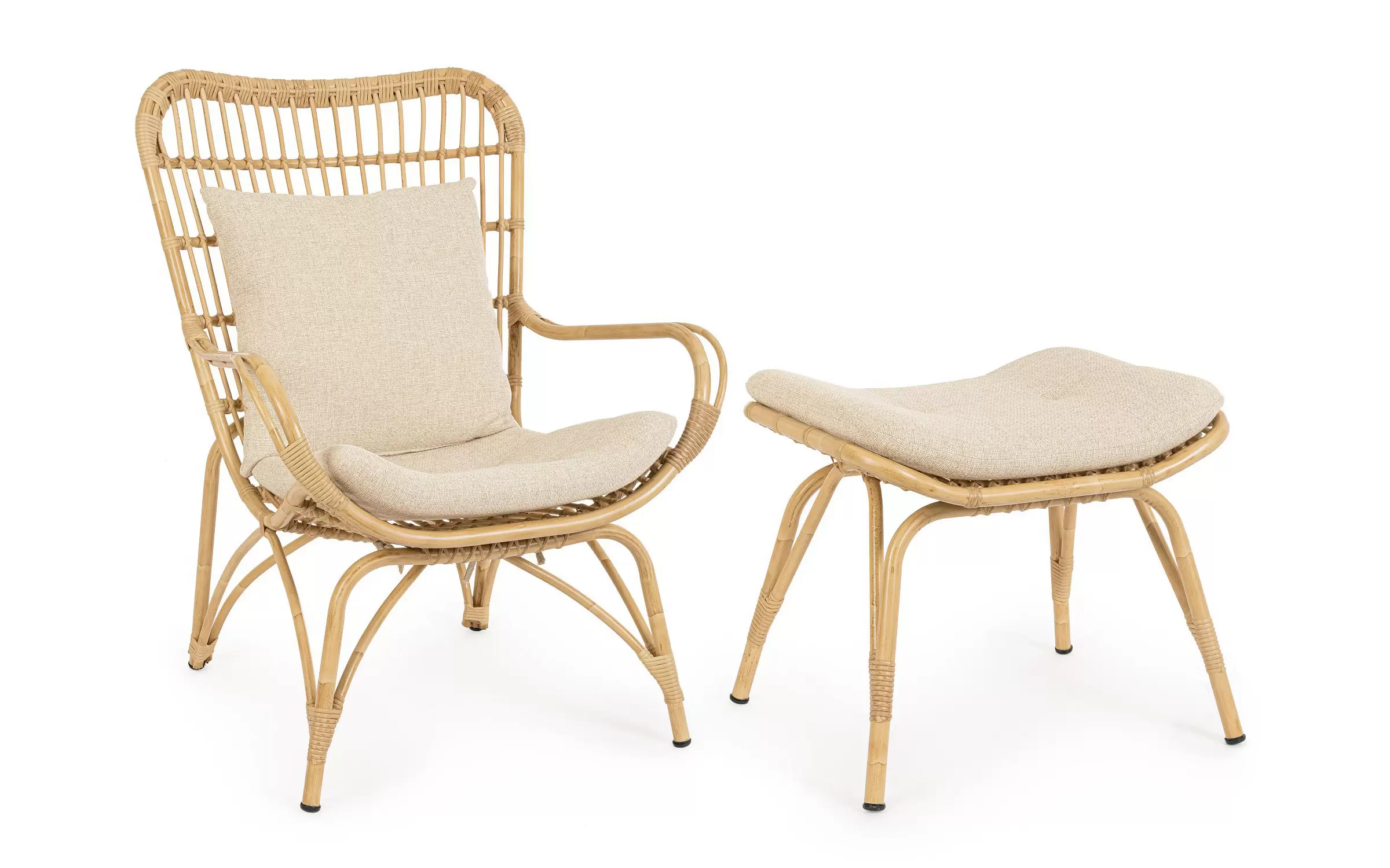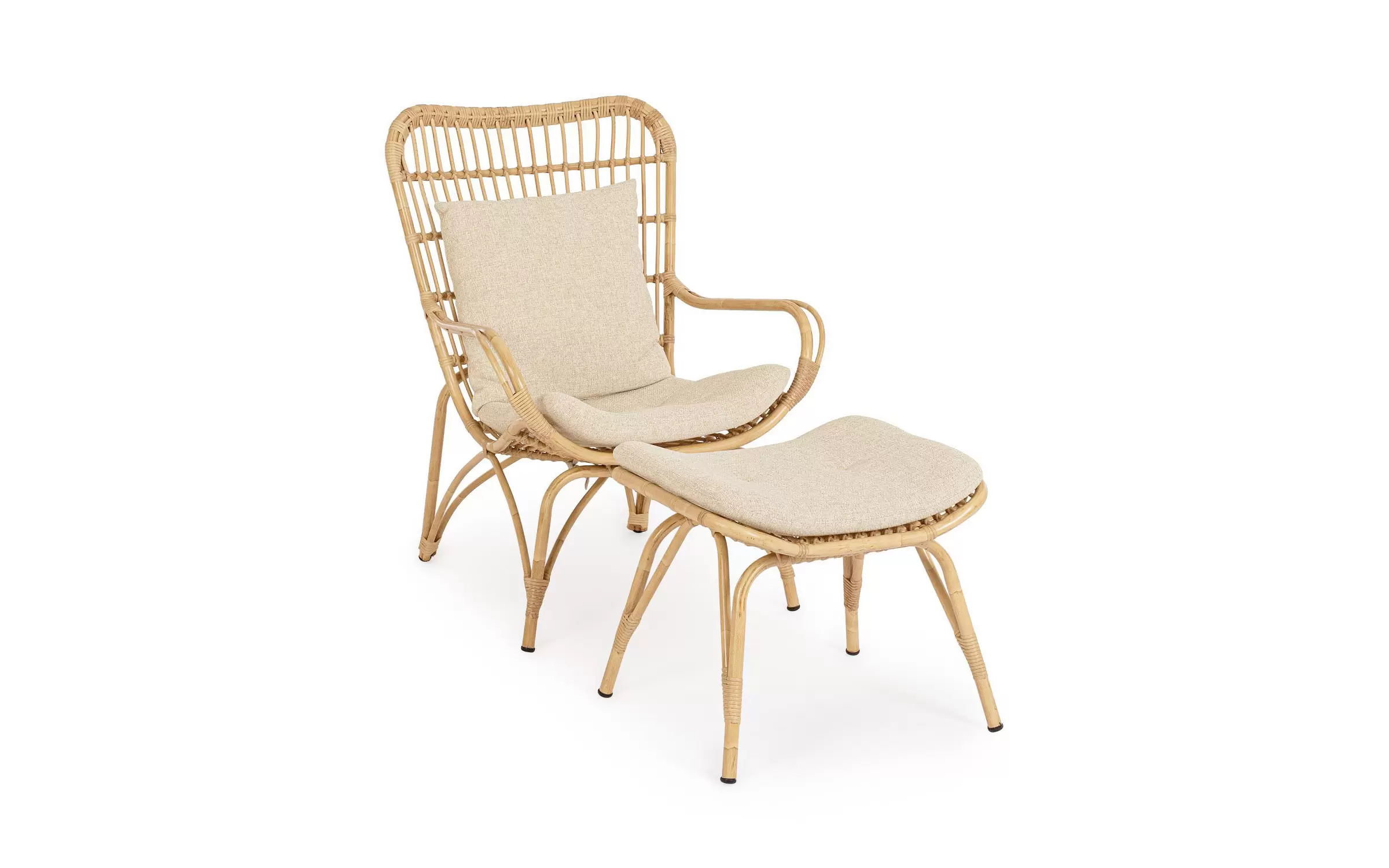 Klasyczny aluminiowy fotel z podnóżkiem wypoczynkowy na taras MAELA Bizzotto / powłoka imitująca drewno