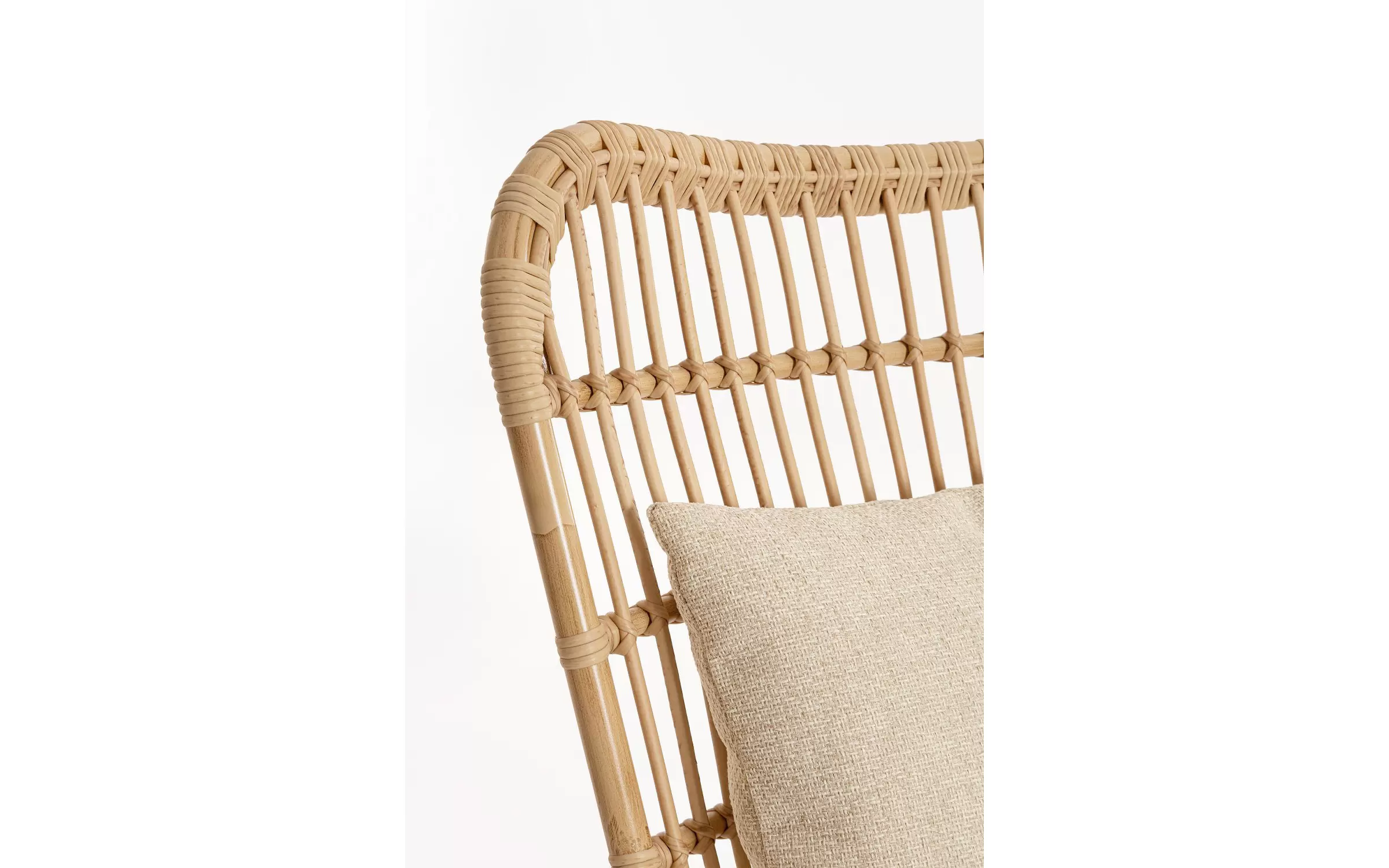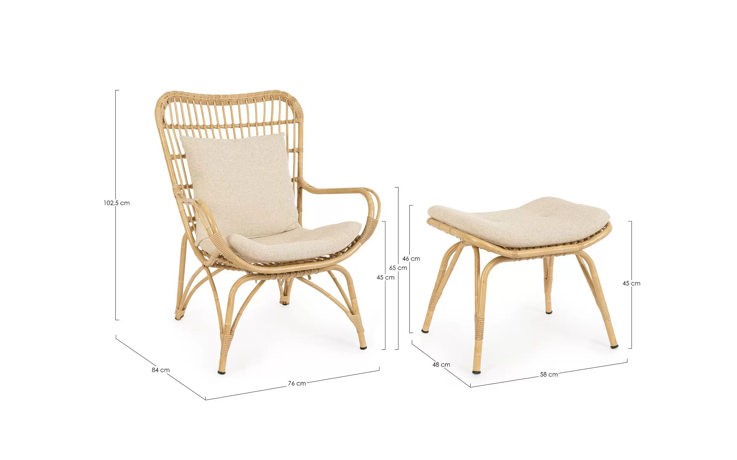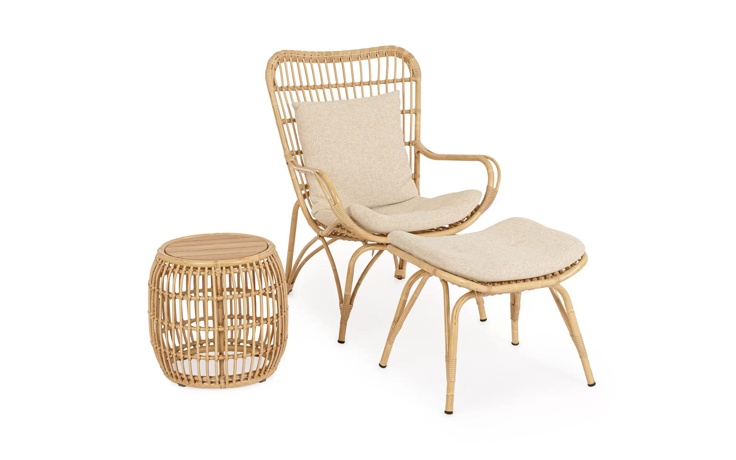 Klasyczny w formie fotel ogrodowy wykonany z nowoczesnych materiałów. Aluminiowe profile malowane proszkowo z technologią sublimacji tworzące powłokę imitująca naturalny rattan. Taka powłoka jest odporna na warunki atmosferyczne i UV.