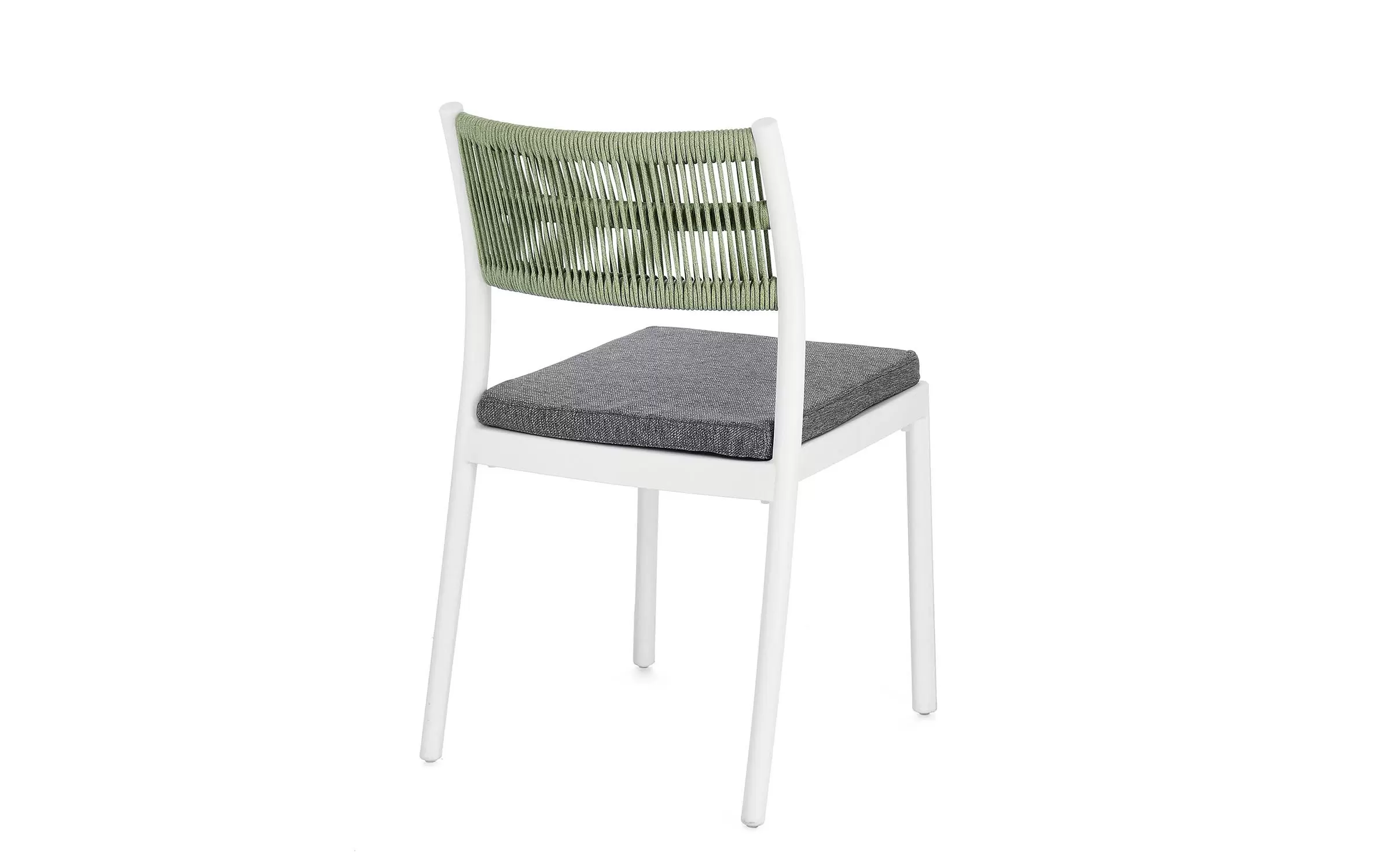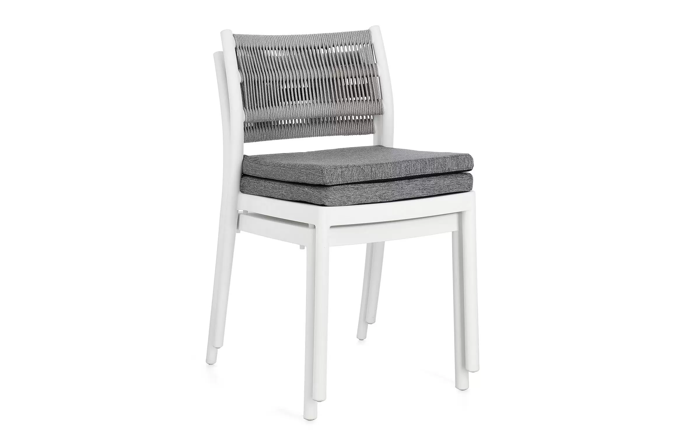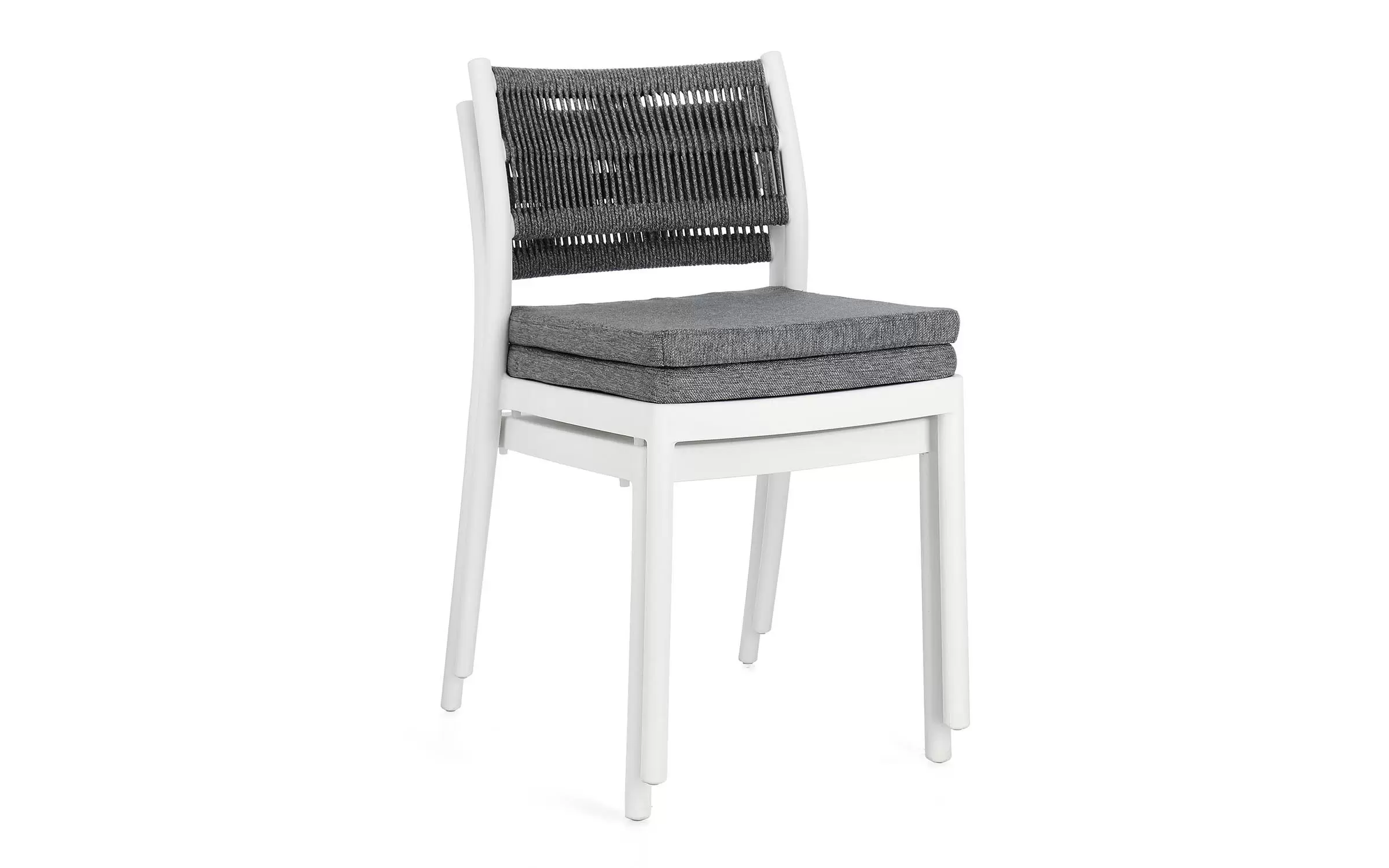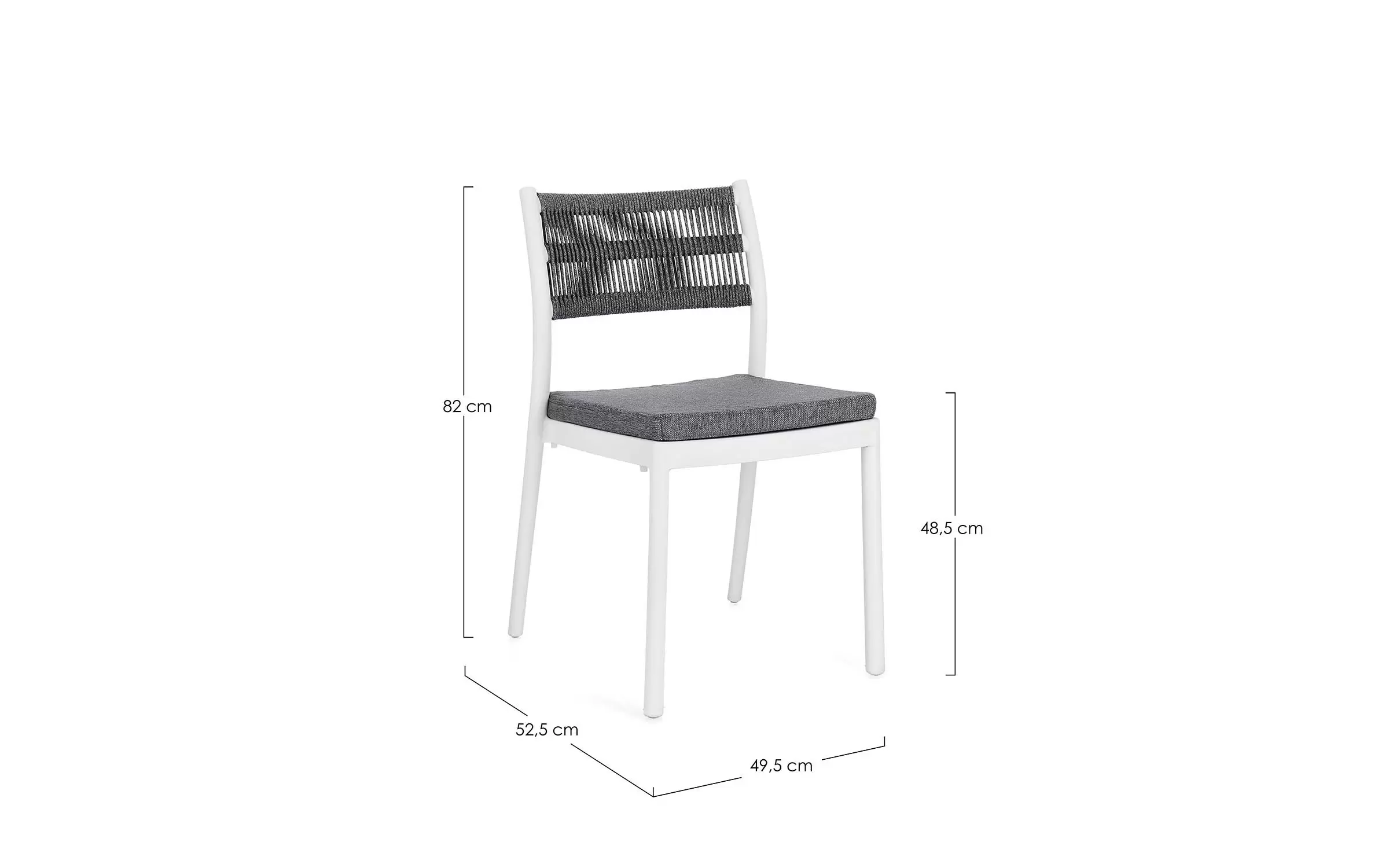 Aluminiowe krzesło na taras w kolorze białym z możliwością sztaplowania. Oparcie oplecione liną.