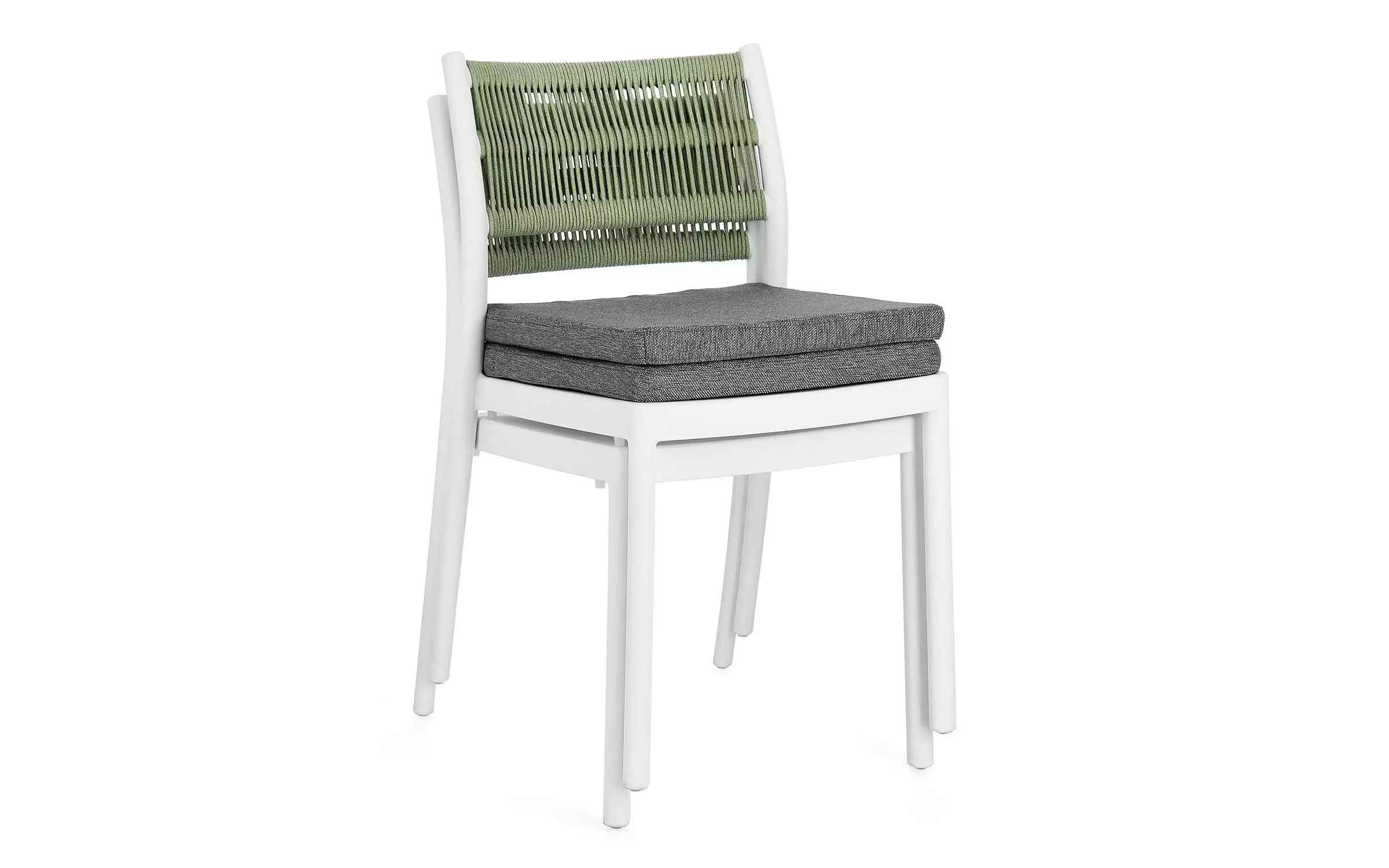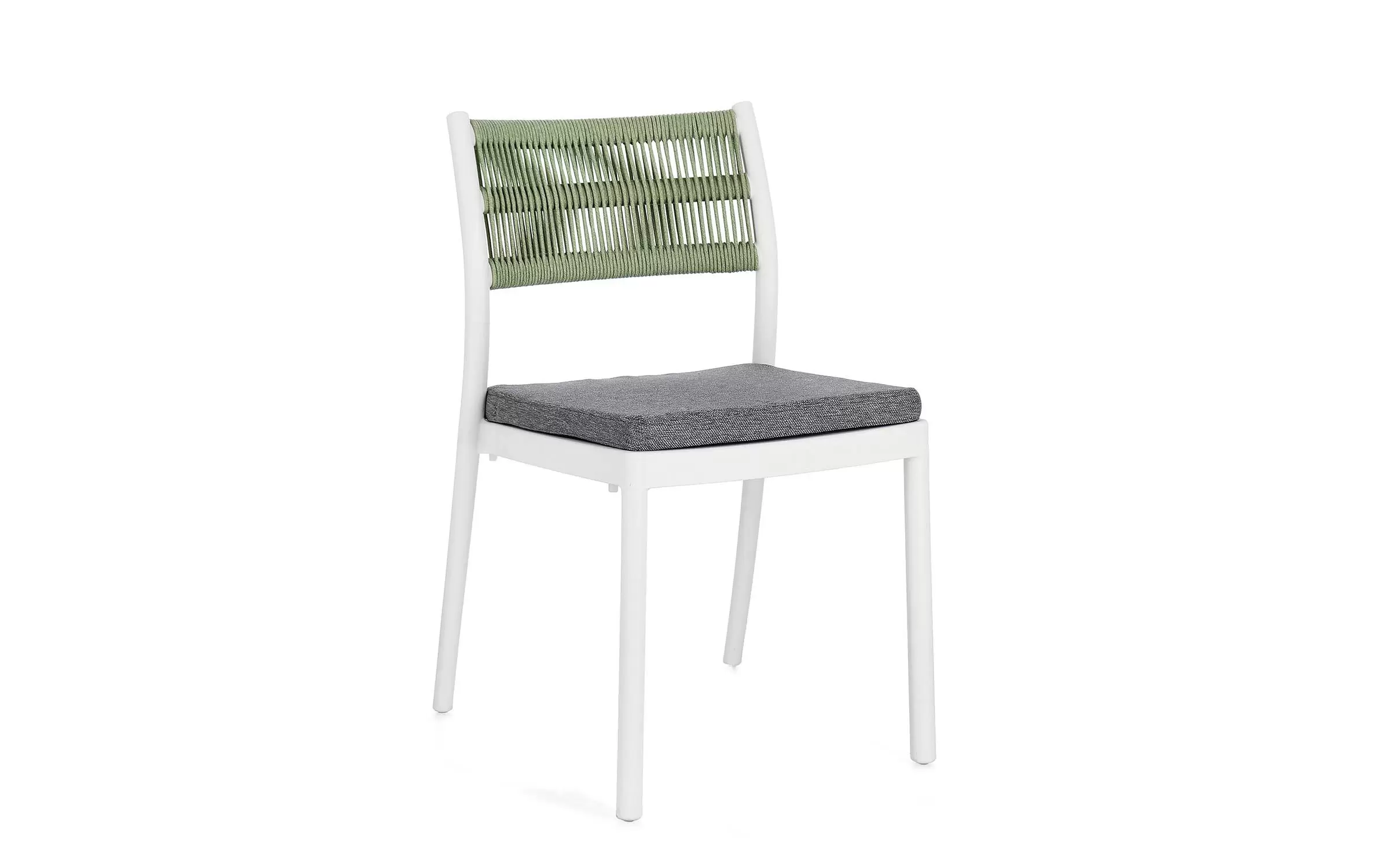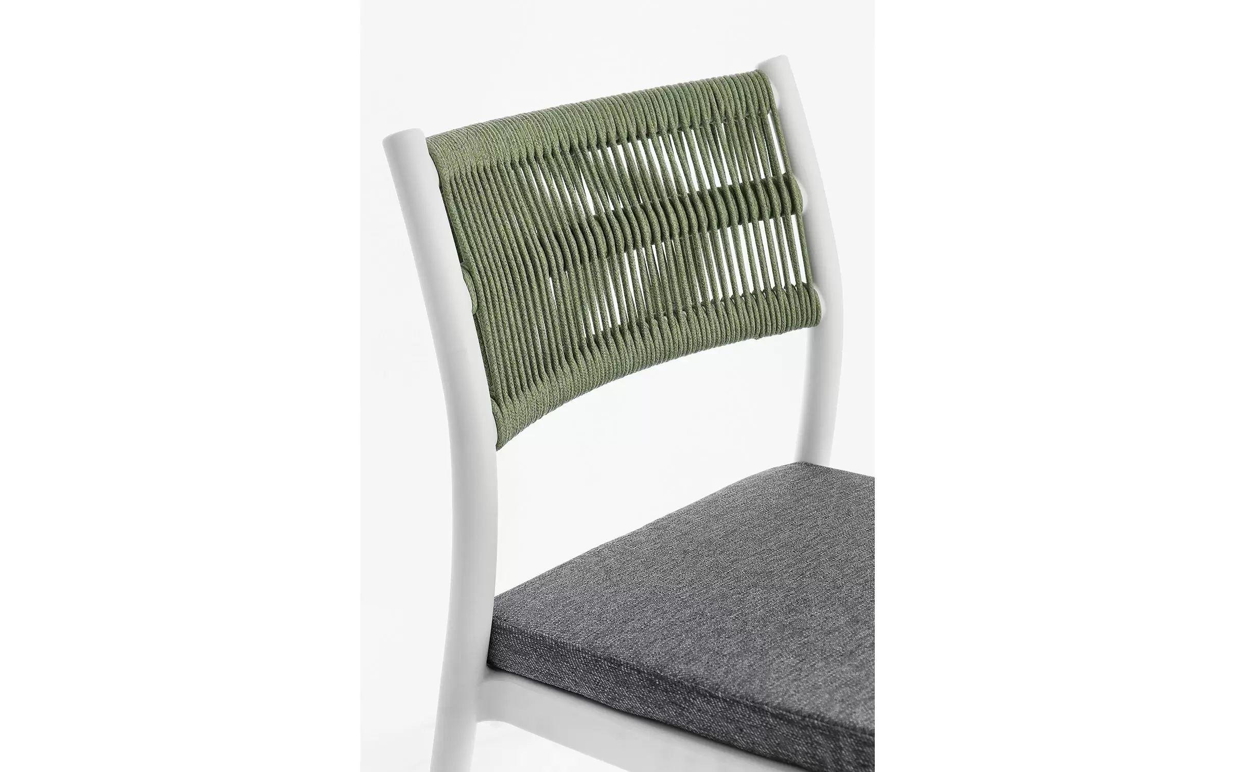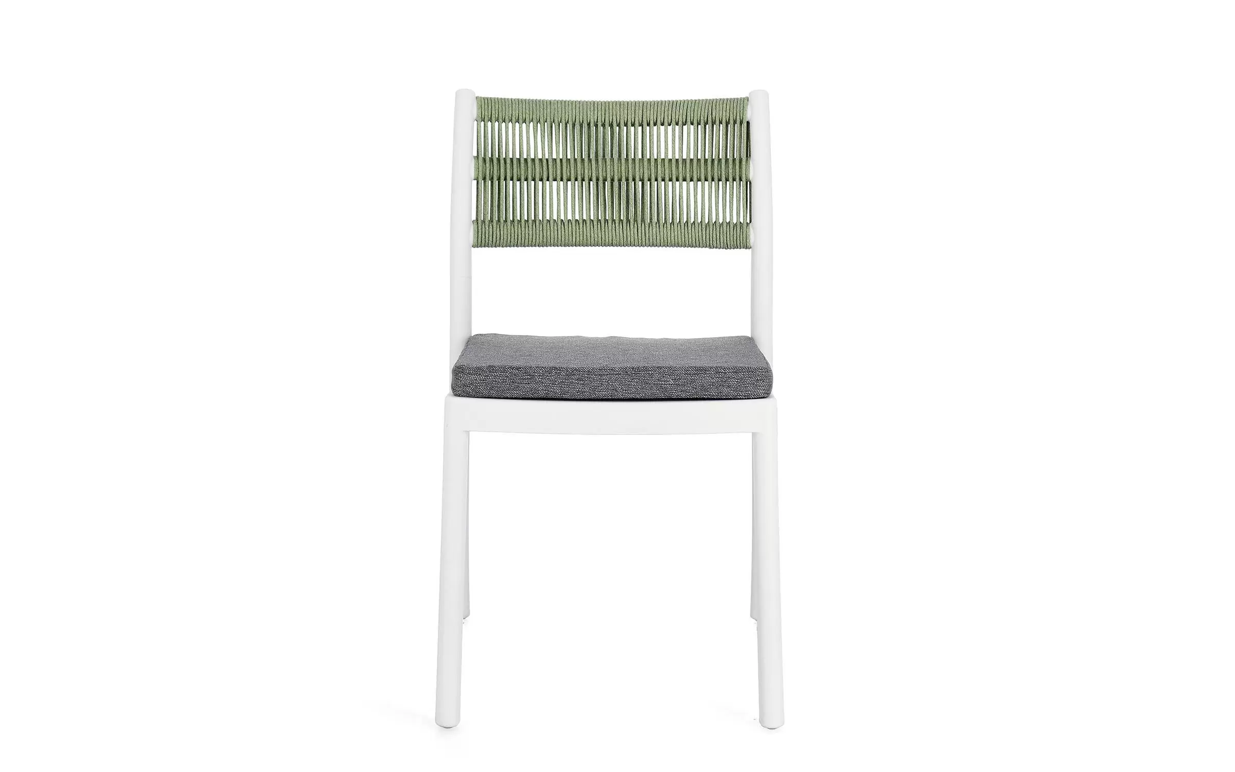 Krzesło na taras aluminiowe białe ALVIN Bizzotto / plecionka z liny jasnozielonej