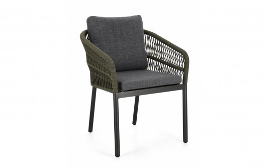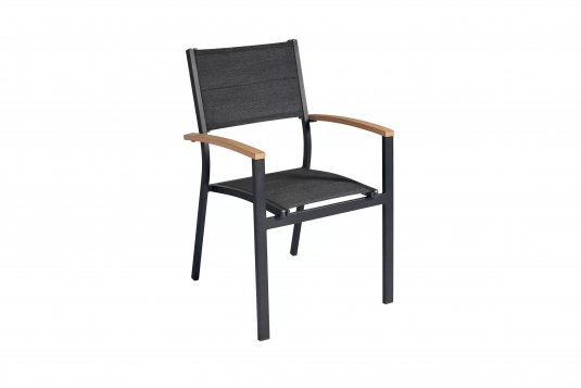 Fotel aluminiowy ogrodowy z podłokietnikami / aluminium antracyt / podłokietniki teak / podwójna tekstylina z gąbką / sztaplowane / cena od wielkości zamówienia