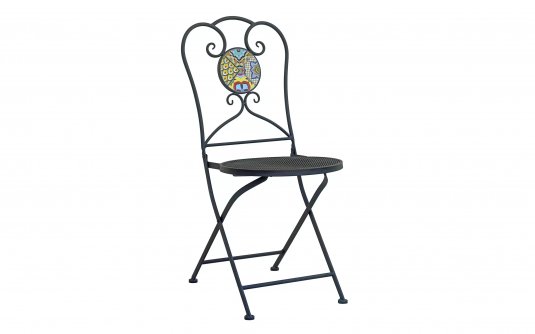 2x Fotel ogrodowy metalowy z elementem ozdobnym z mozaiką na oparciu / Konstr. stalowa, kolor czarny /
