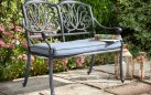 Ławka AMALFI 2-osobowa marki Hartman łączy elegancki design z trwałością materiałów. Konstrukcja z odlewanego aluminium jest odporna na korozję, wilgoć i promieniowanie UV. Charakterystyczne oparcie z dekoracyjnym wzorem nadaje ławce klasyczny styl. W zestawie znajduje się miękka poduszka Weatherready®, odporna na działanie czynników atmosferycznych i szybkoschnąca po deszczu.
